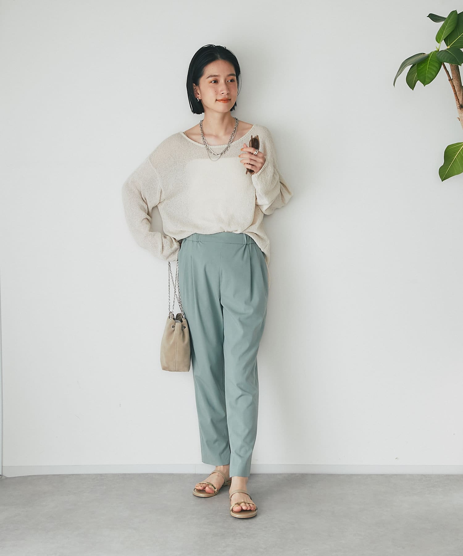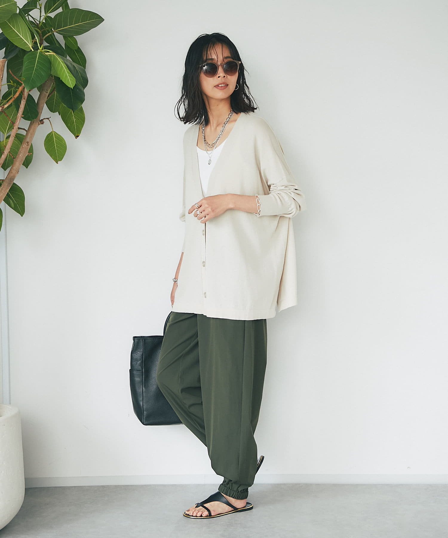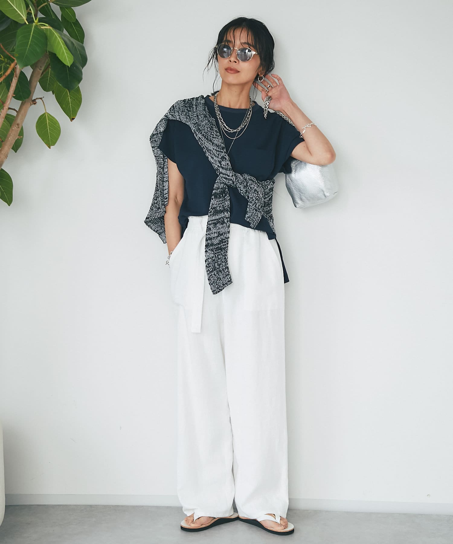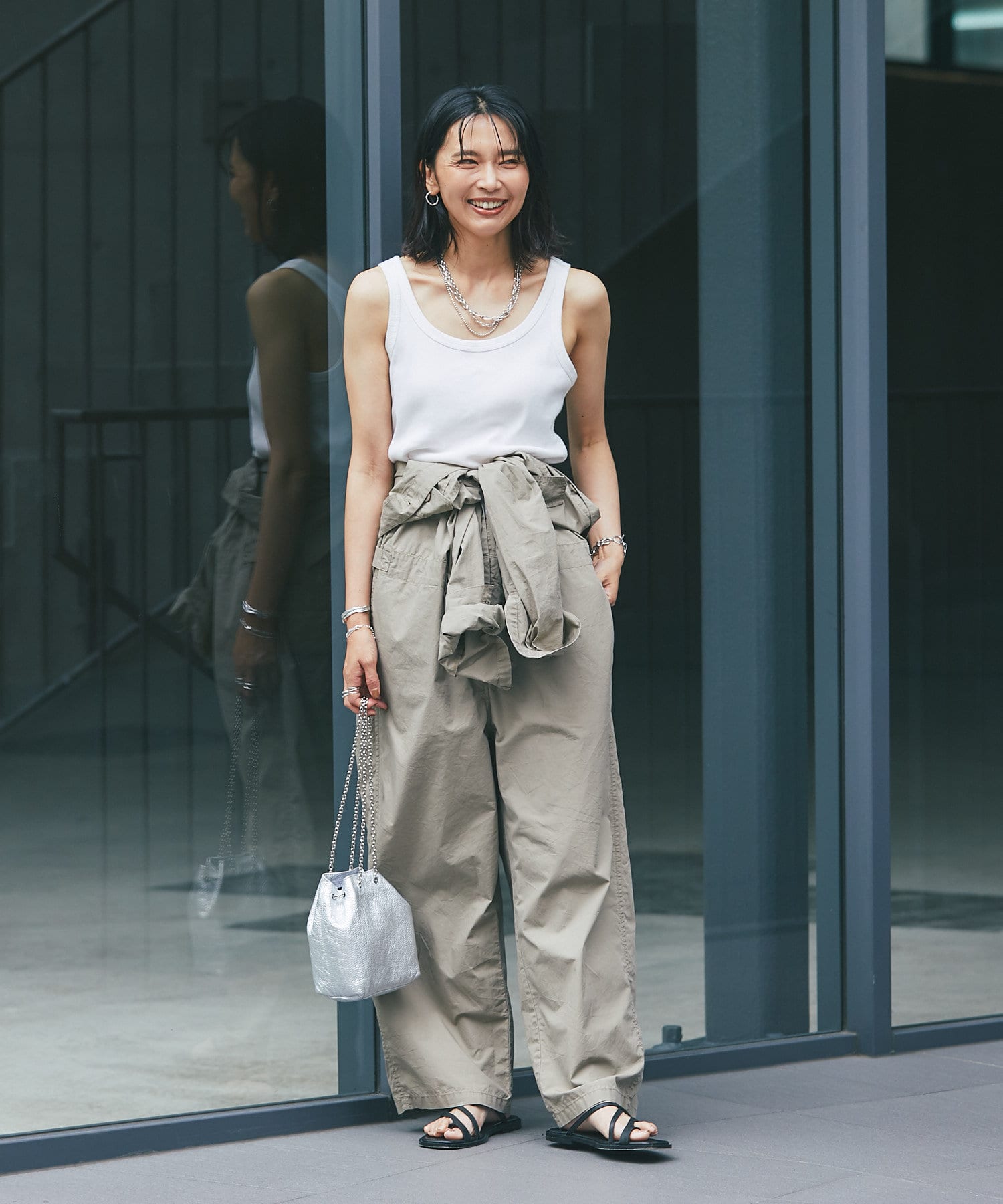 部屋着っぽい格好でも、きちんと格上げしてくれます。
