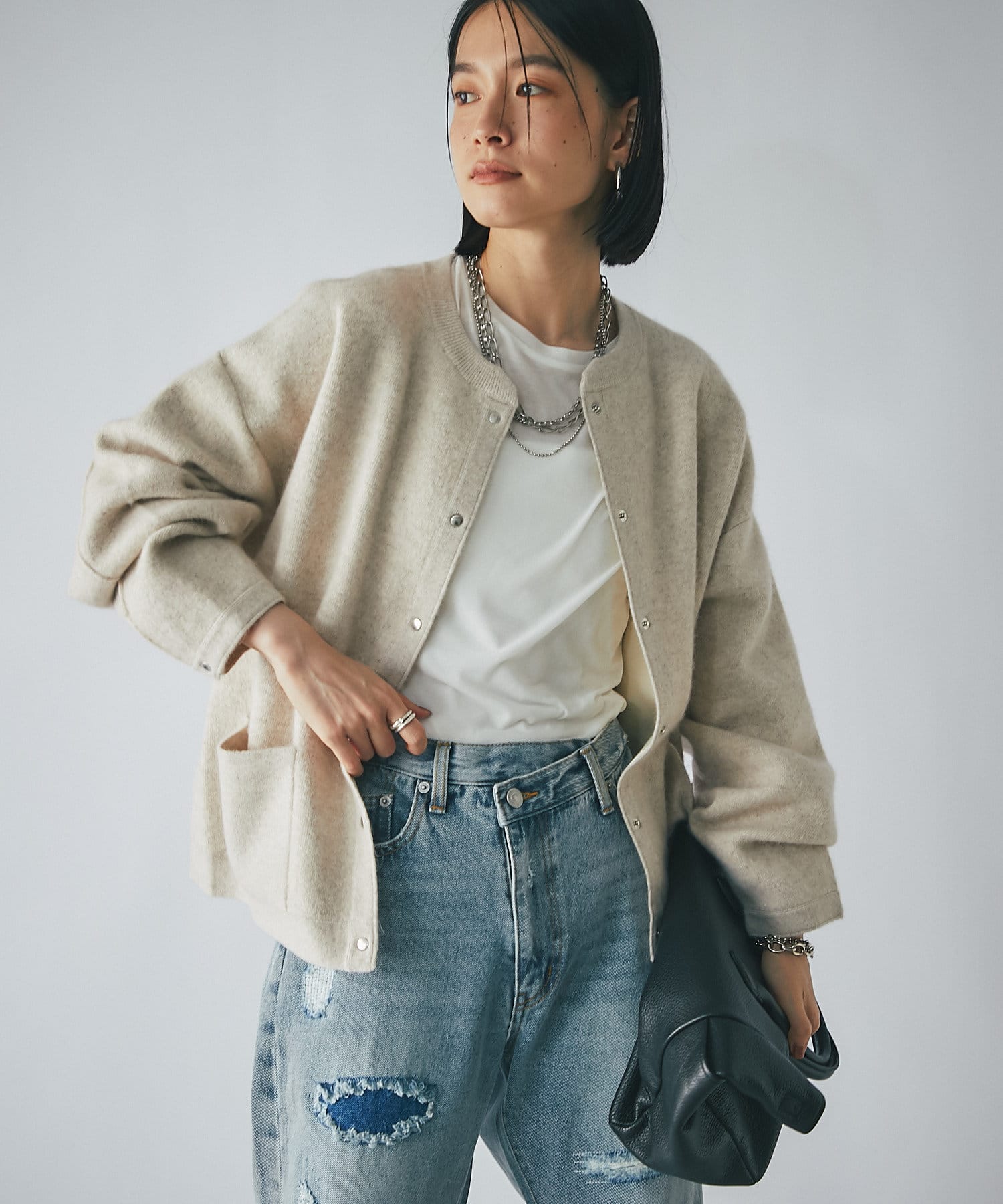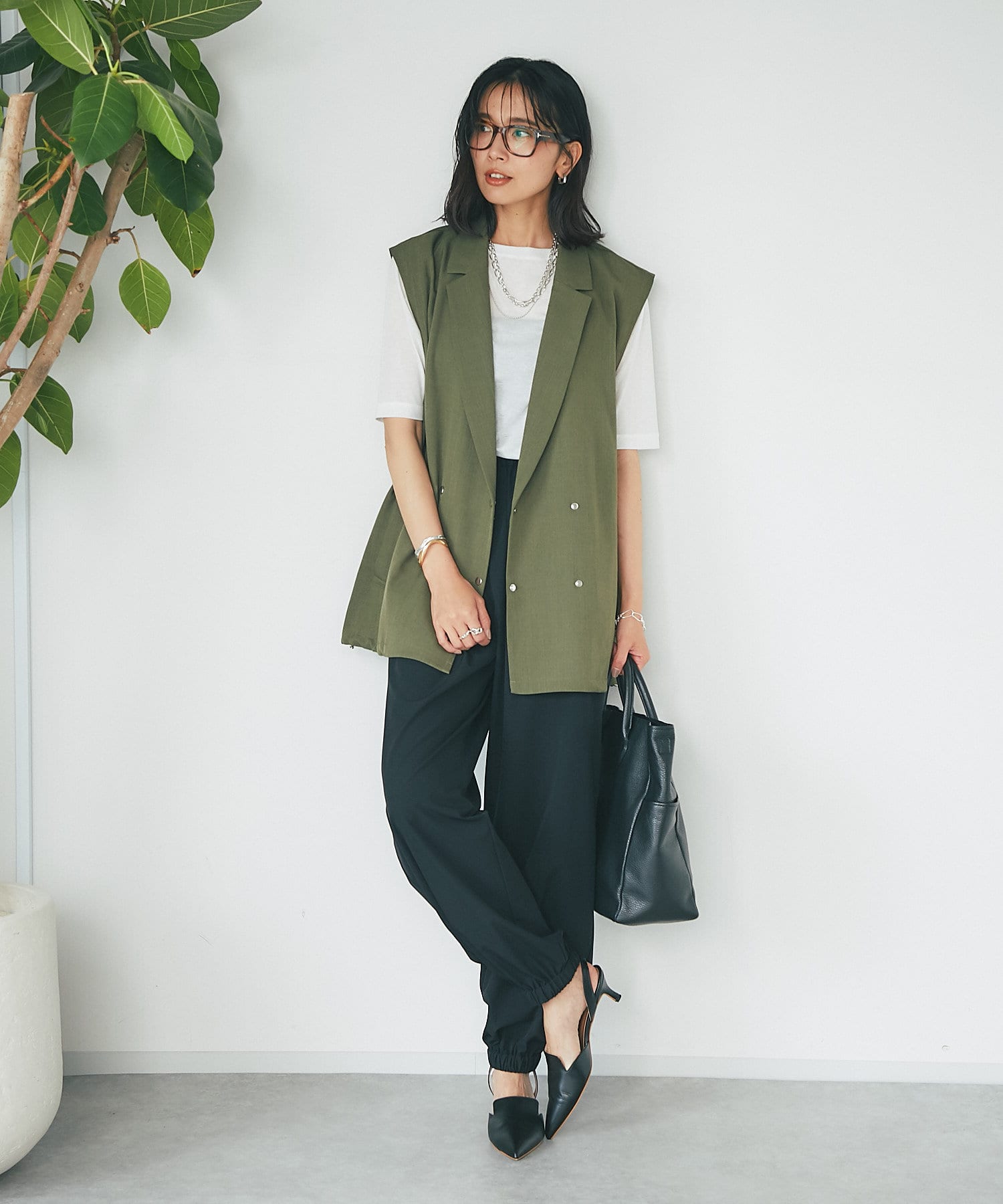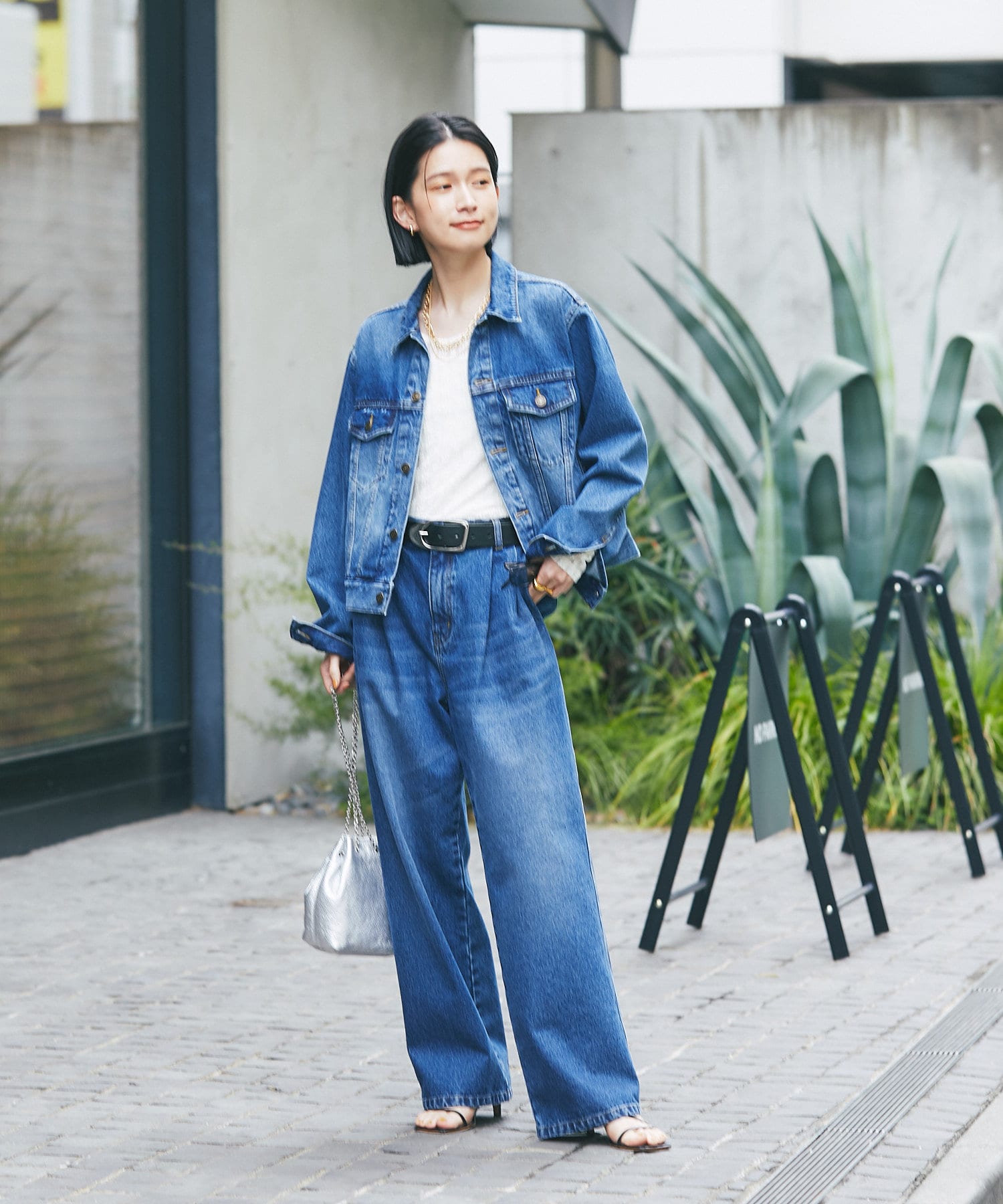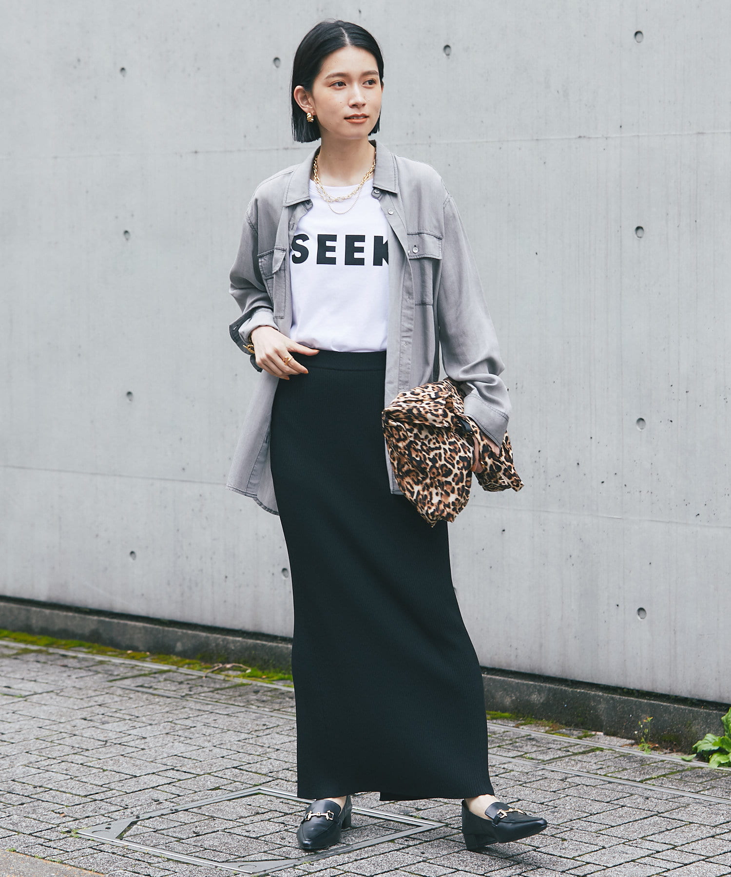 部屋着っぽい格好でも、きちんと格上げしてくれます。