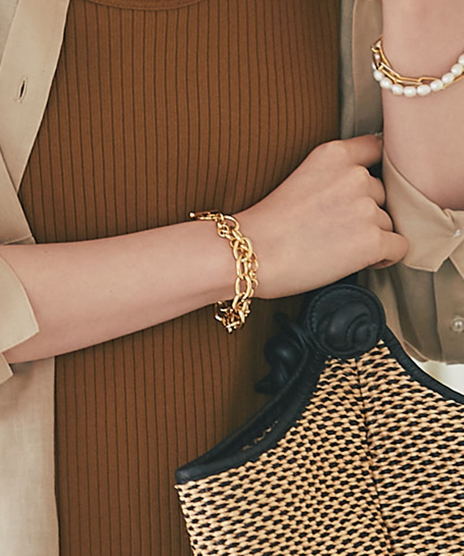 ボリュームのあるチェーンを2連にした存在感のあるブレスレット。