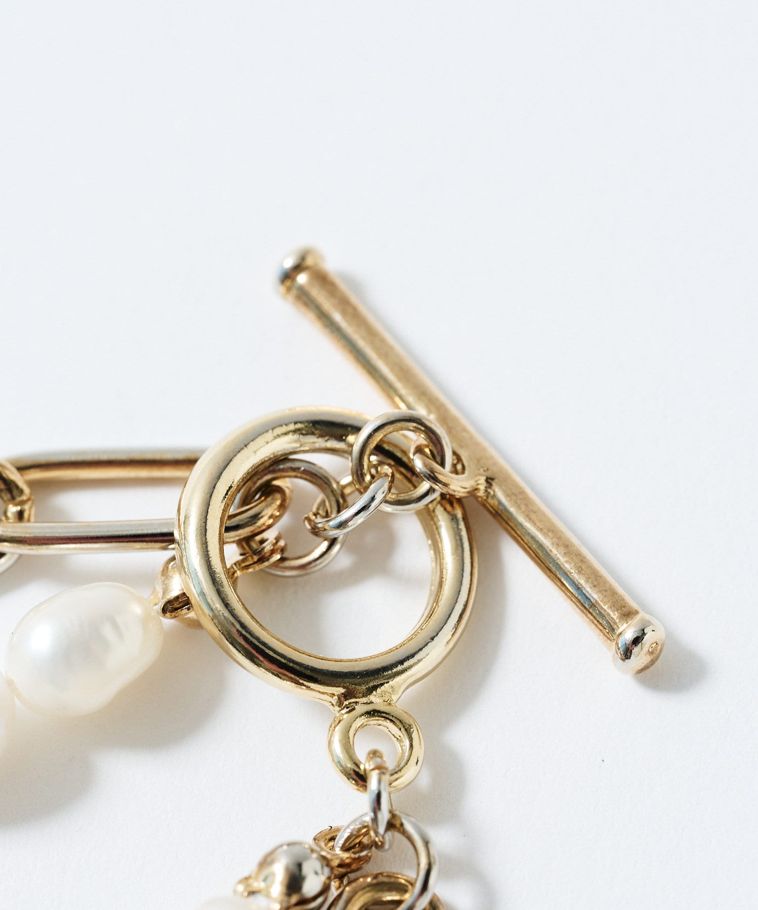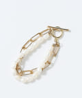 パールとチェーンの異素材のコンビネーションが可愛いブレスレット。