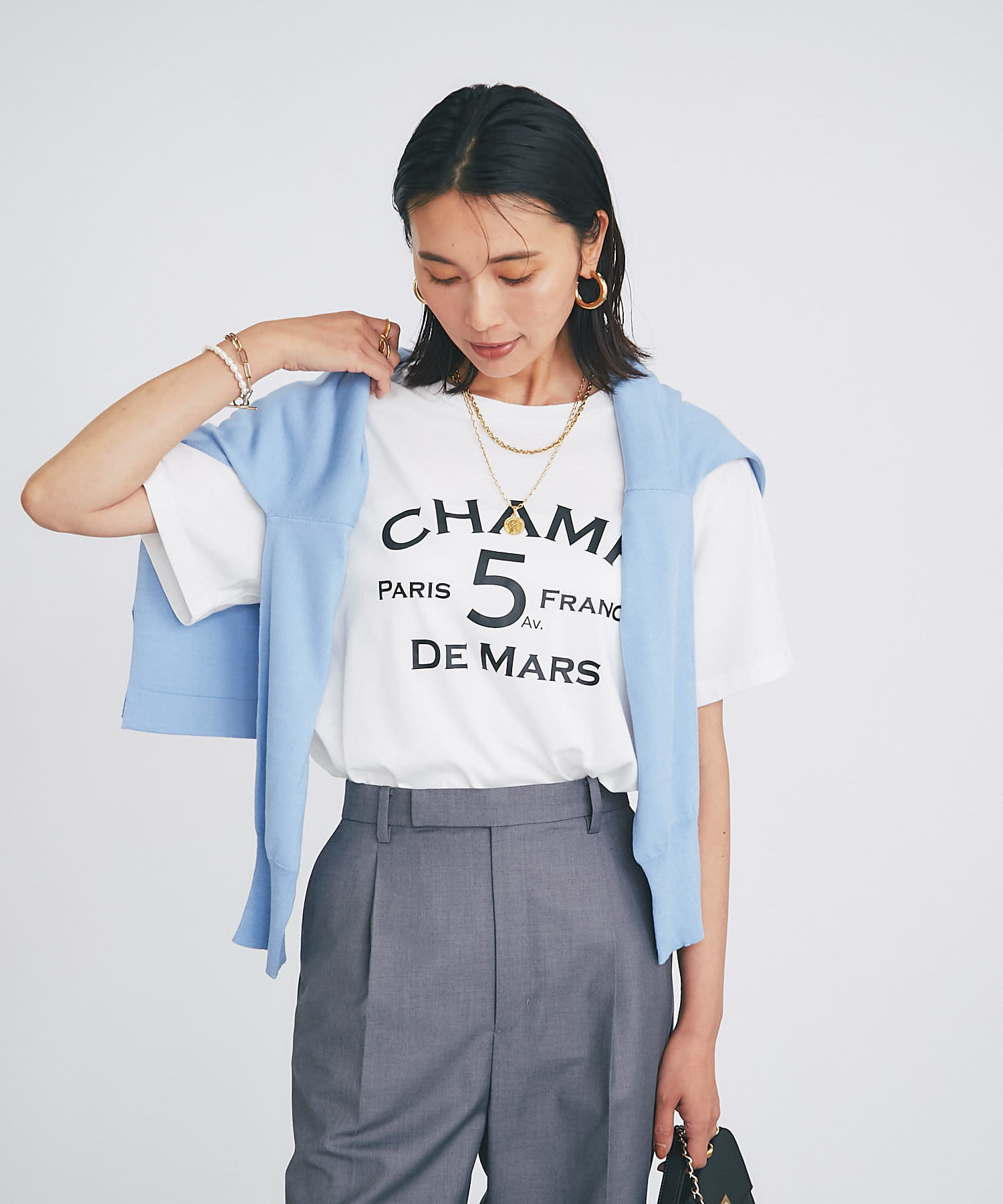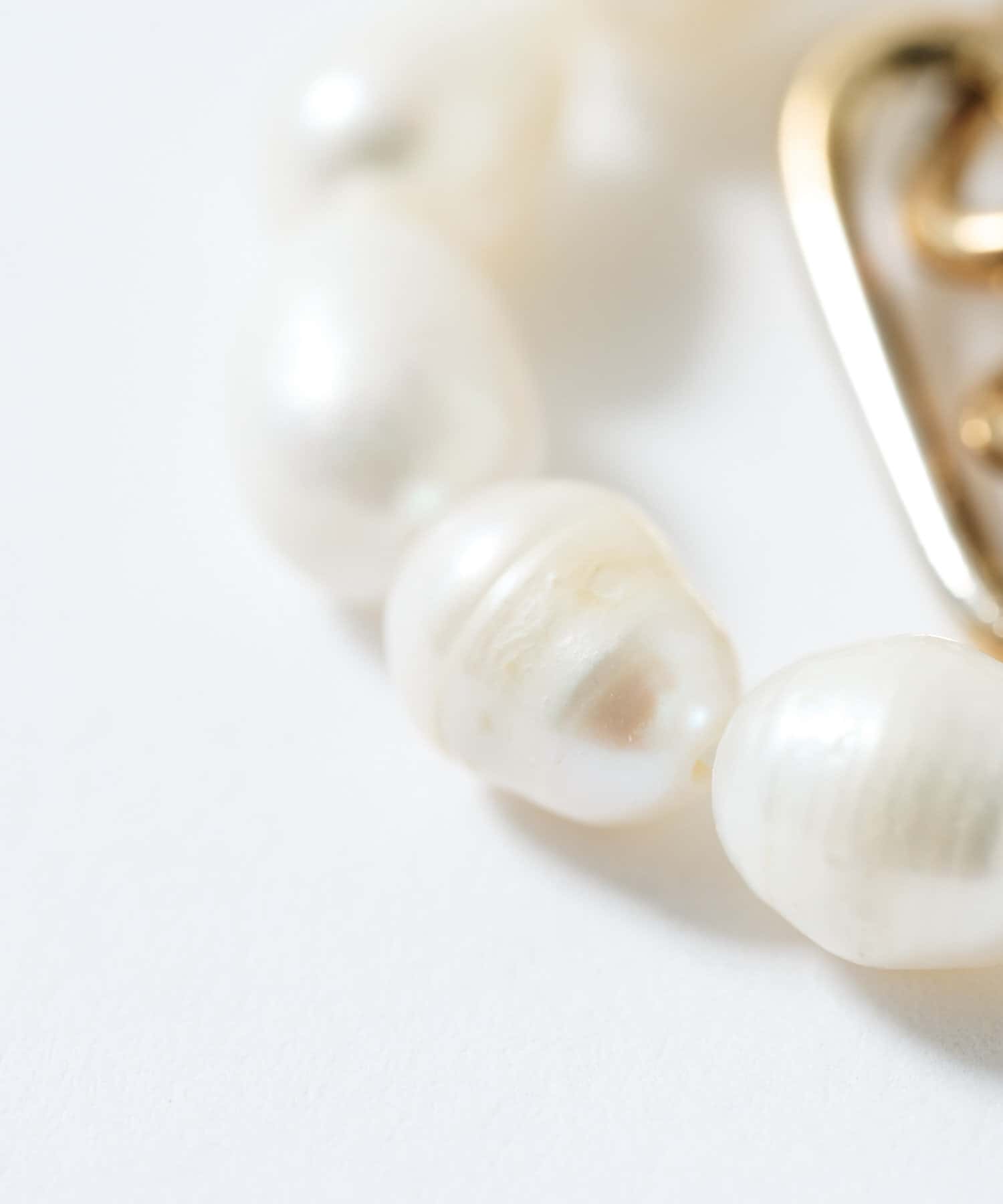 華やかで女性らしい印象のパールも、チェーンと組み合わせることでエッジの効いたデザインに落とし込み、シンプルなスタイルも洗練された印象に仕上げます。