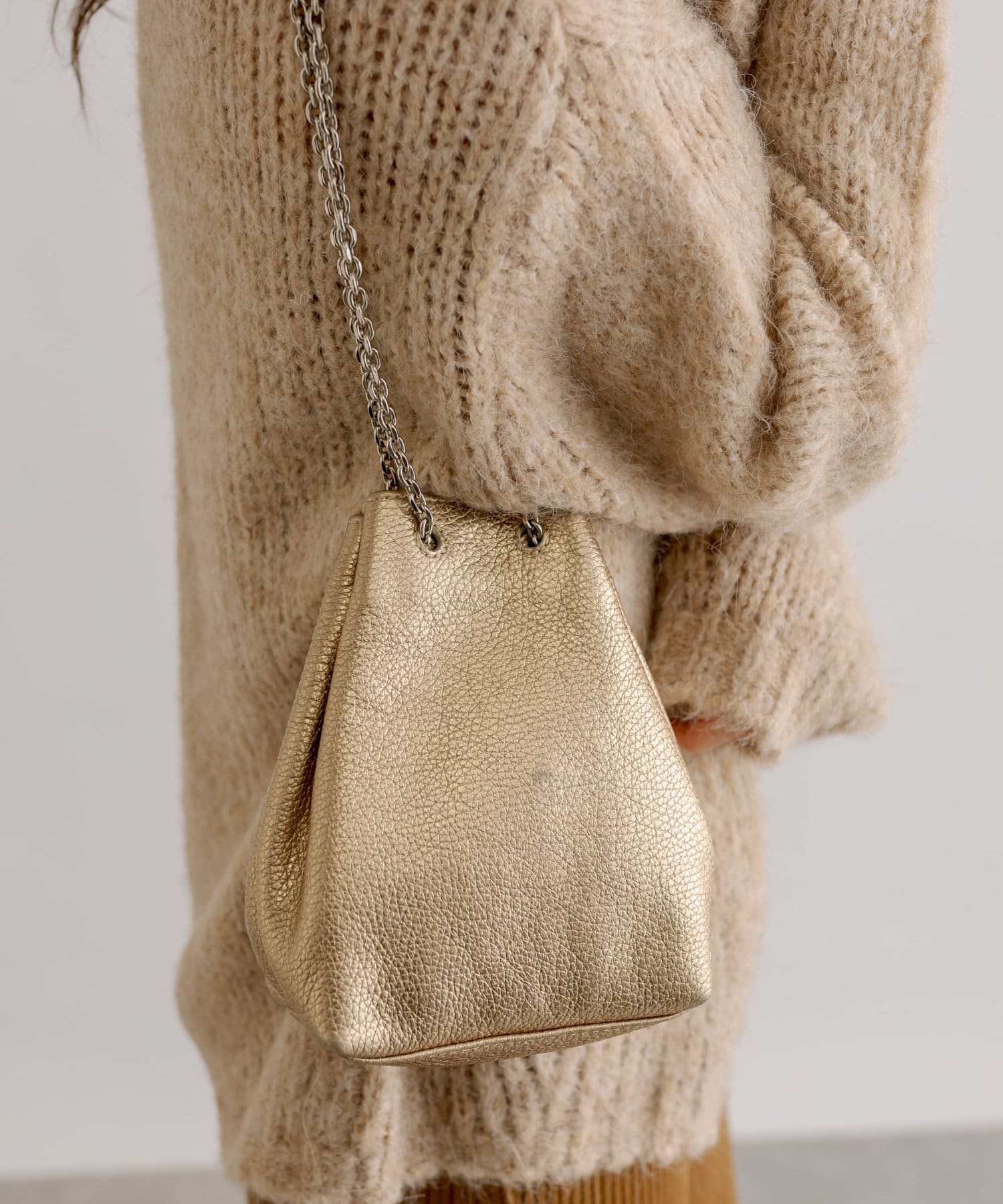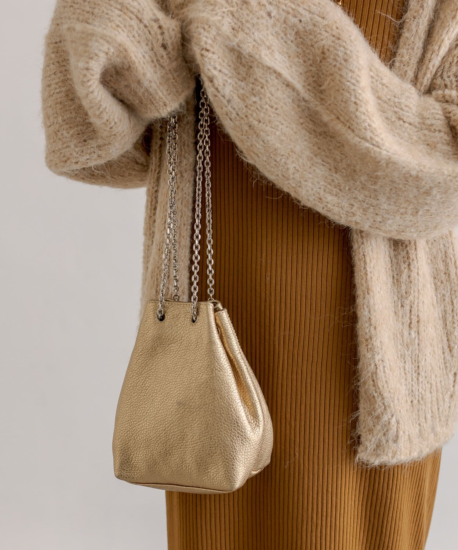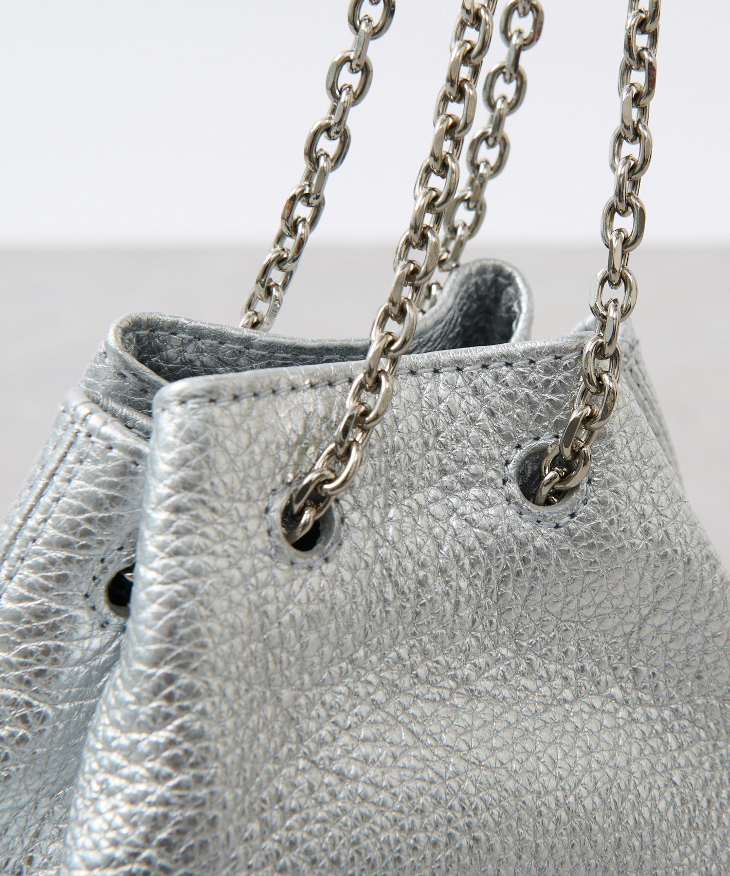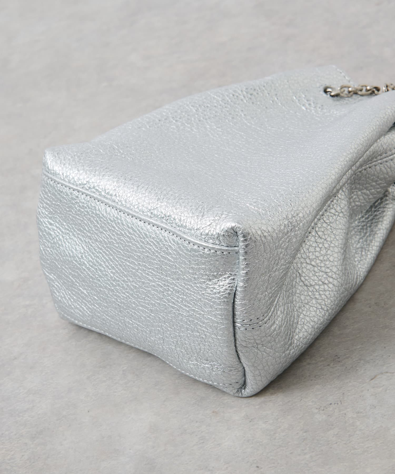 メタリックの輝きが華やかな印象のチェーンバッグ。