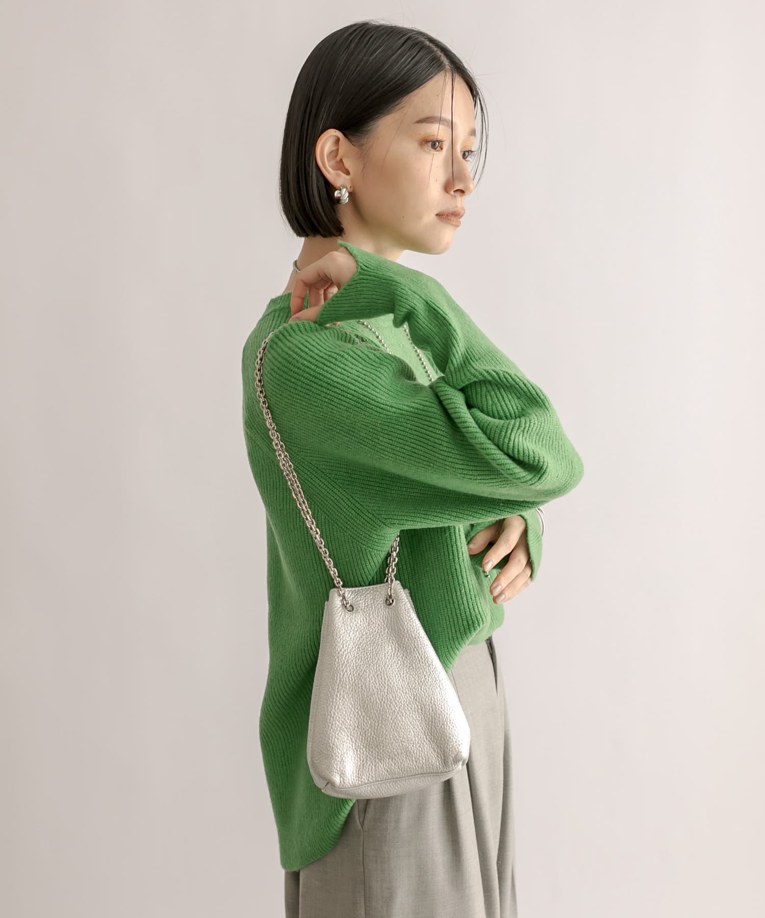 チェーン部分はそのまま肩掛けにするのはもちろん、斜め掛けも可能な長さです。