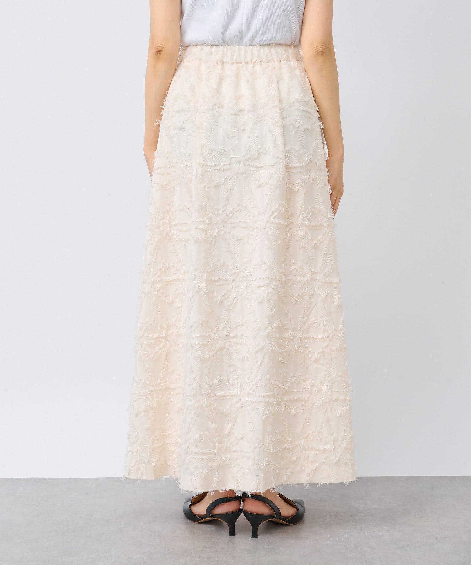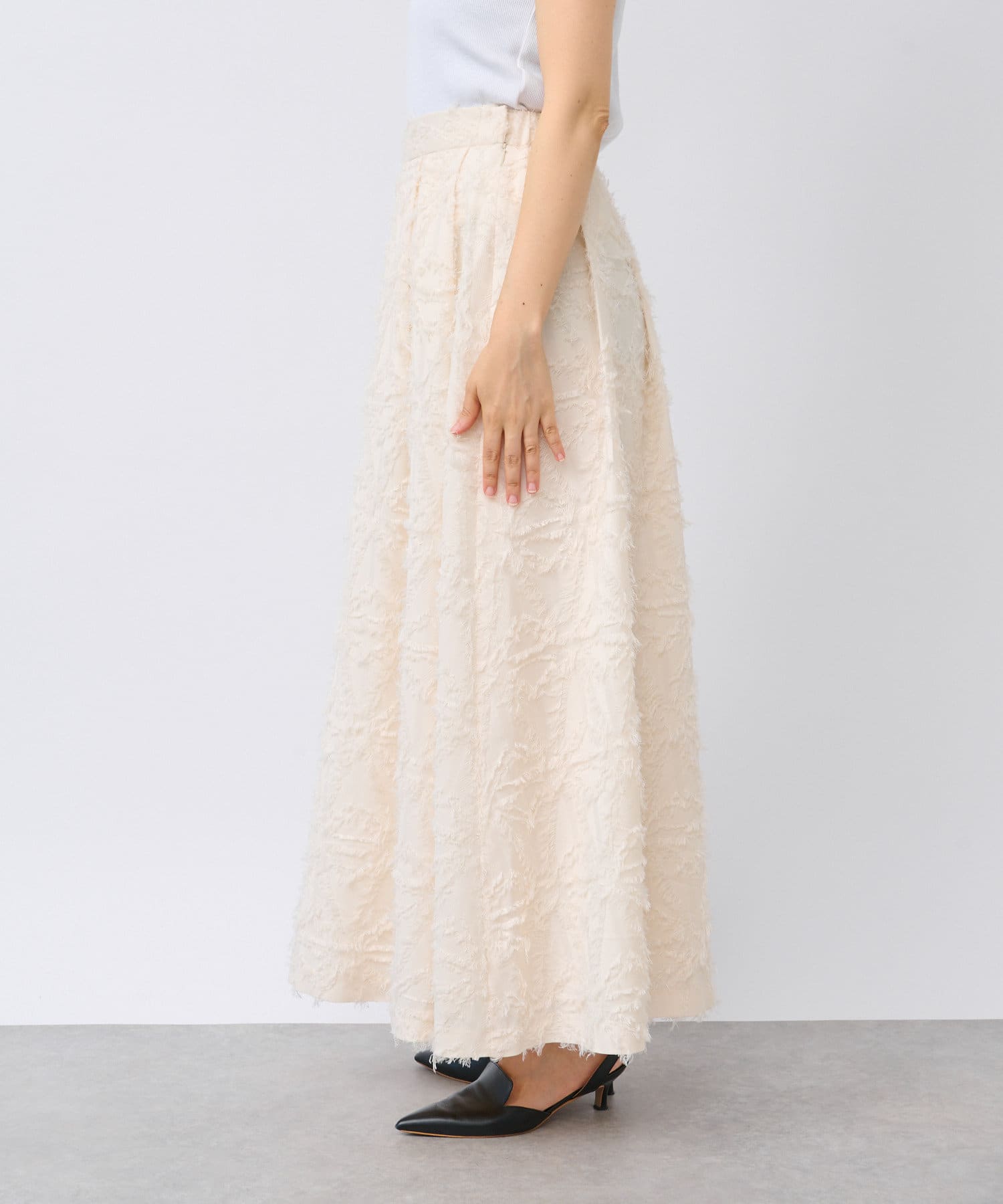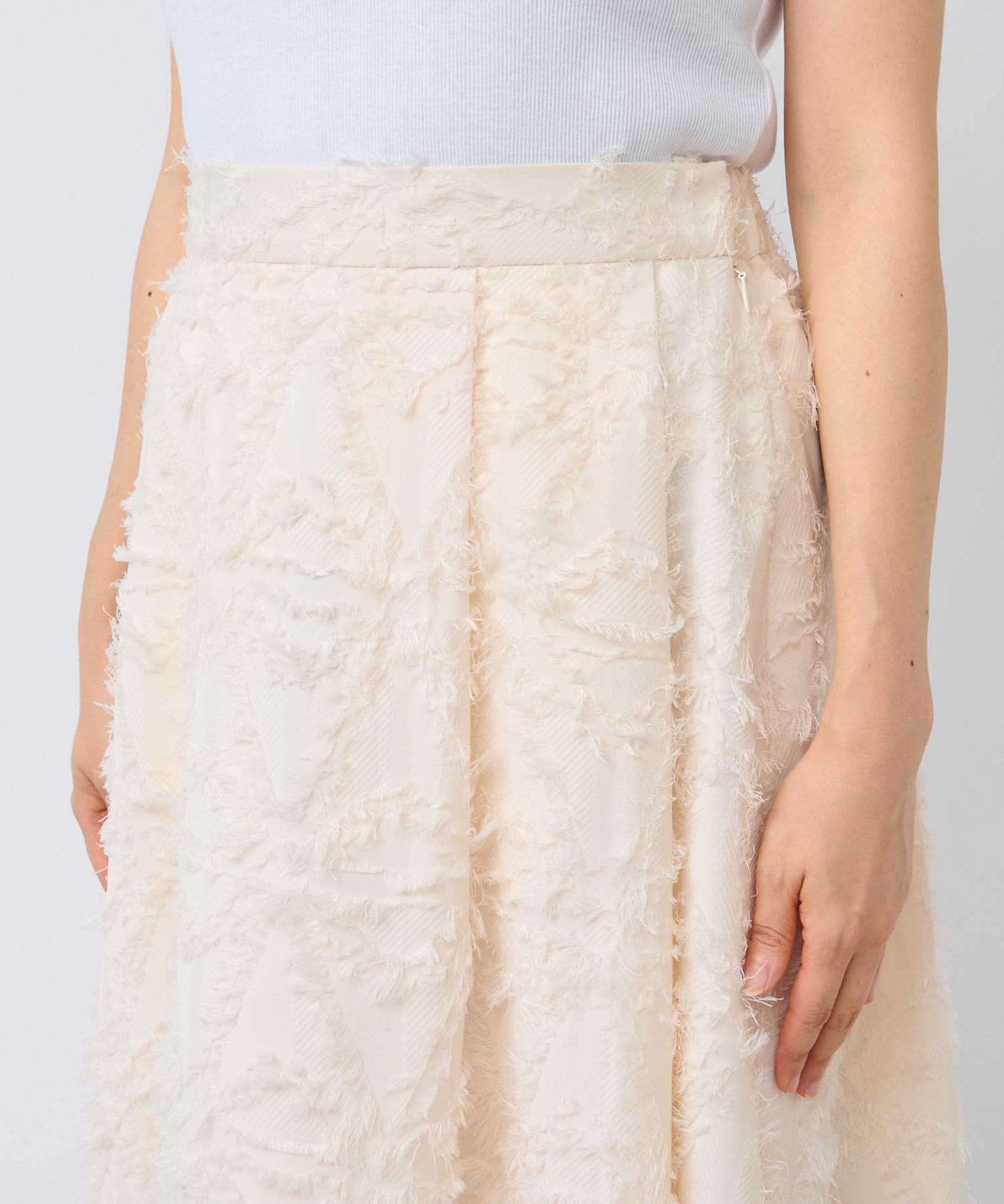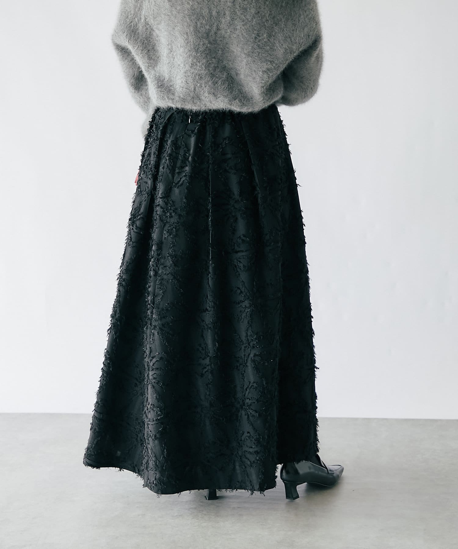 生地のカッティングが目を惹くジャガードスカート