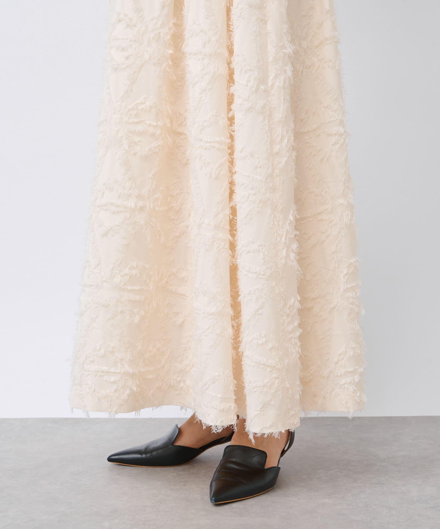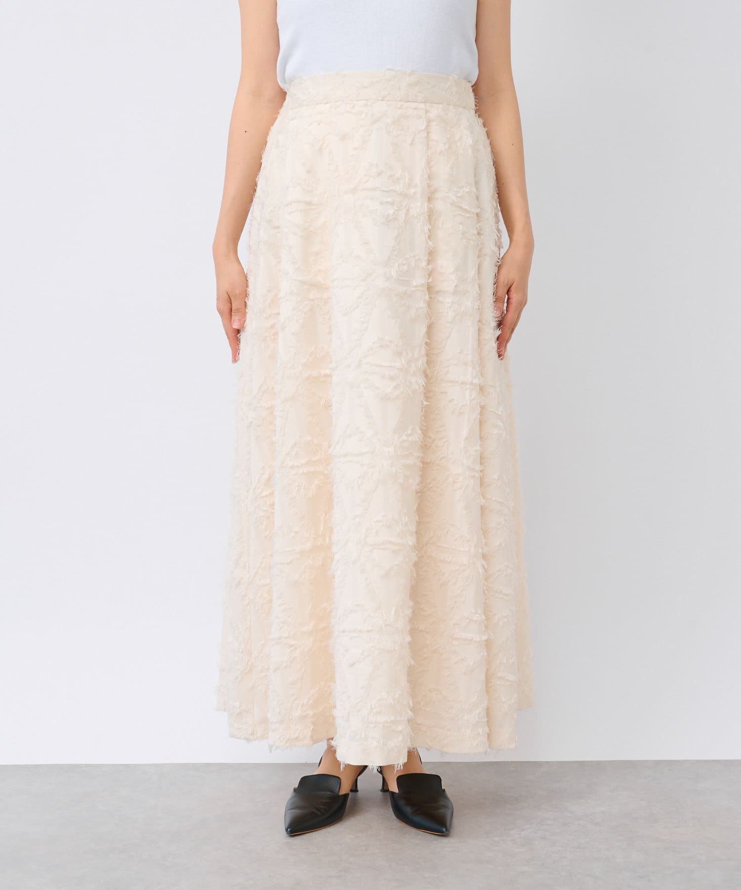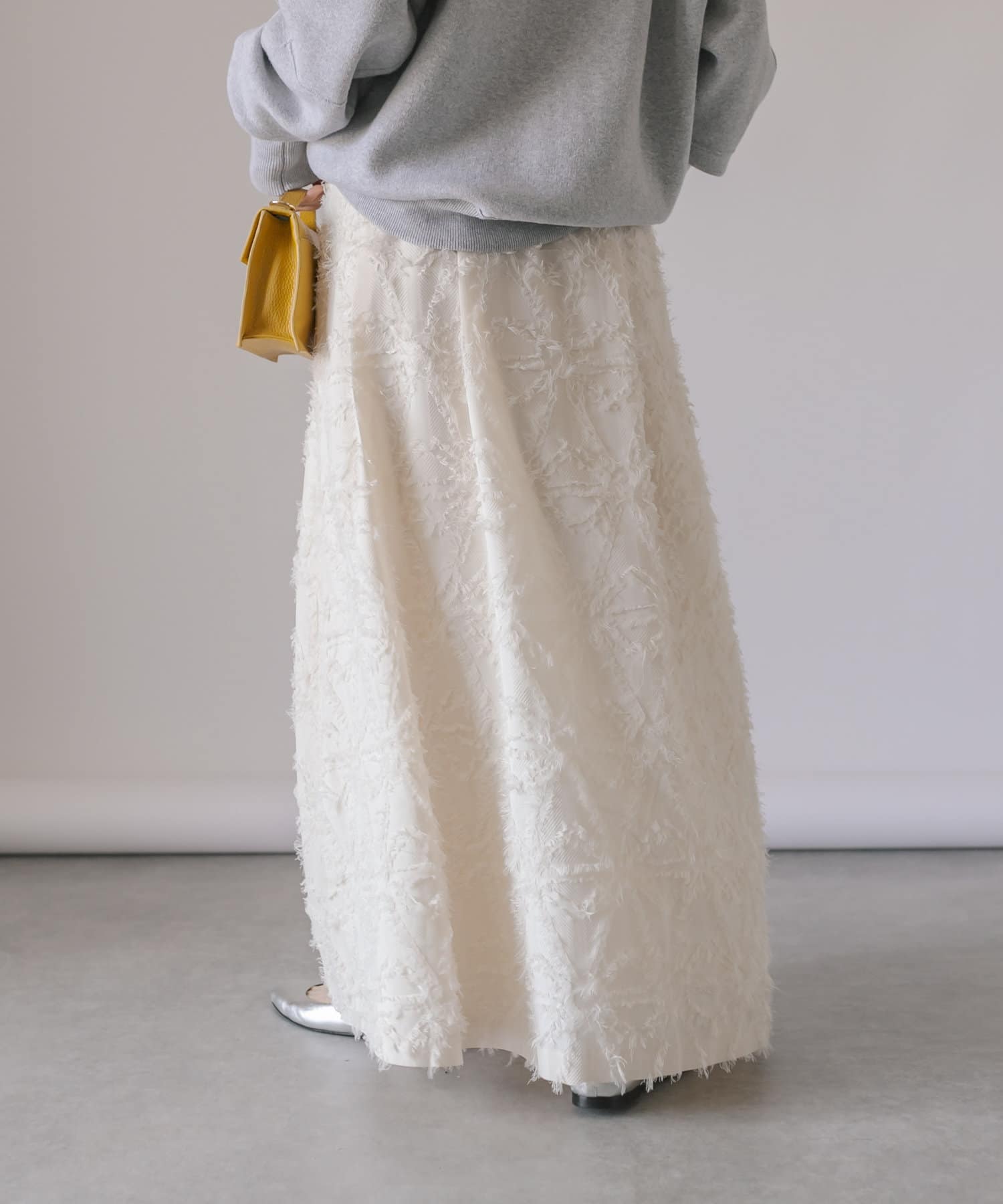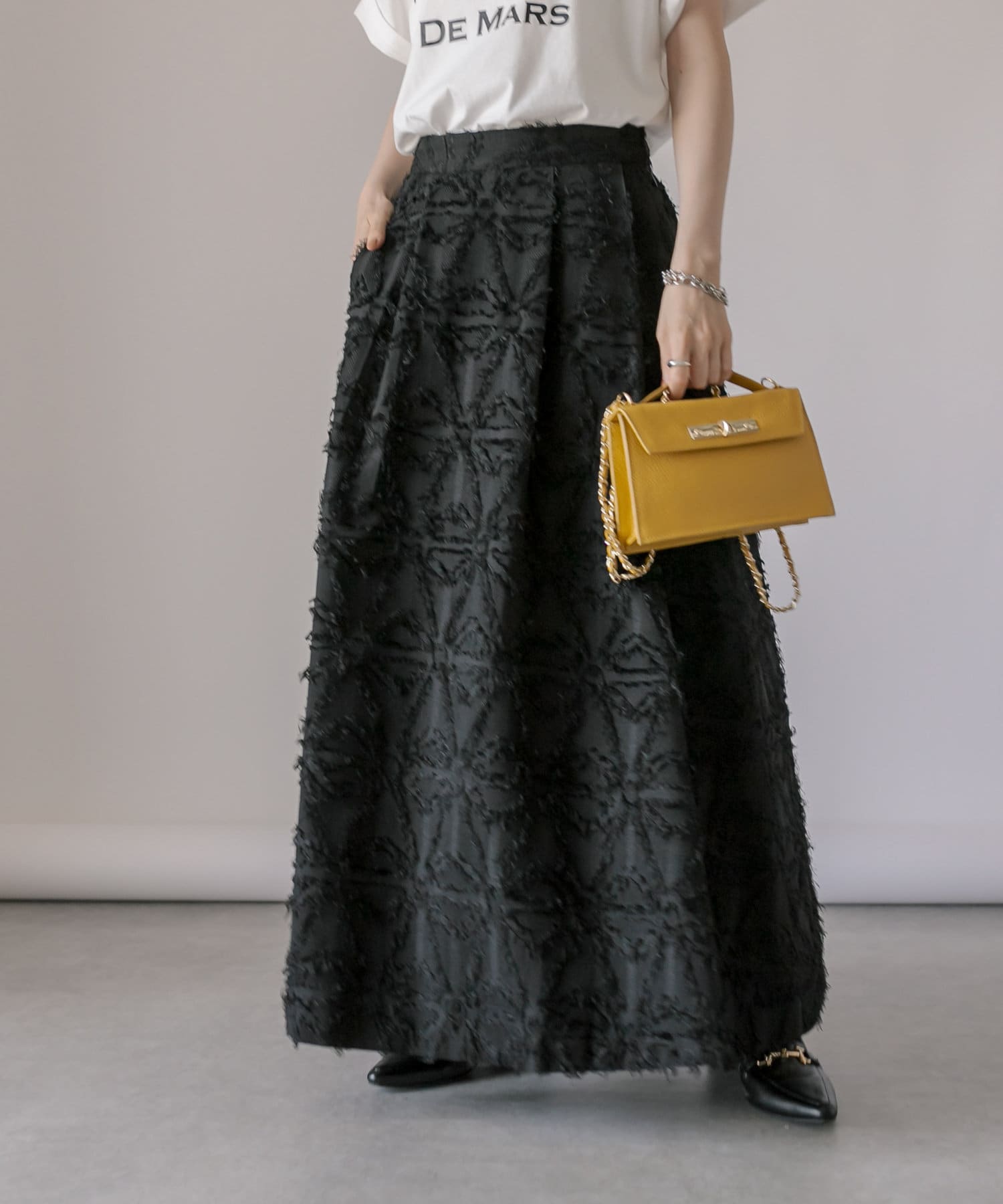 生地のカッティングが目を惹くジャガードスカート