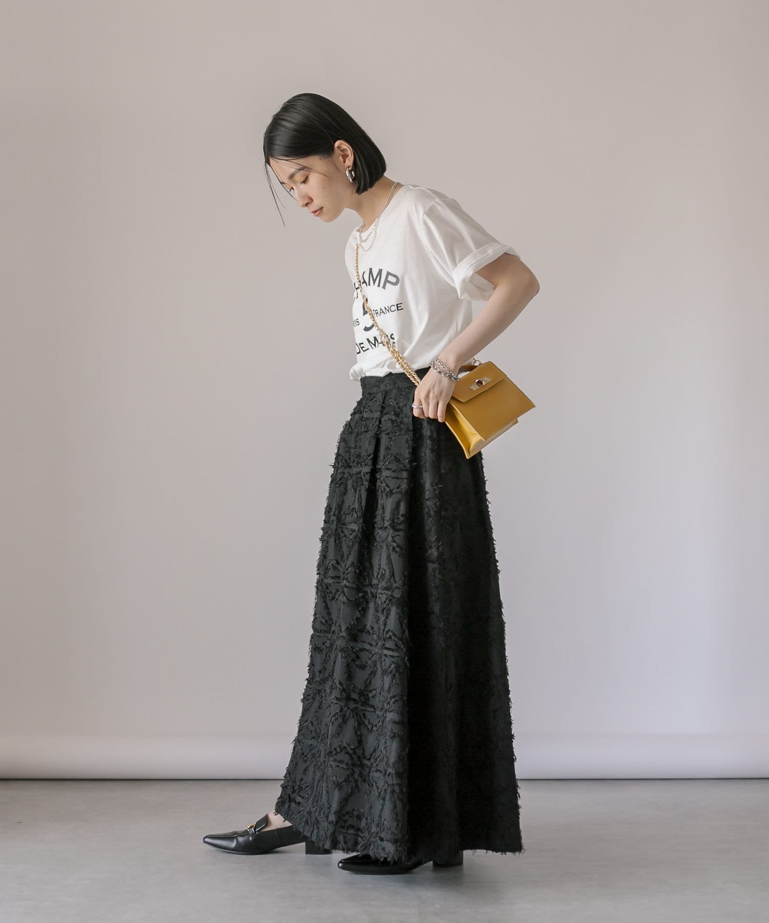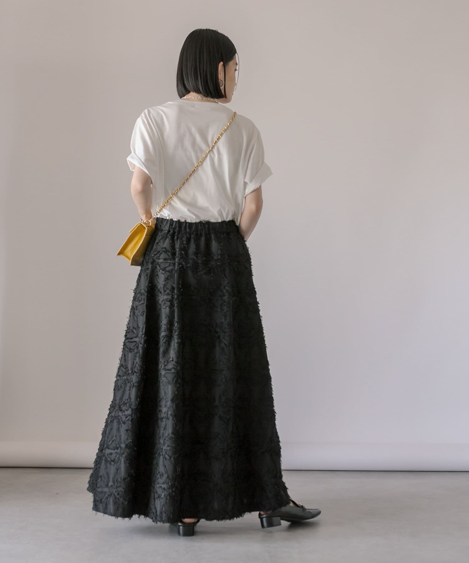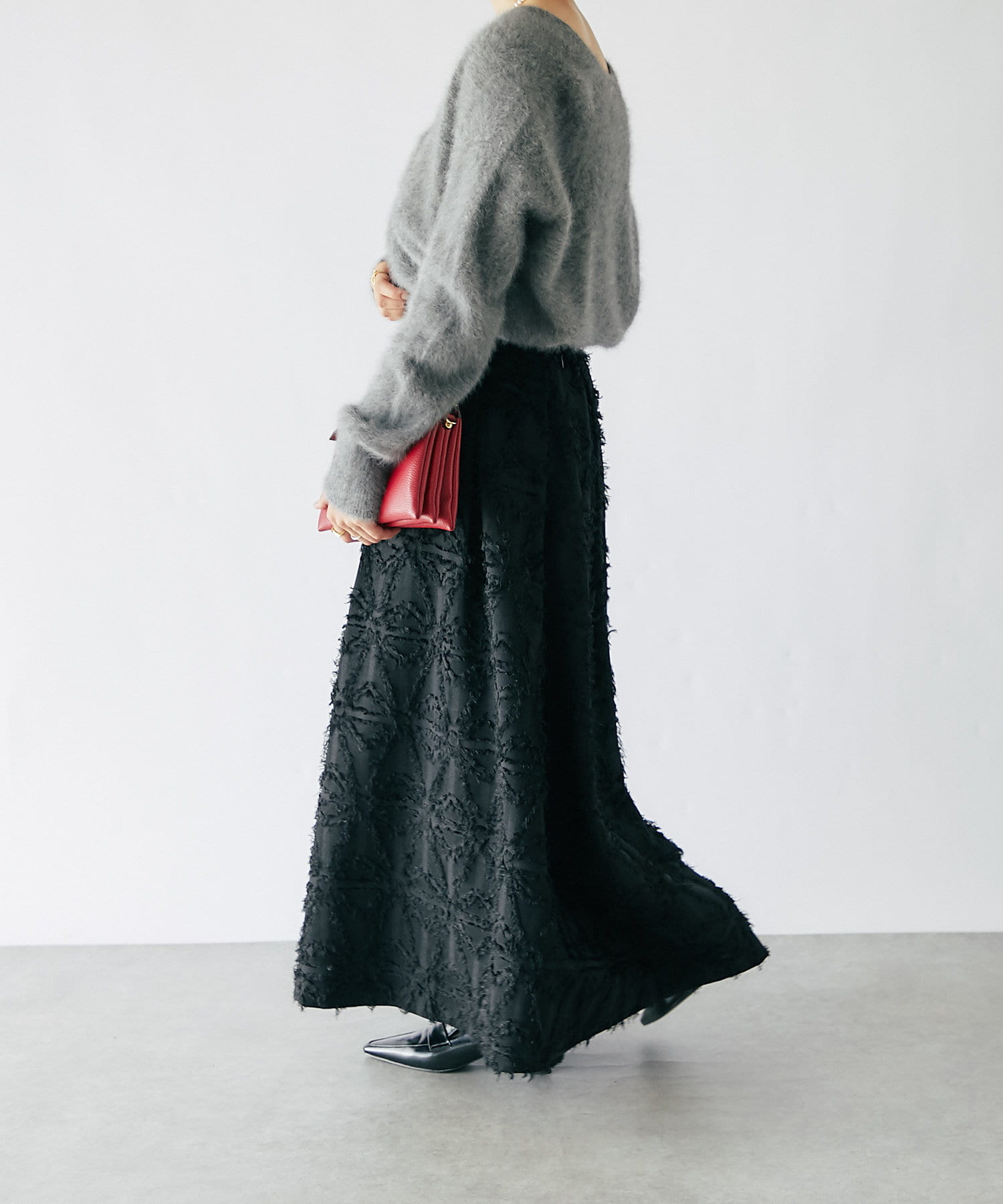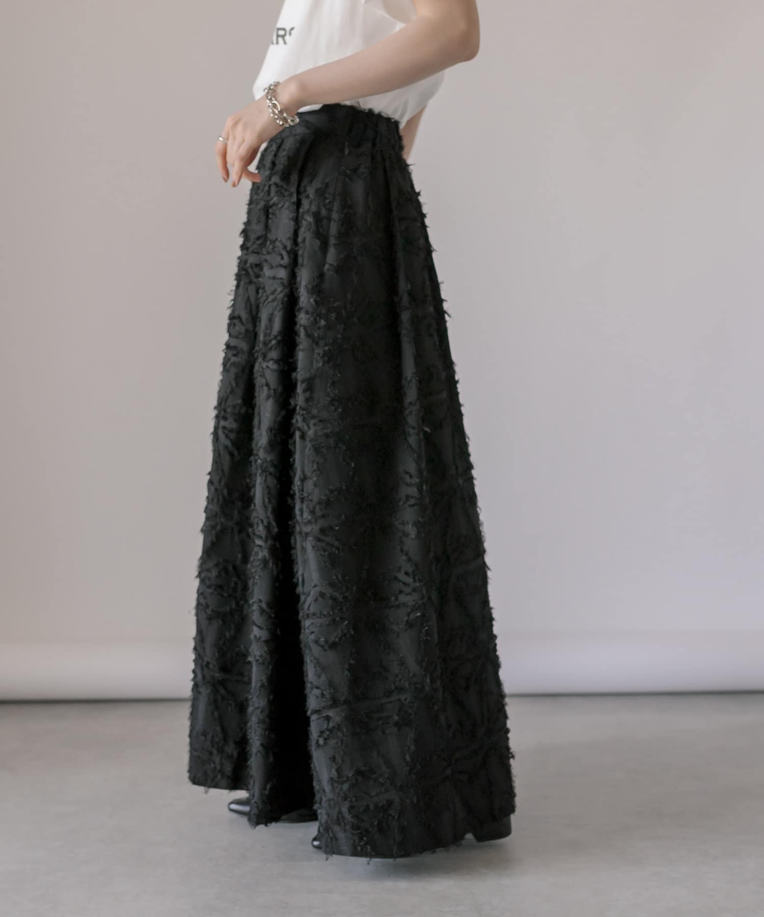 生地のカッティングが目を惹くジャガードスカート