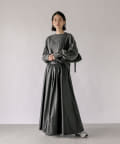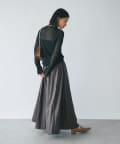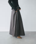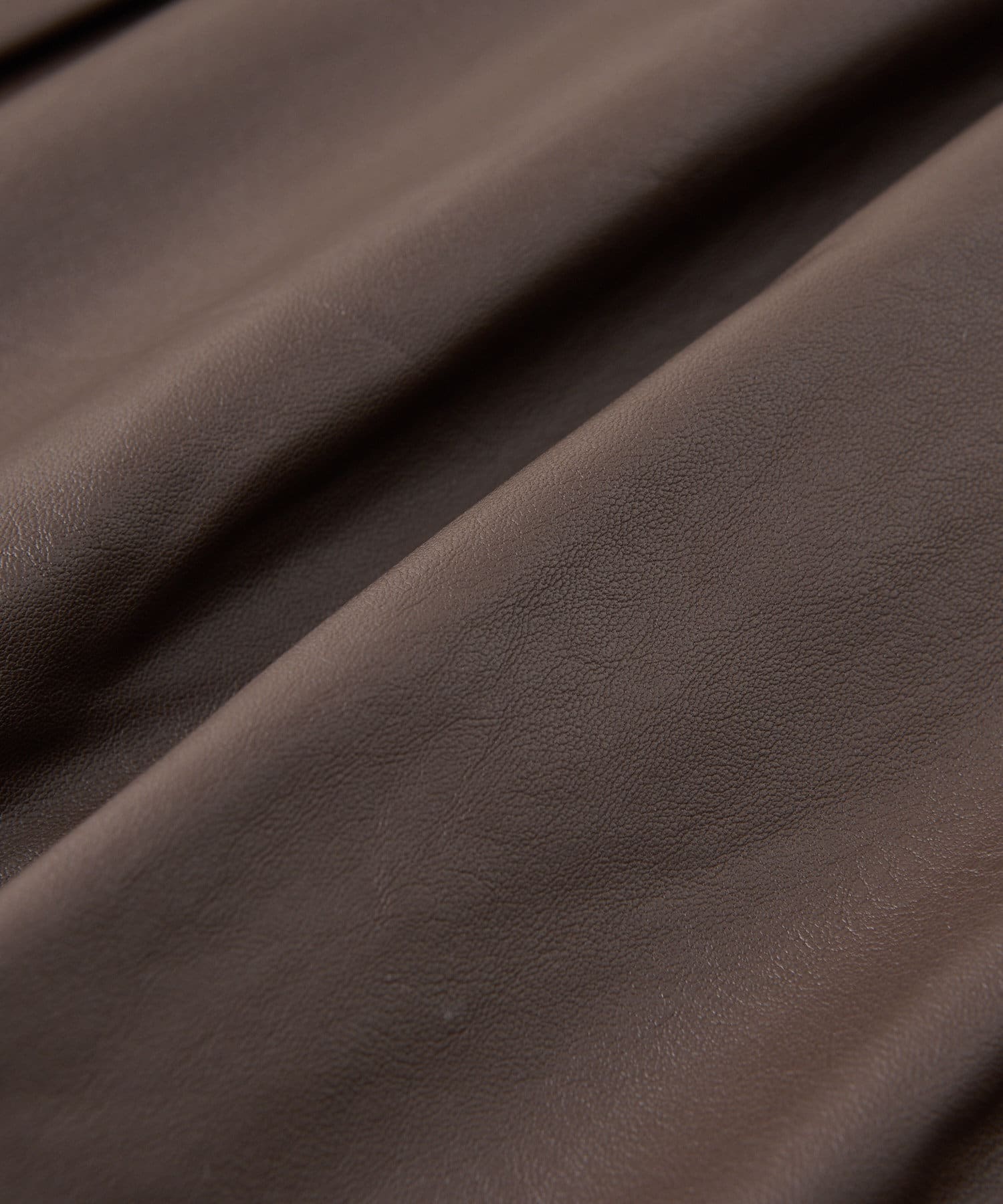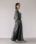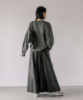 薄くて柔らかめの合皮を使用し、裾の見返しを太めに取ることで、ギャザーが張りすぎず裾に向かってフレアが綺麗にでるようにしています。
