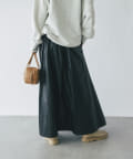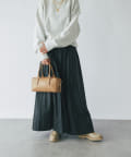 後ろゴムでイージーな履き心地ですが、前ベルトはフラットになっておりトップスをインしたときにもカジュアルになりすぎず綺麗見えするデザイン◎