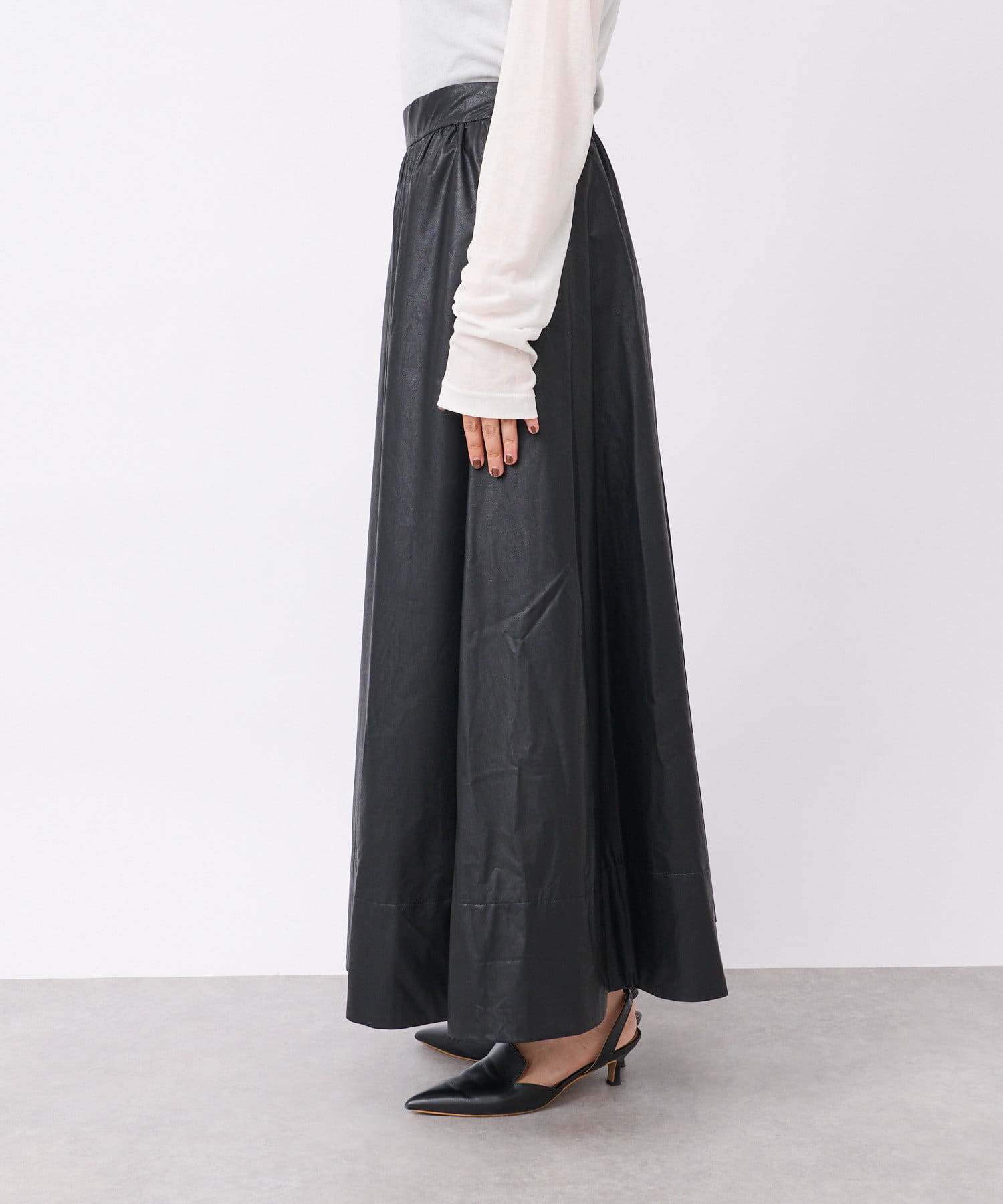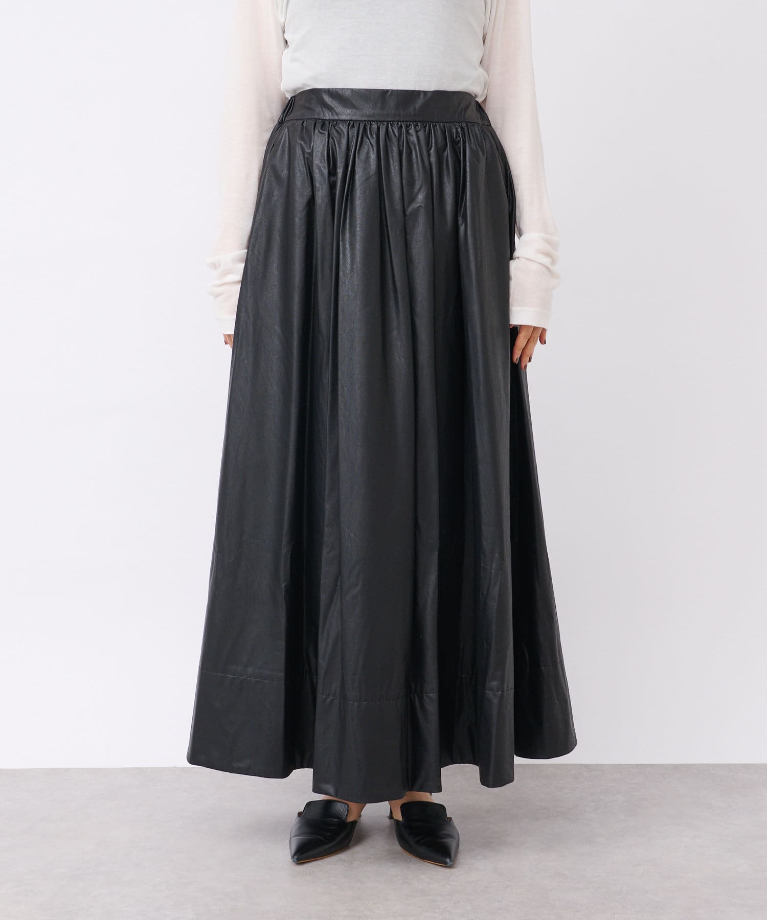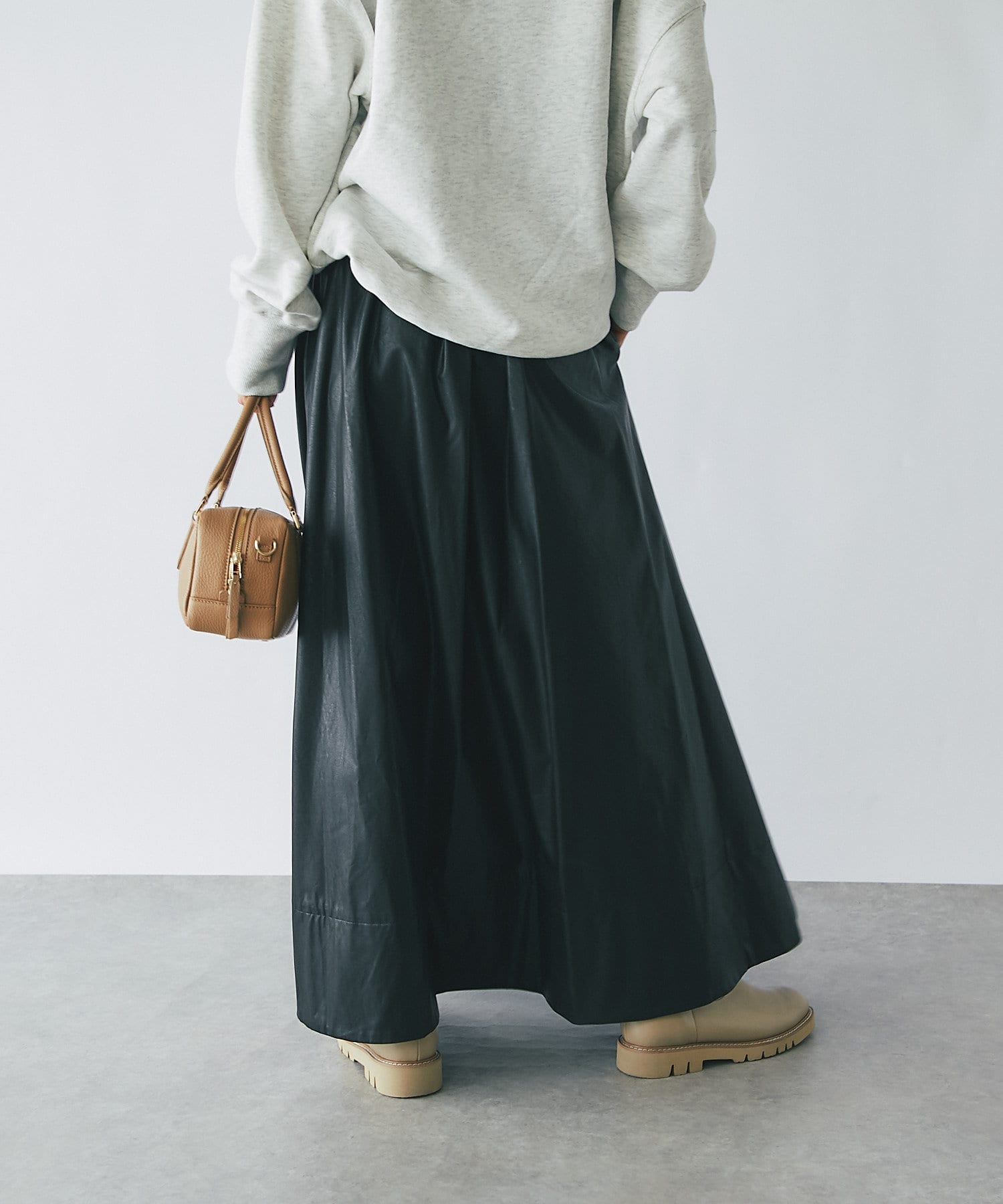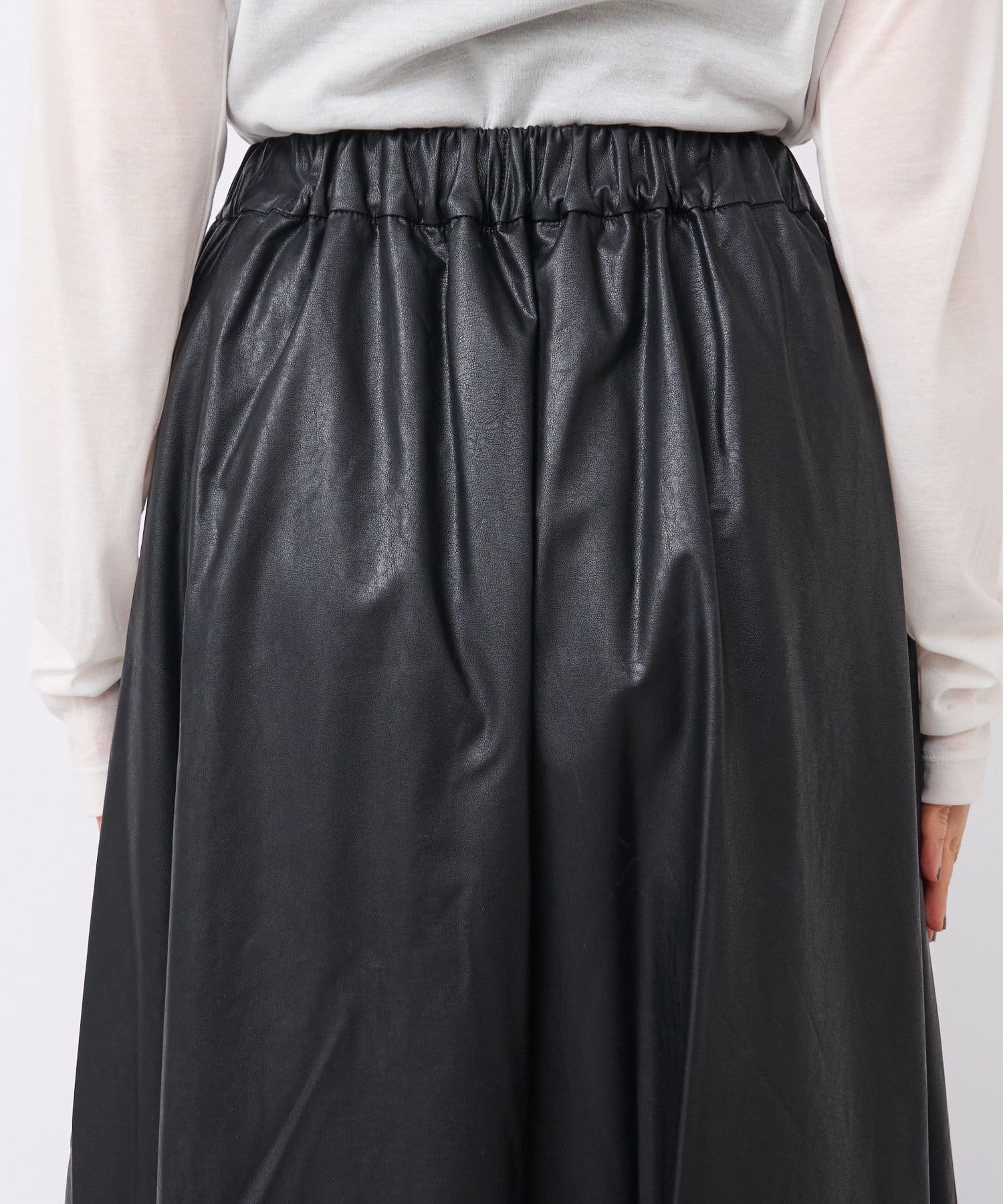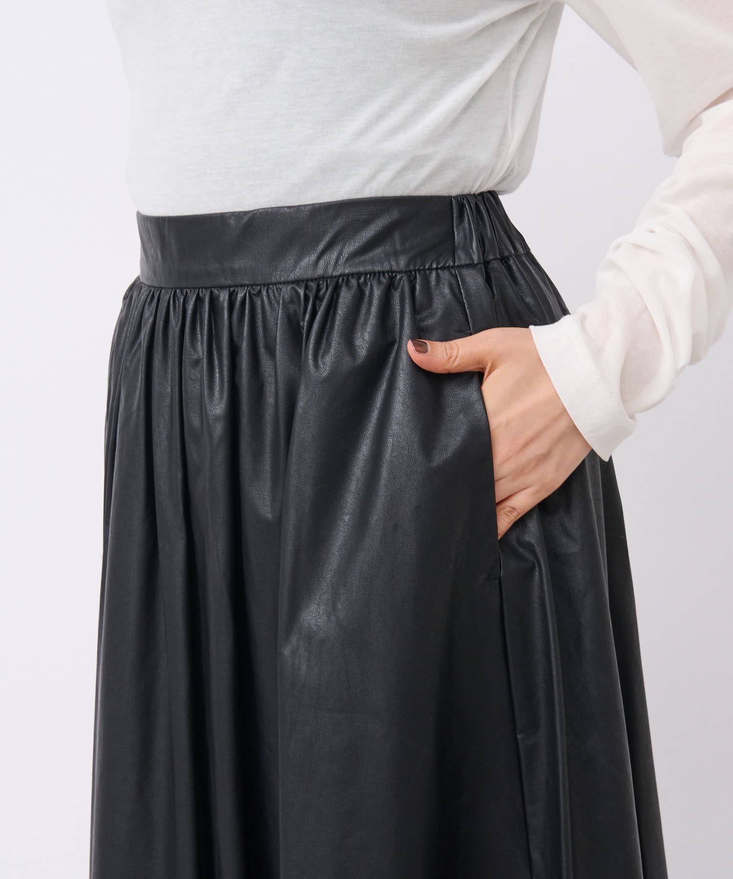【柔らかくイージーな履き心地】レザーライクギャザースカート