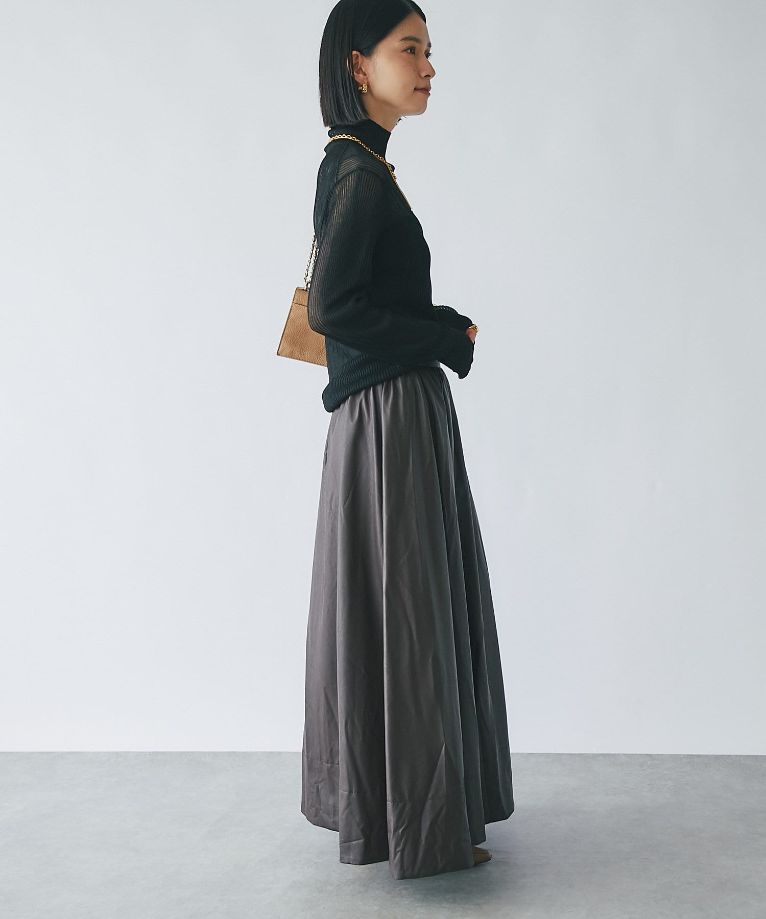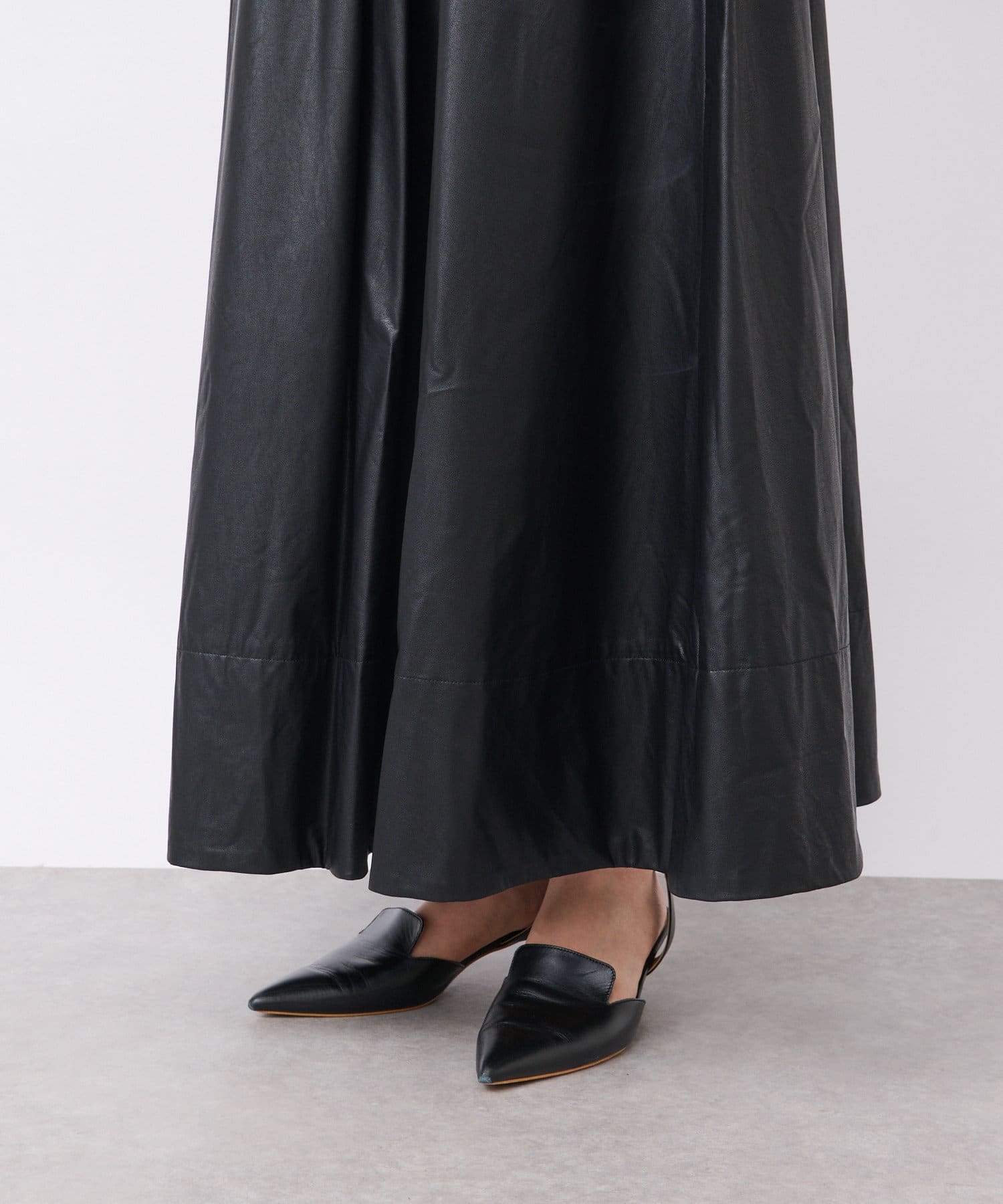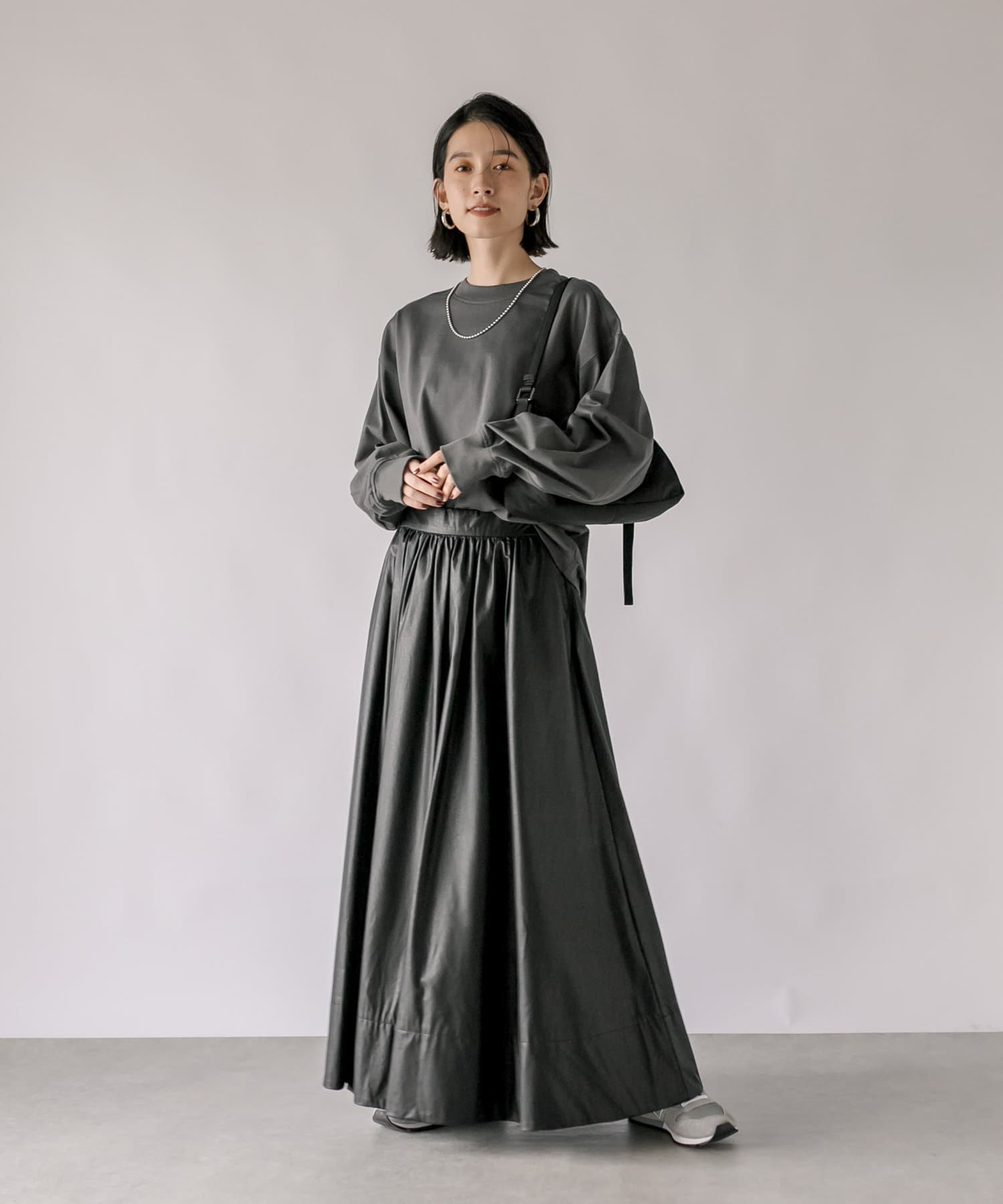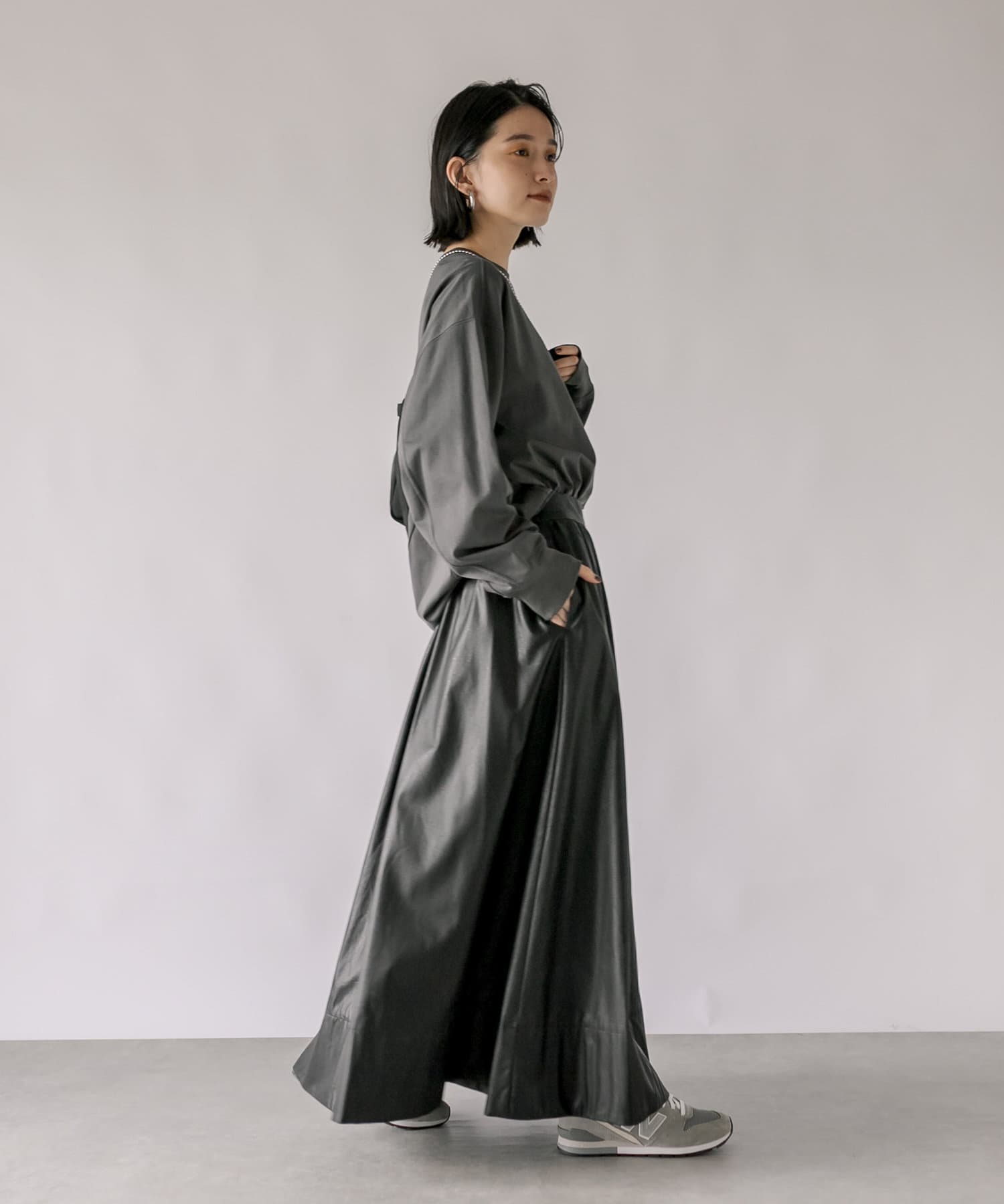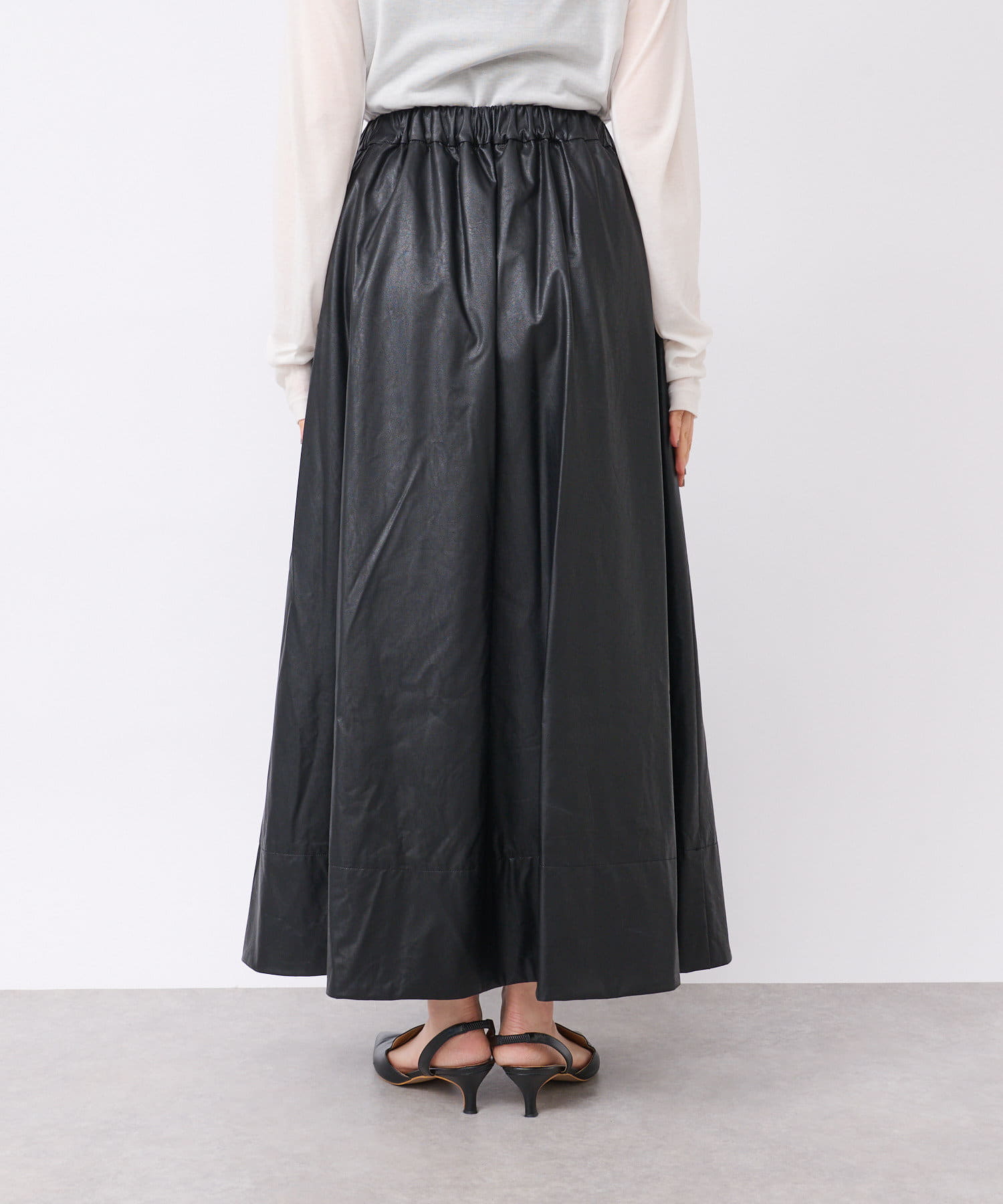 【柔らかくイージーな履き心地】レザーライクギャザースカート