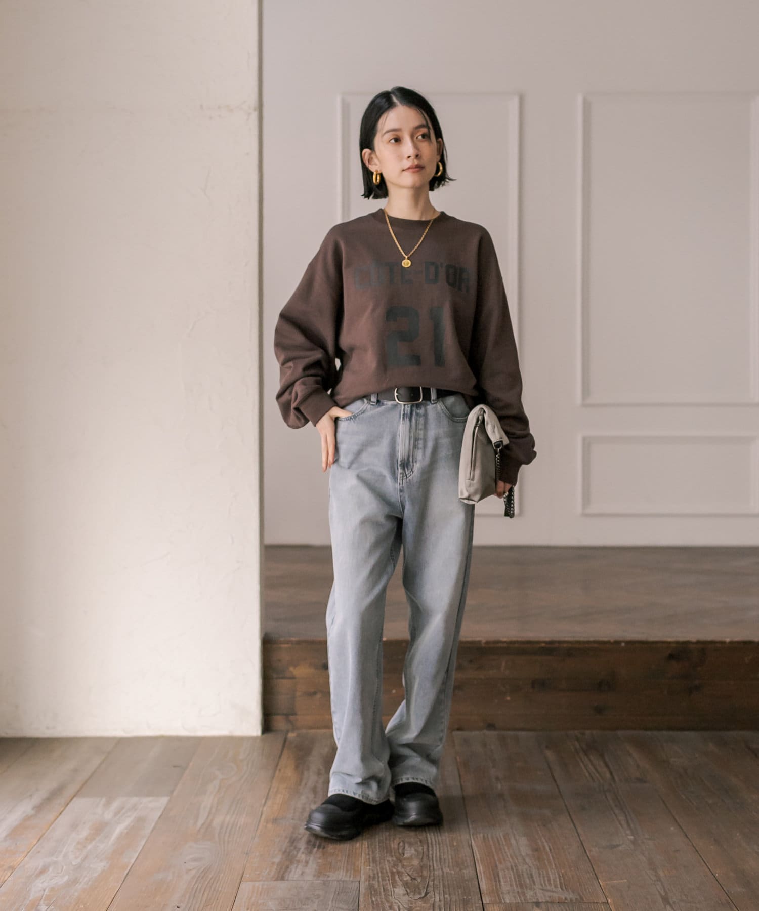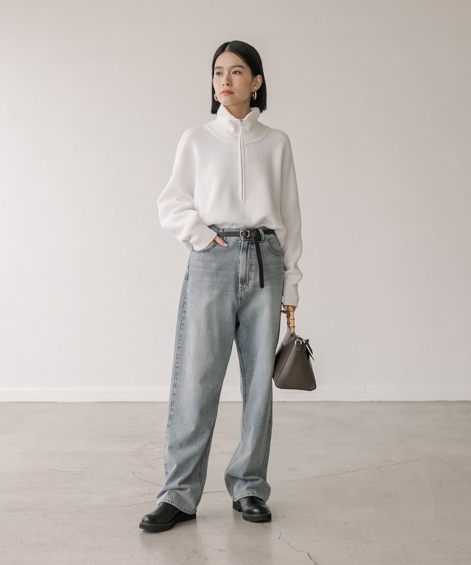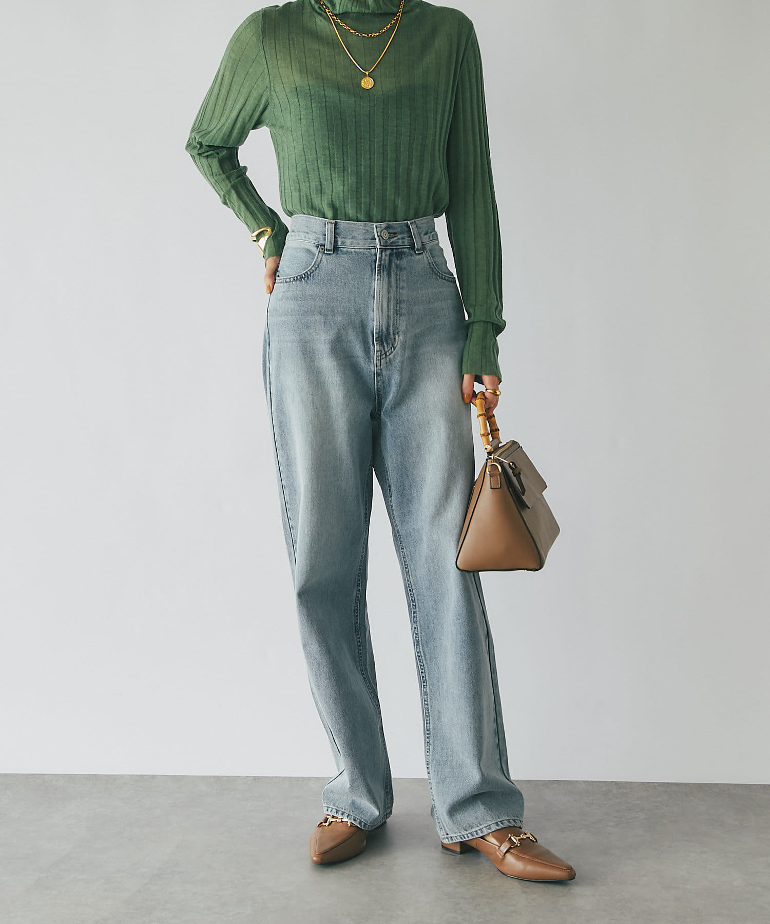 最初はこのデニムの色合いに惹かれましたが、履いてみても太すぎることないストレートで美脚見えします。ストレッチも程よく効いていて履き心地も良いです。