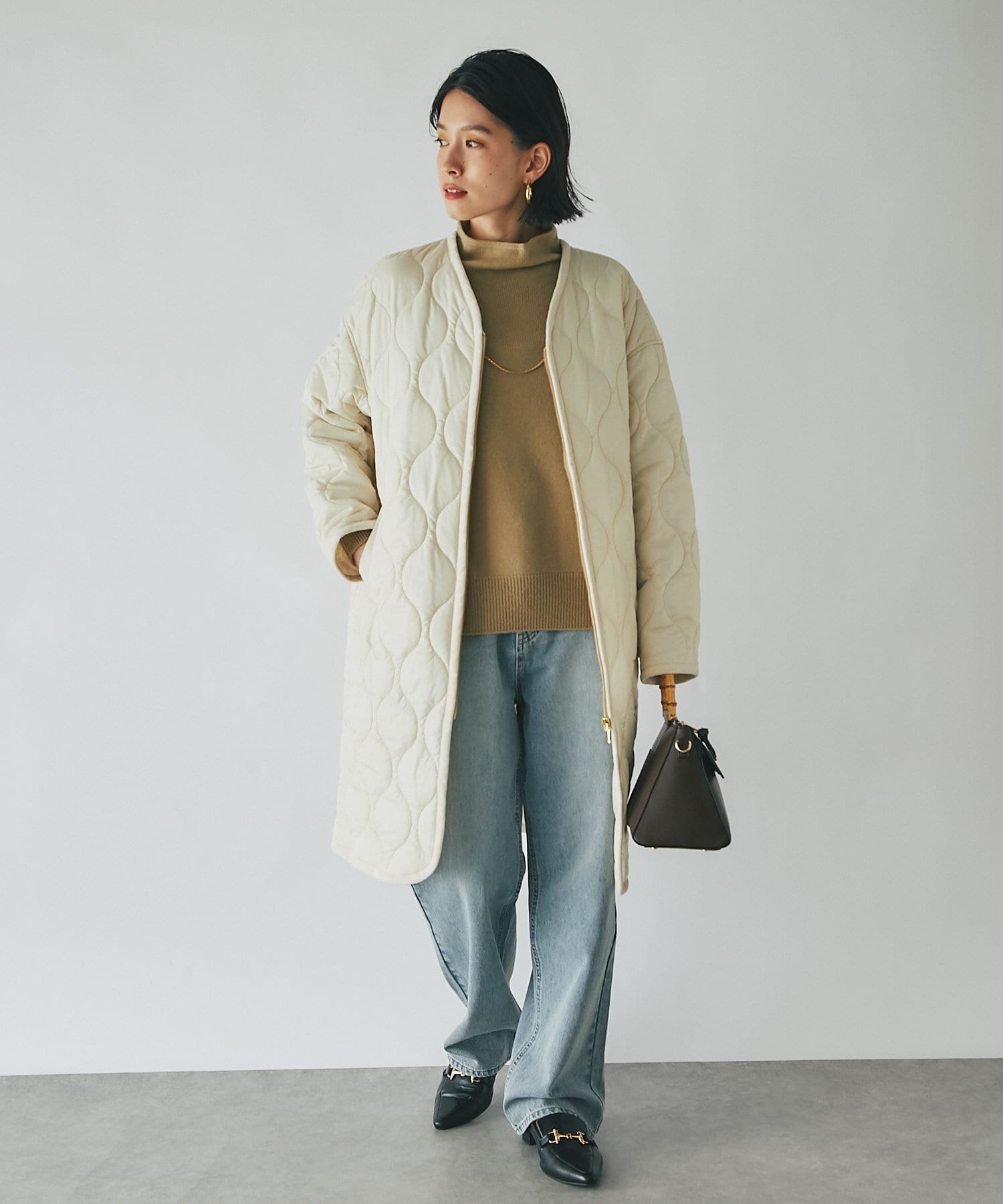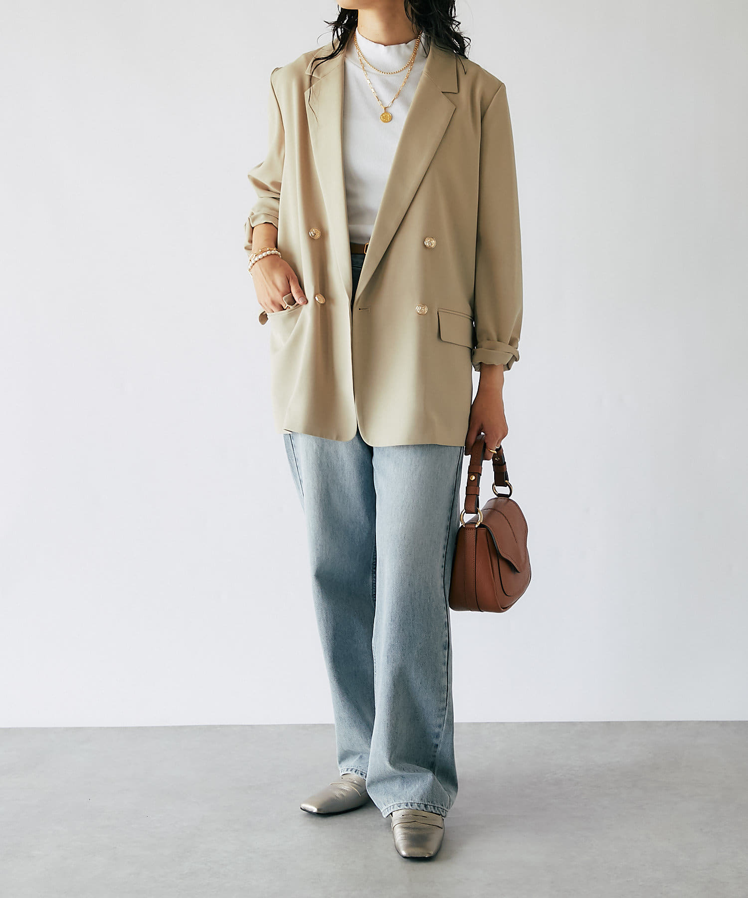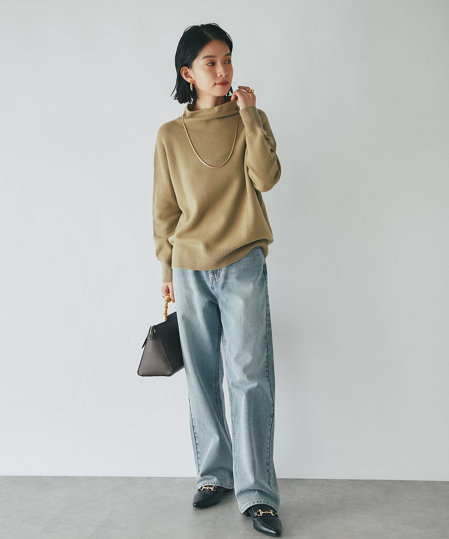 シルエットもきれいなのでルーズなニットなどと合わせてもカジュアルダウンしすぎず、どこか女性らしさを残した大人カジュアルな着こなしに仕上がります。