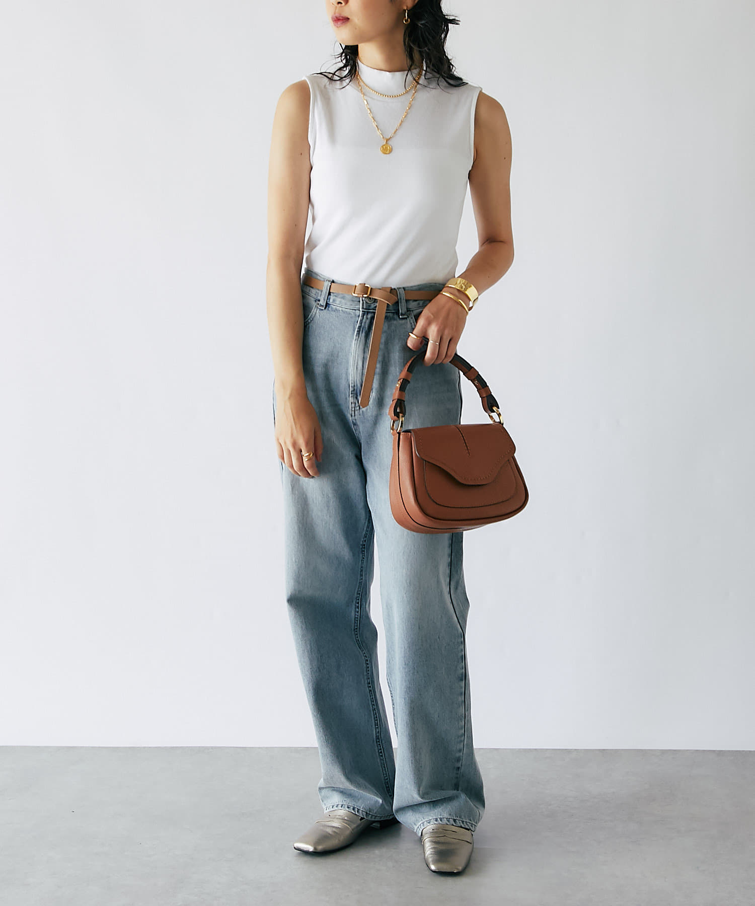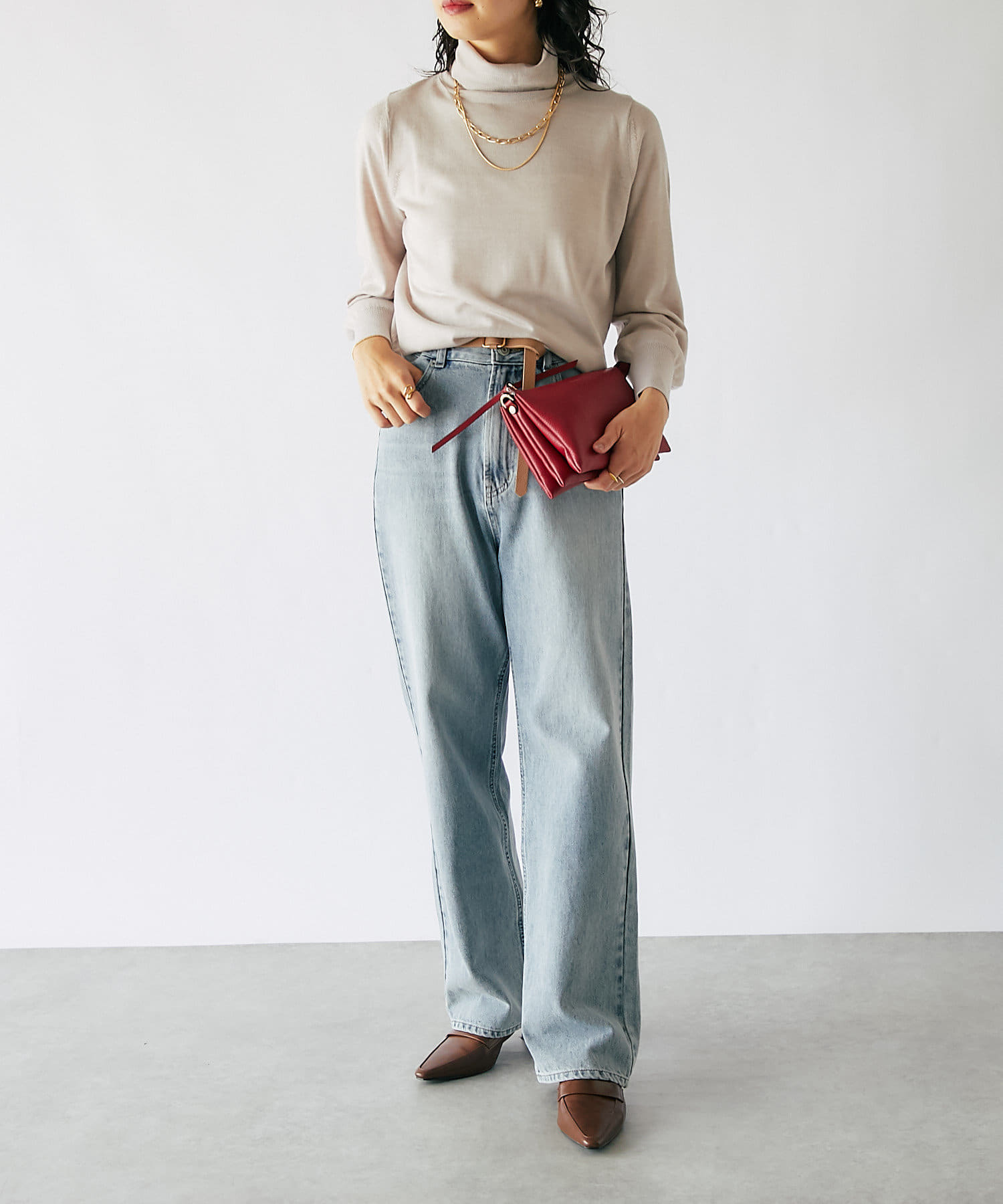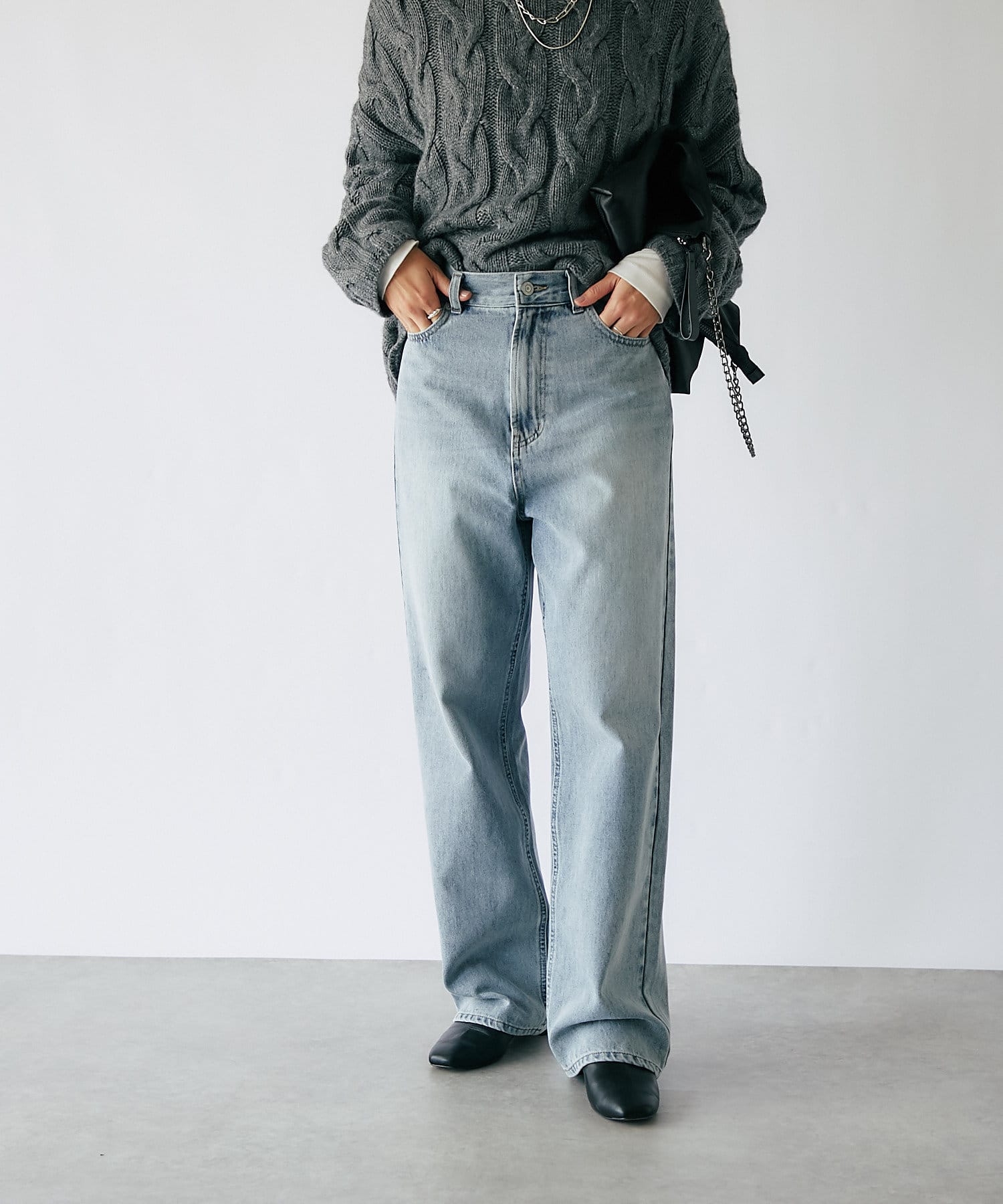 • やわらかなサックスカラーが女性らしいワイドデニム。