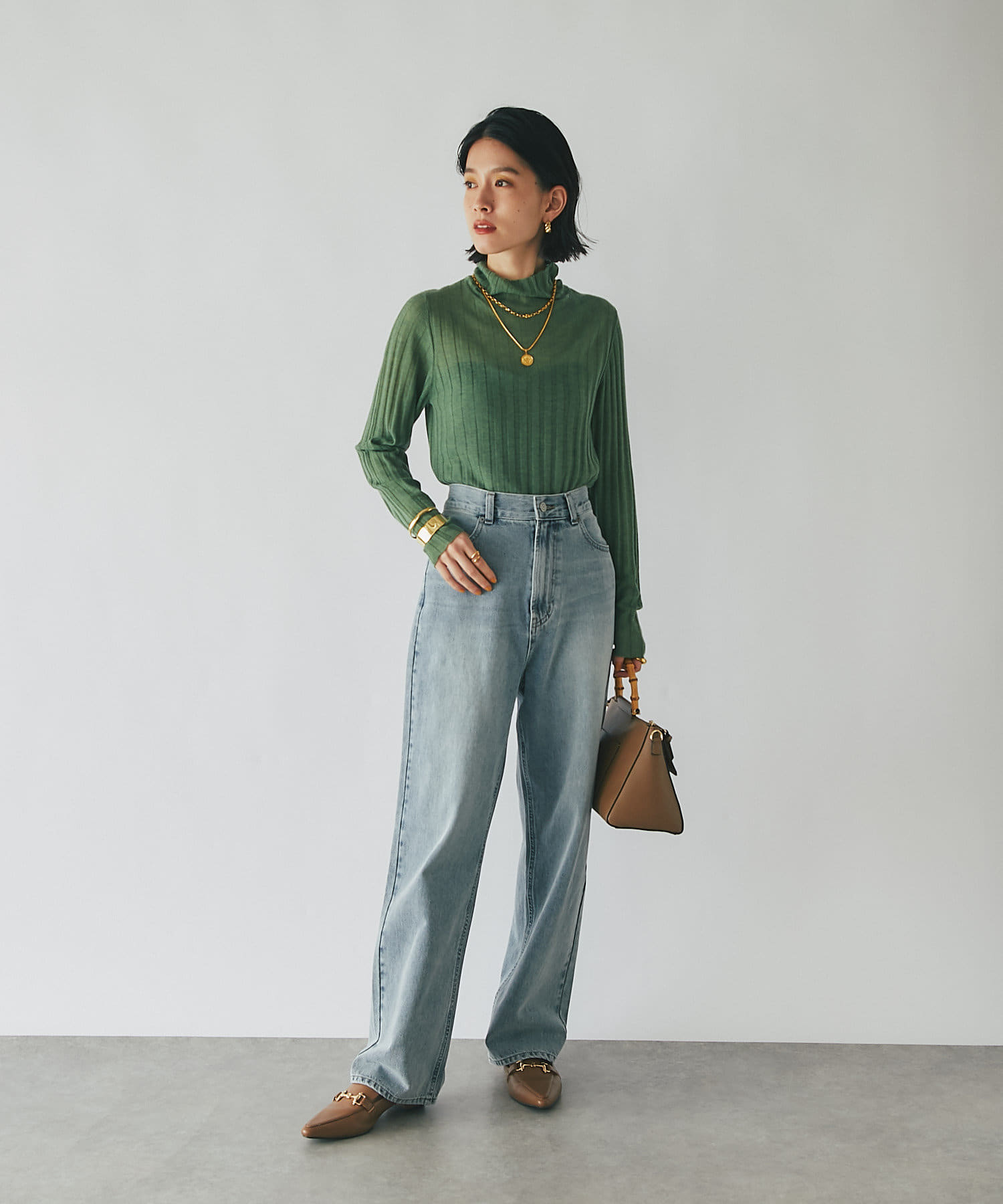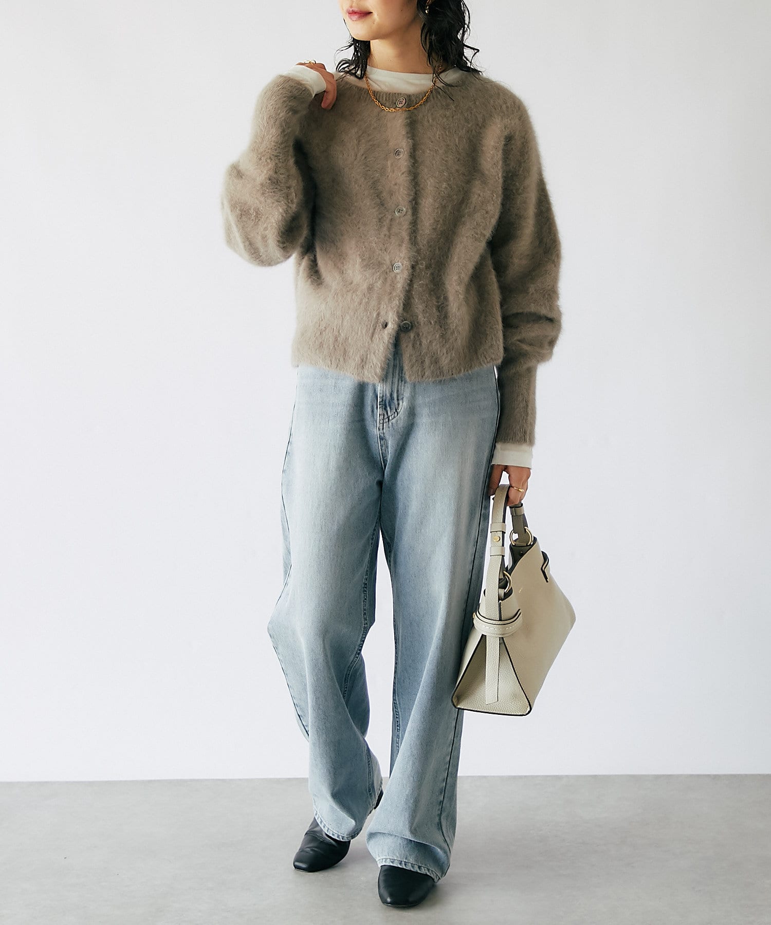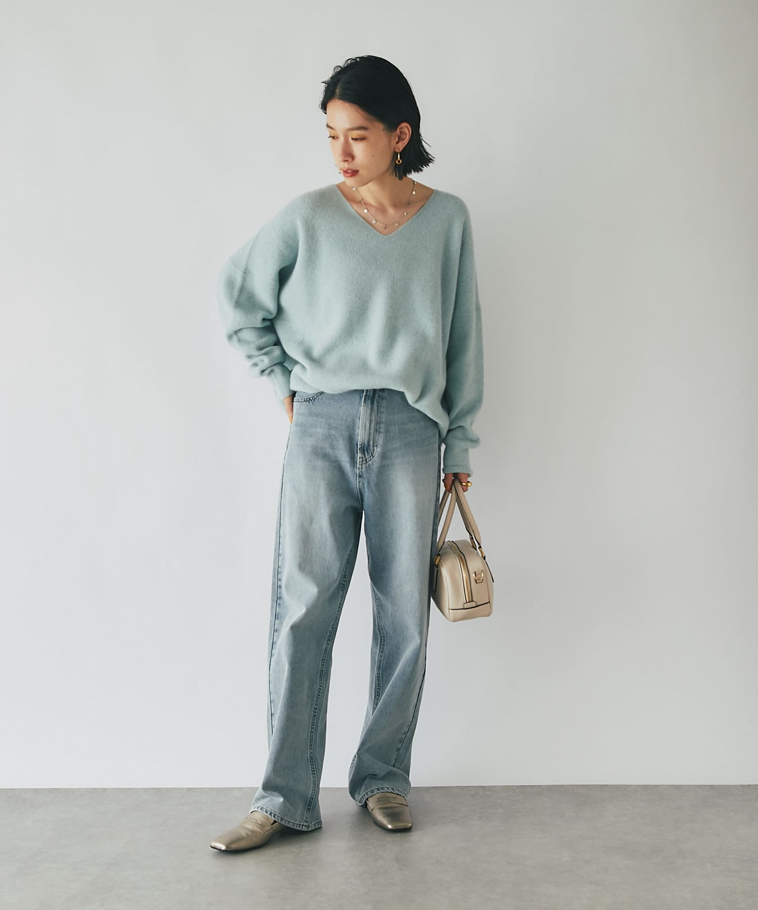 もちろん、ツイードやモヘアなどのレディライクなアイテムとの相性も抜群。カジュアルの中にもきれいさを残す、大人の女性のためのデニムです。