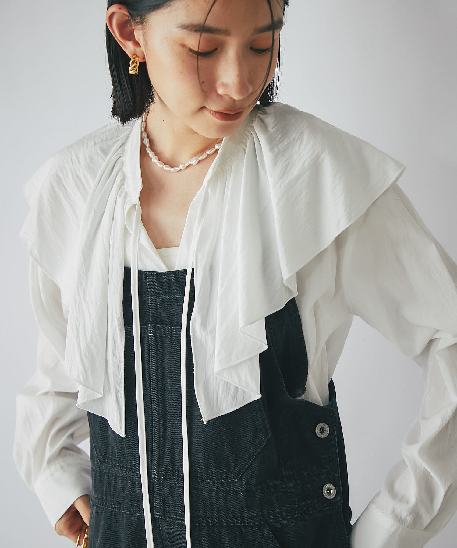 【大人の甘辛コーデに】フリルカラーブラウス