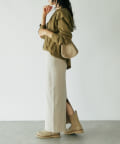 秋口には一枚で、冬にはニットやカーディガンを合わせてレイヤードするのも◎