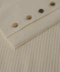 衿元はやや詰まり気味のクルーネックで、インナーの覗きが気にならないのも嬉しいポイント。