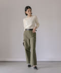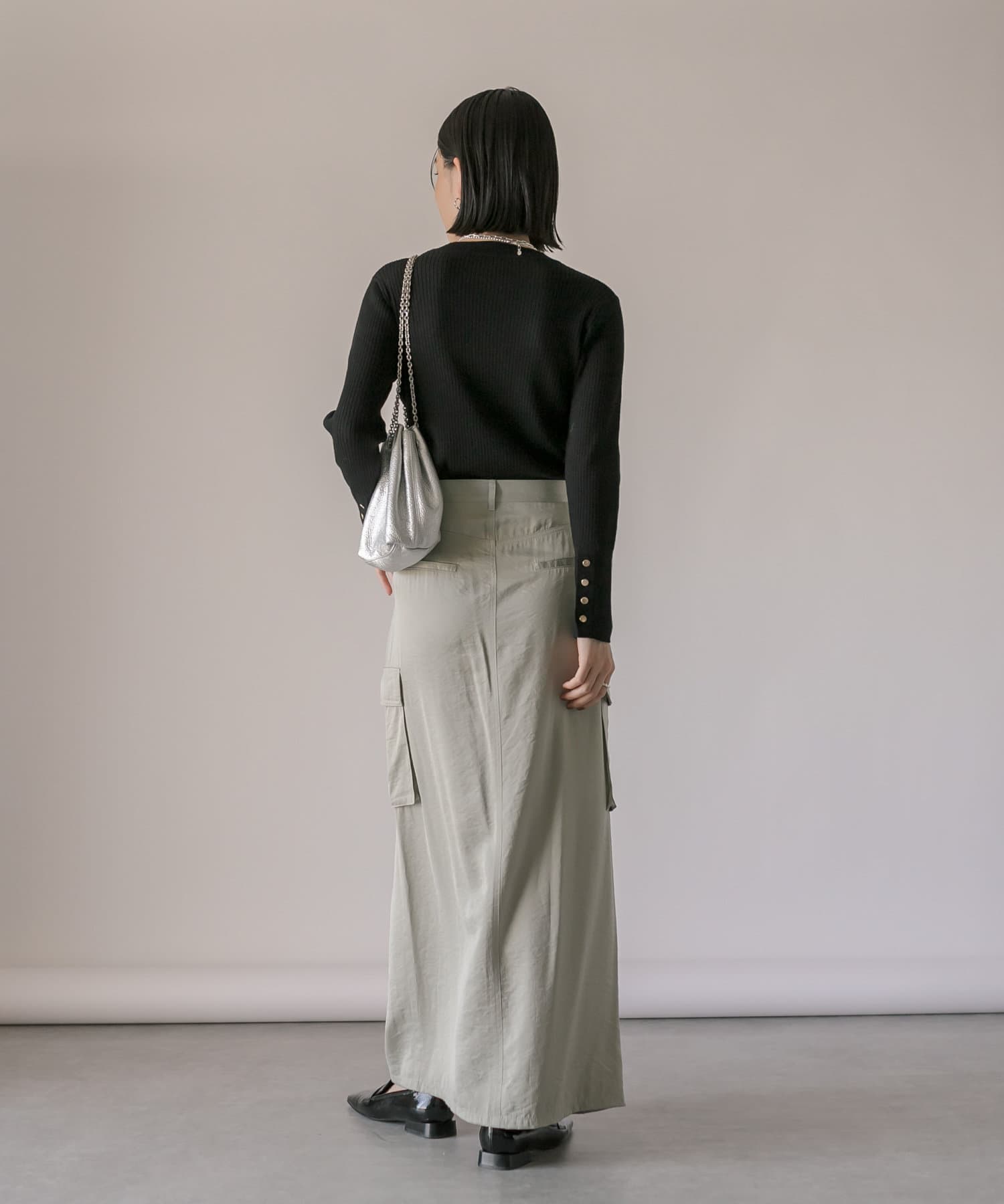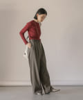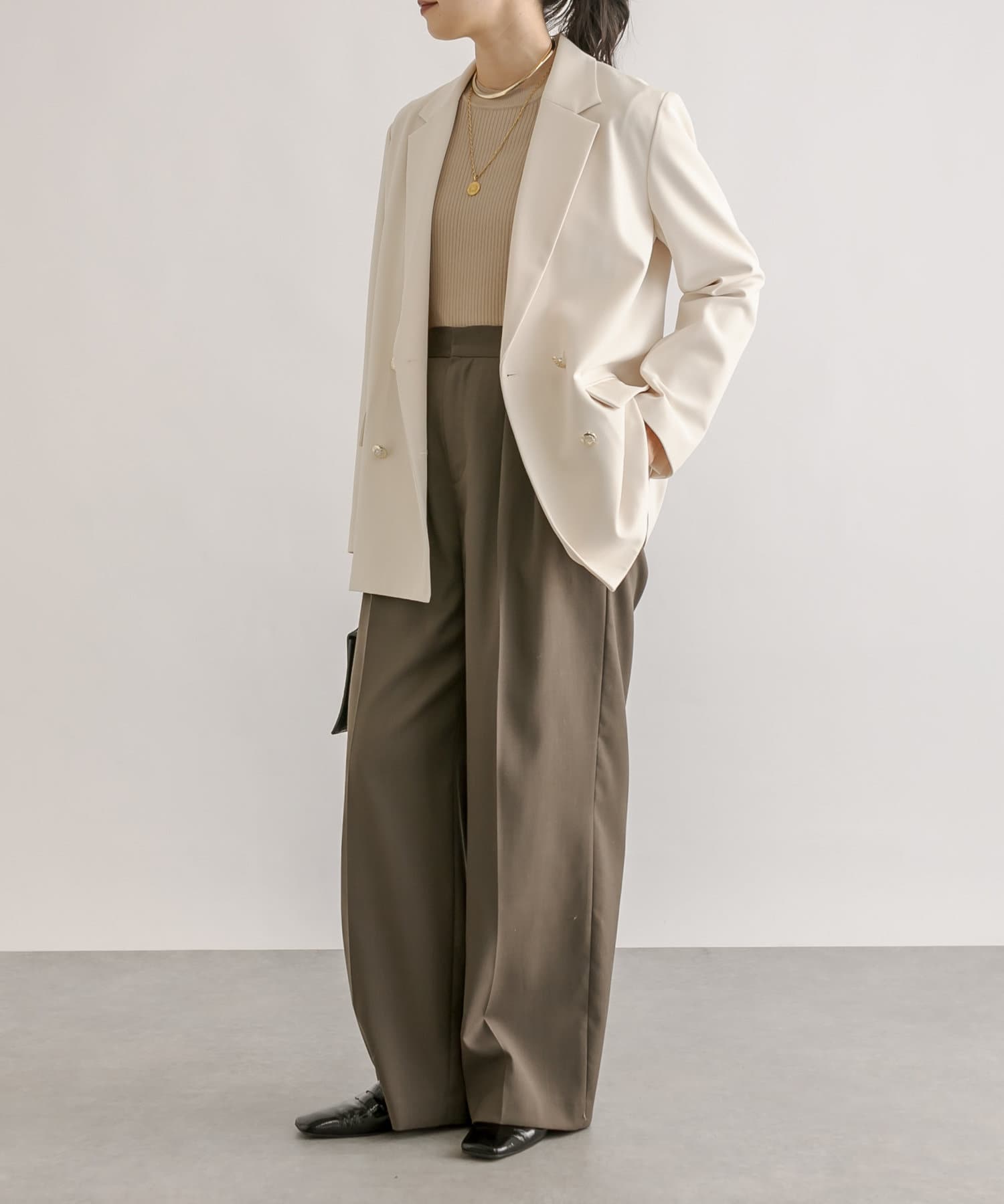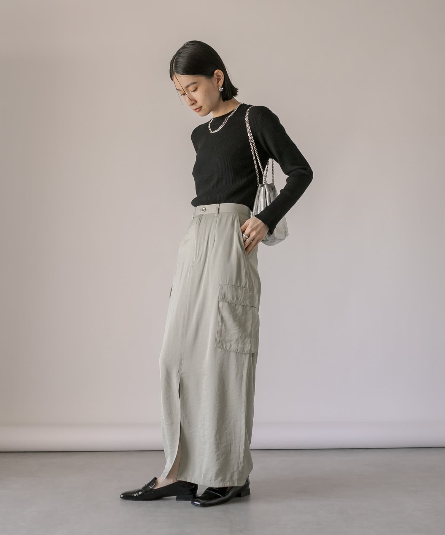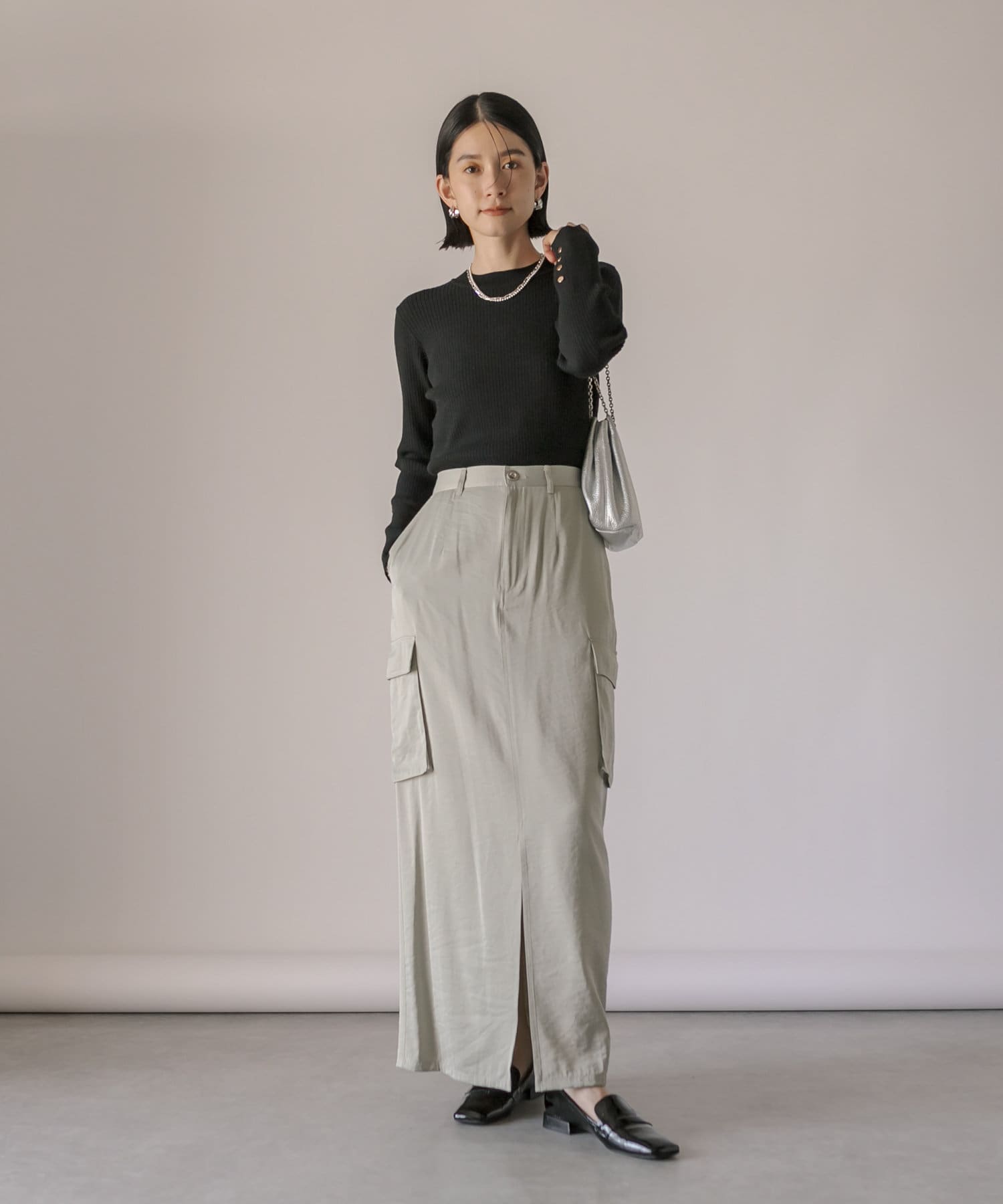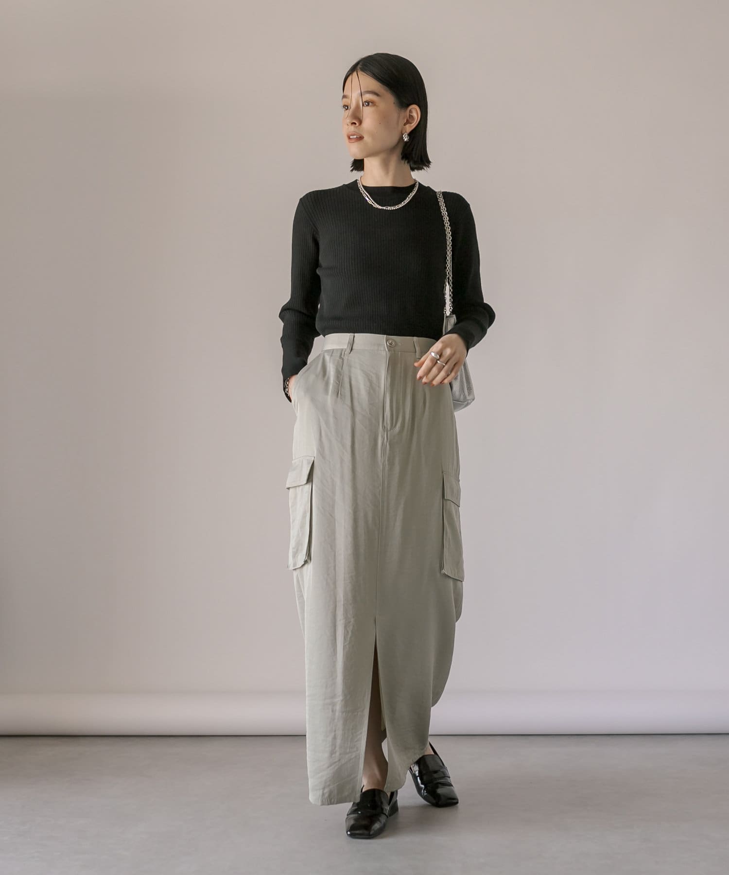 コンパクトなサイズ感ですっきりとした印象になるため、ボトムはワイドパンツやフレアスカートなどでメリハリのあるシルエットを楽しむのもおすすめ。