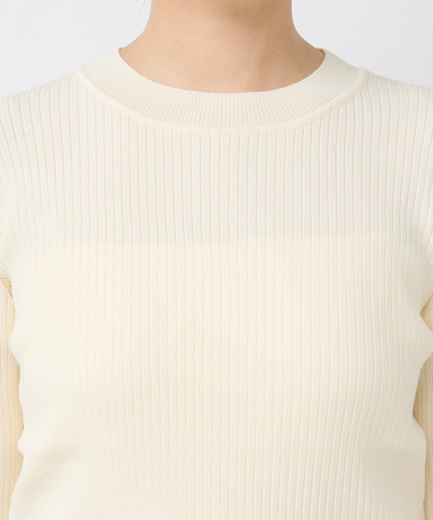 【1枚でも、インナーにも最適】リブクルーネックニット