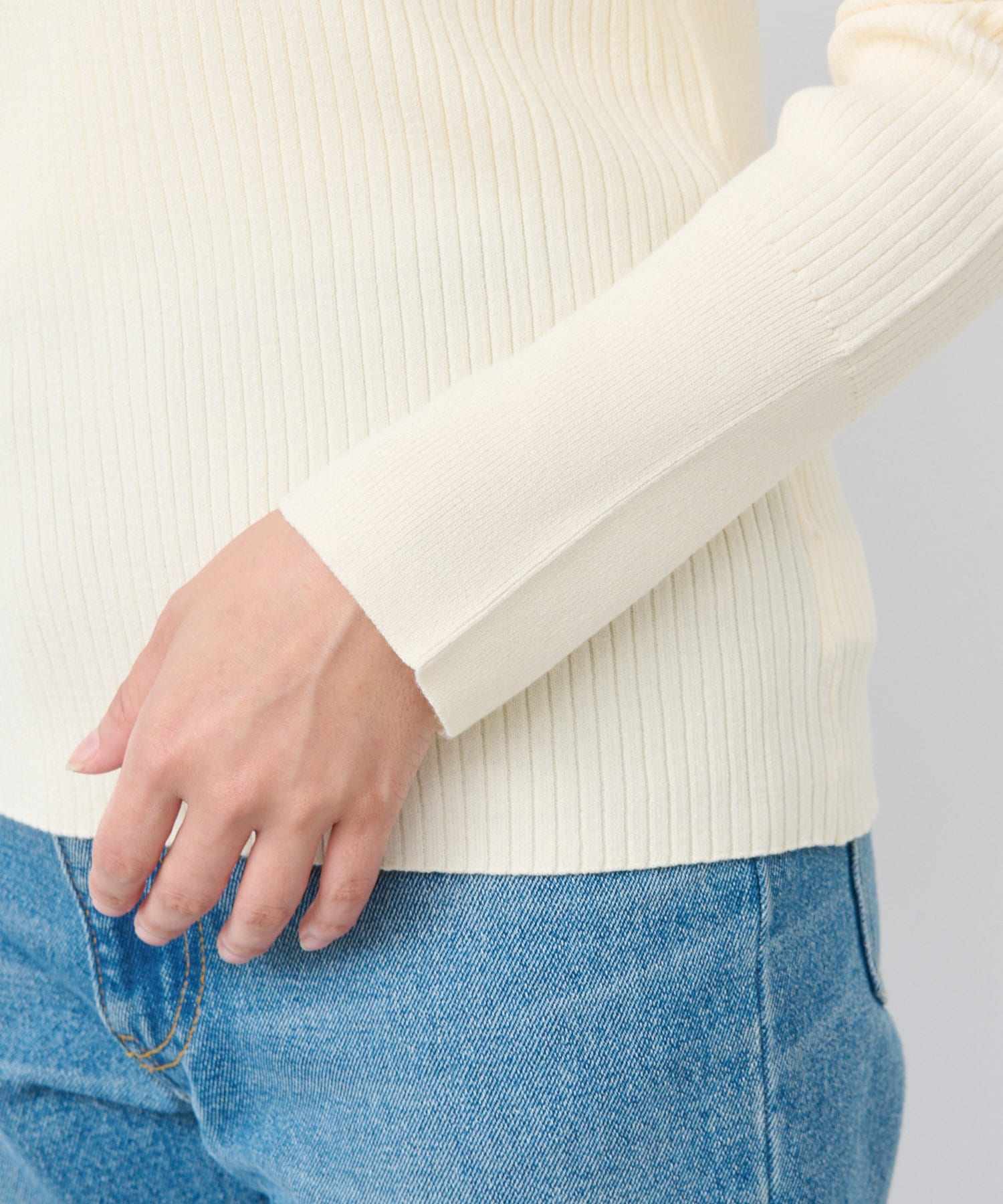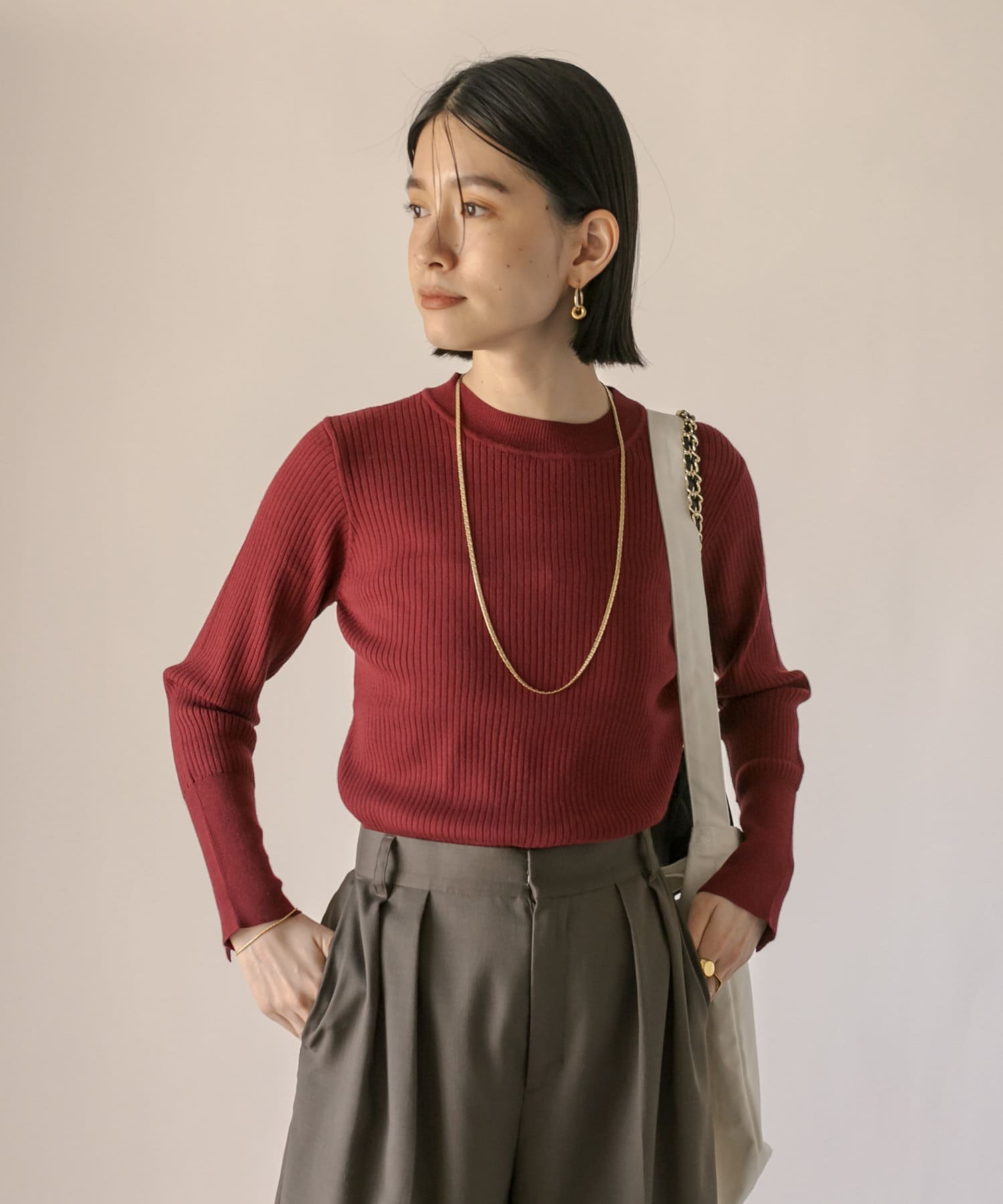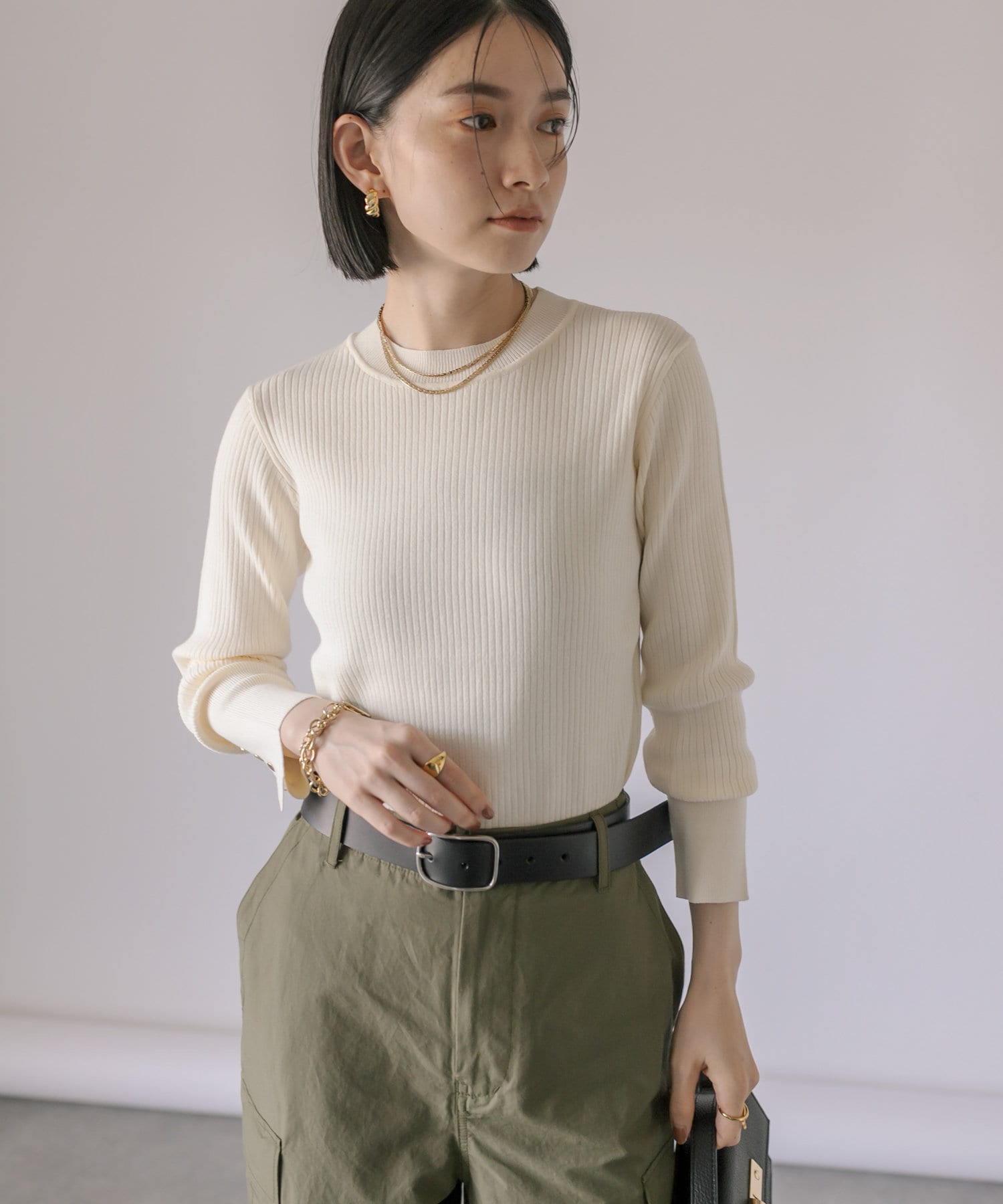 これからの肌寒くなる季節、羽織ものなどのインナーやレイヤードにも使いやすく、1枚あると便利なニットです。