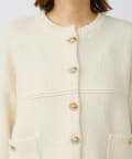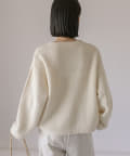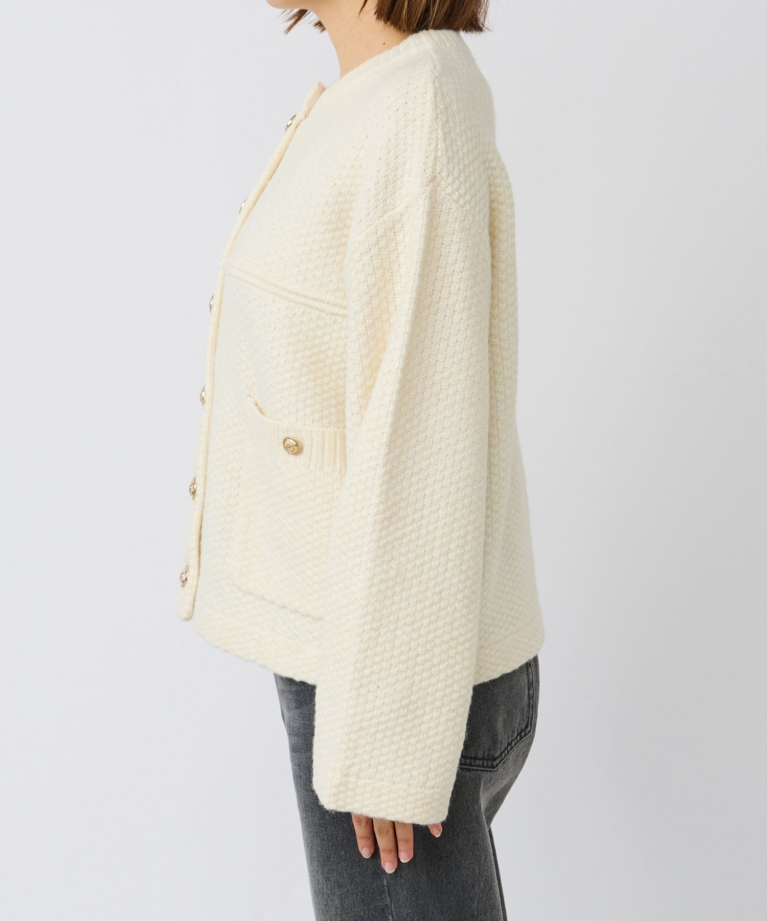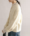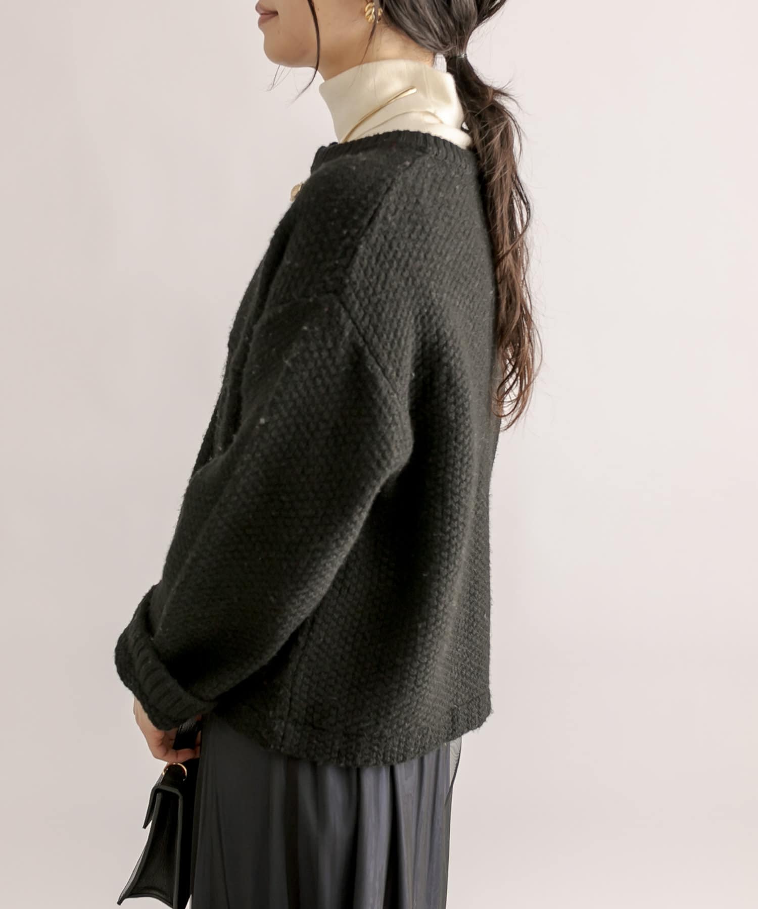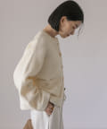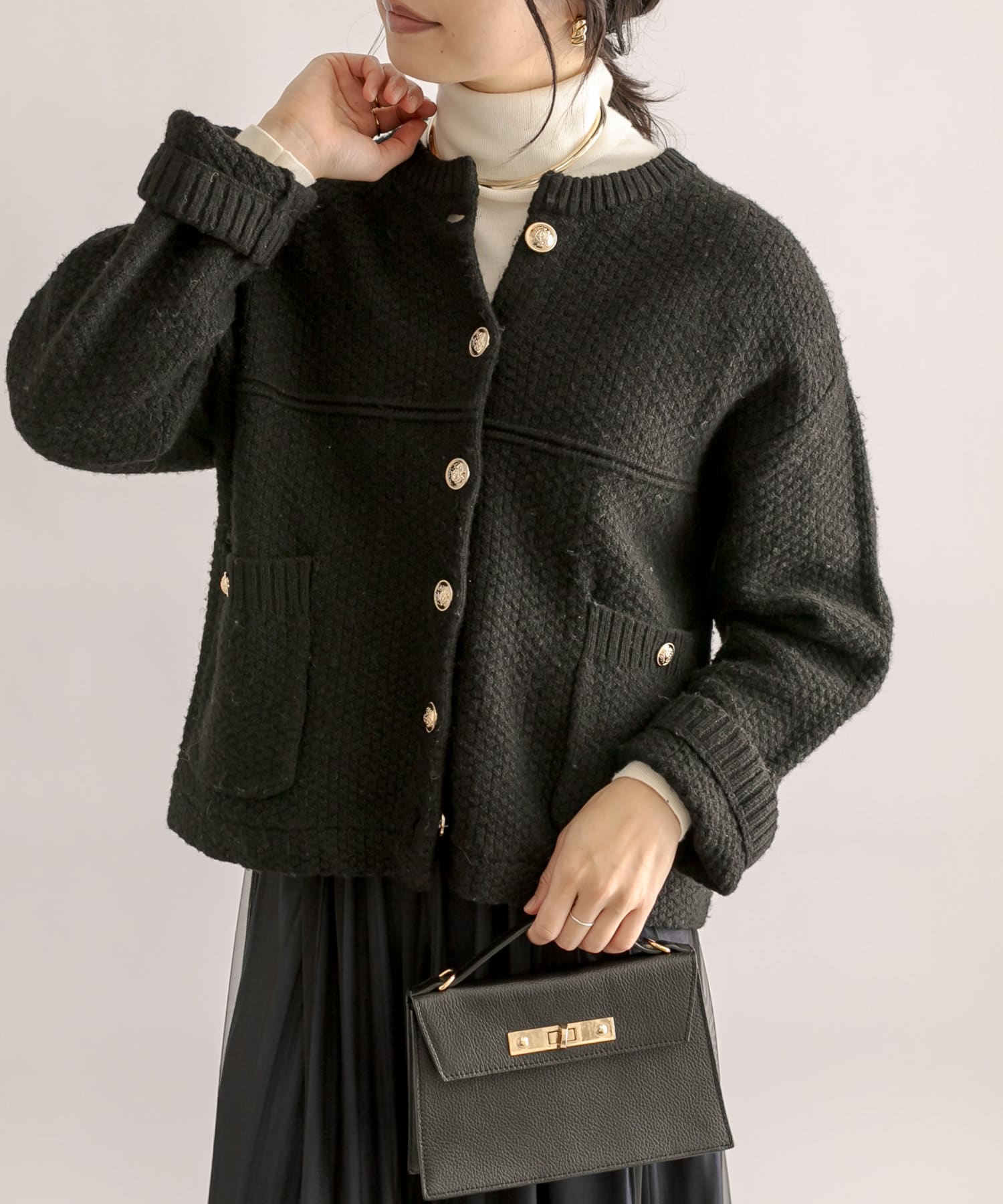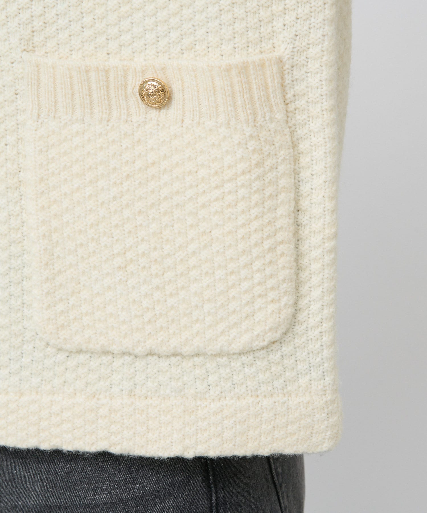 ナチュラルな風合いの編地にメタルボタンがポイントのカーディガン。