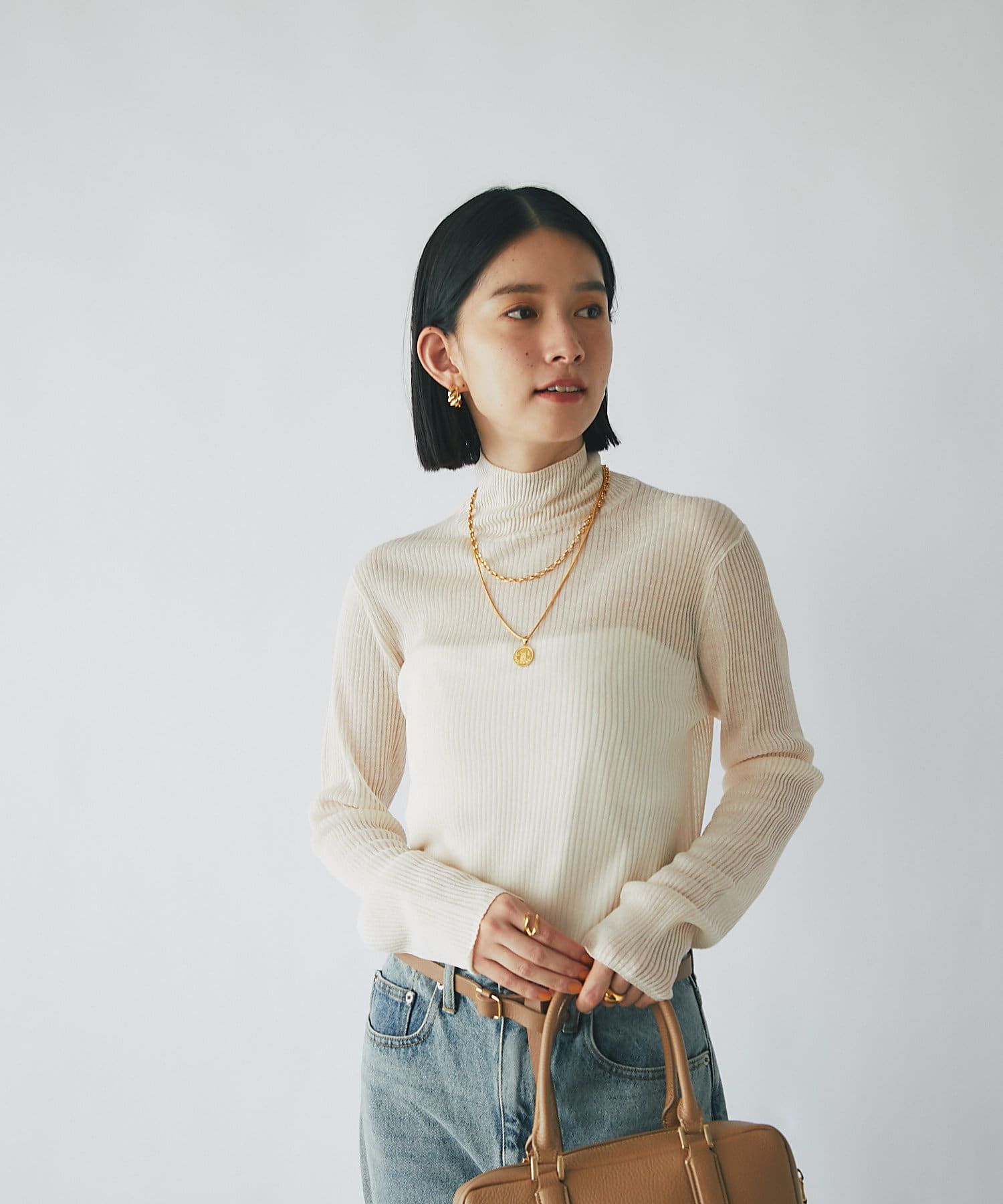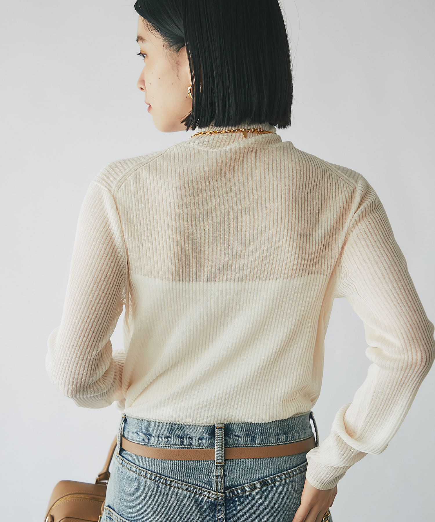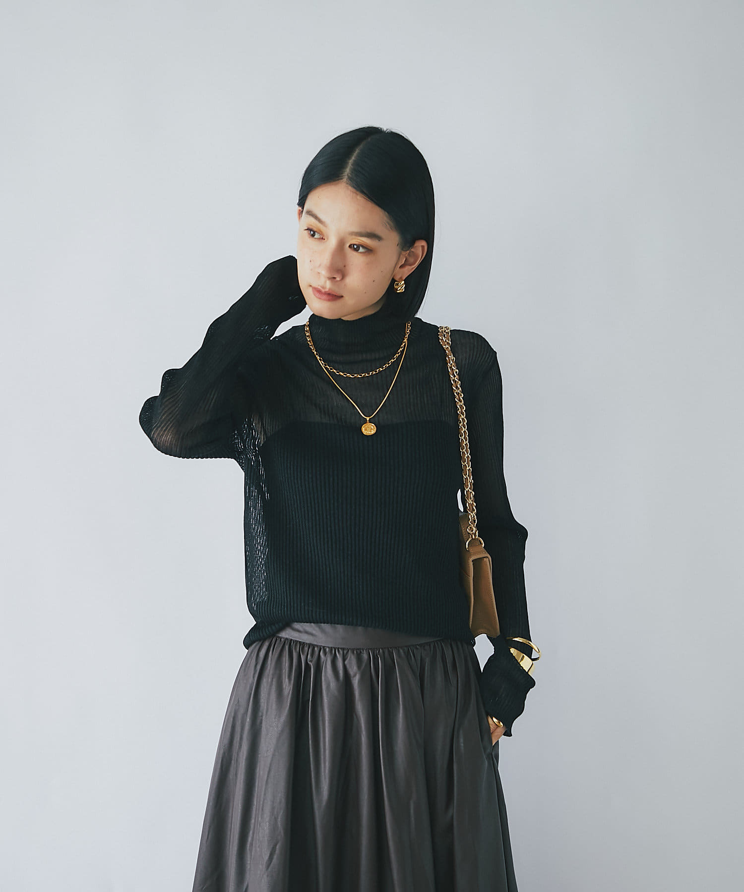 さらっとした素材感と程よいシアー感が今年らしいニット。