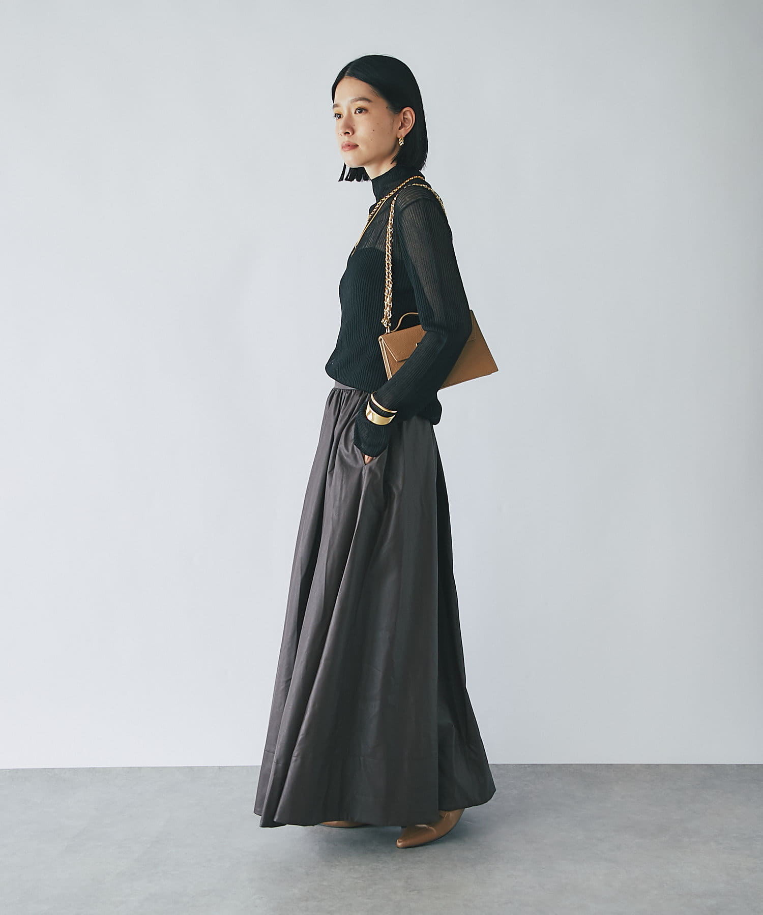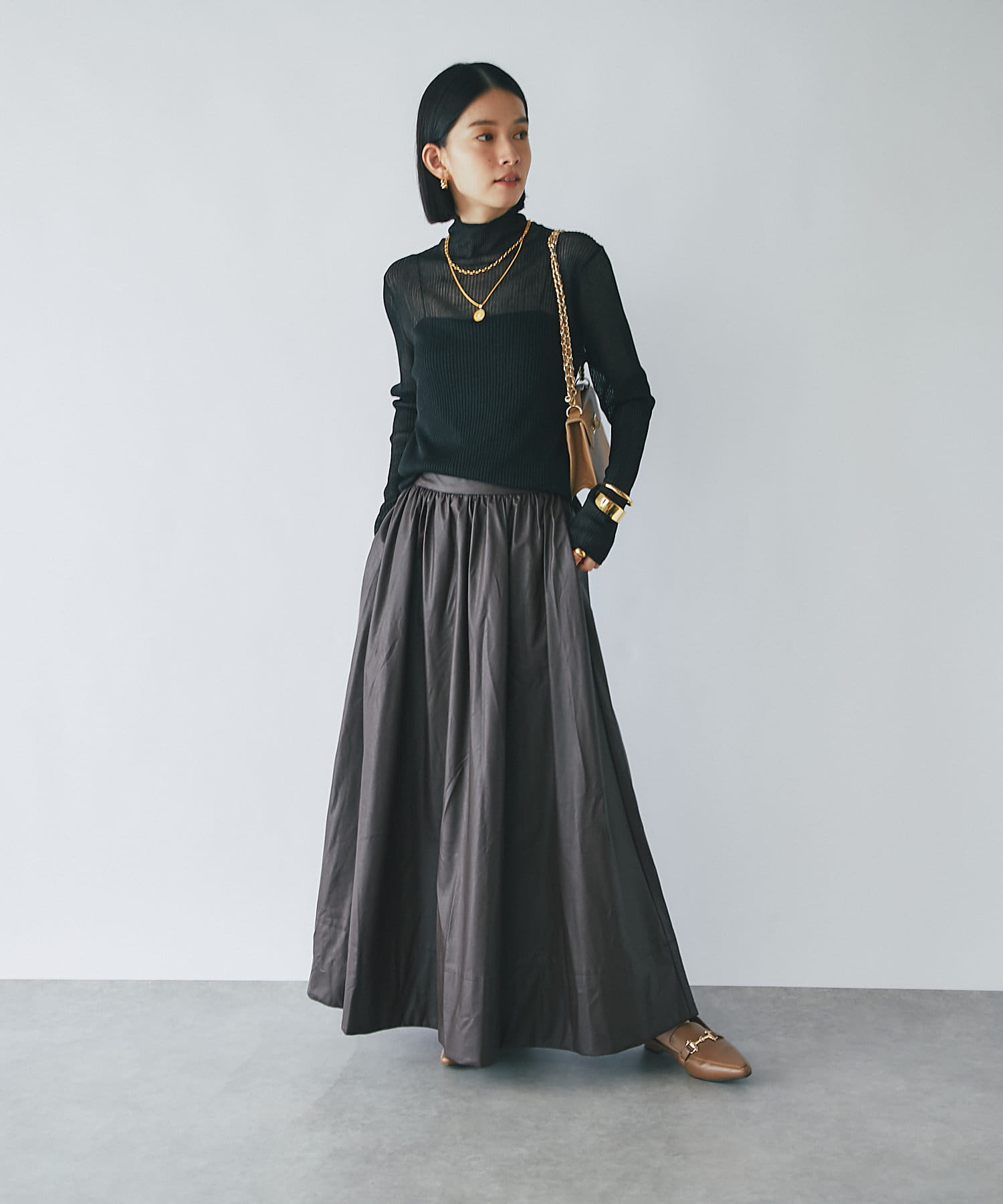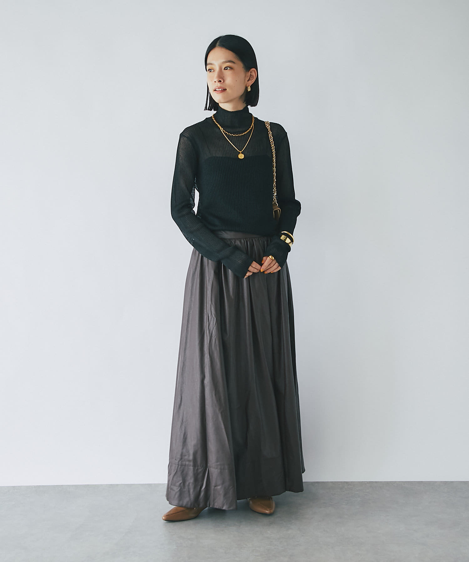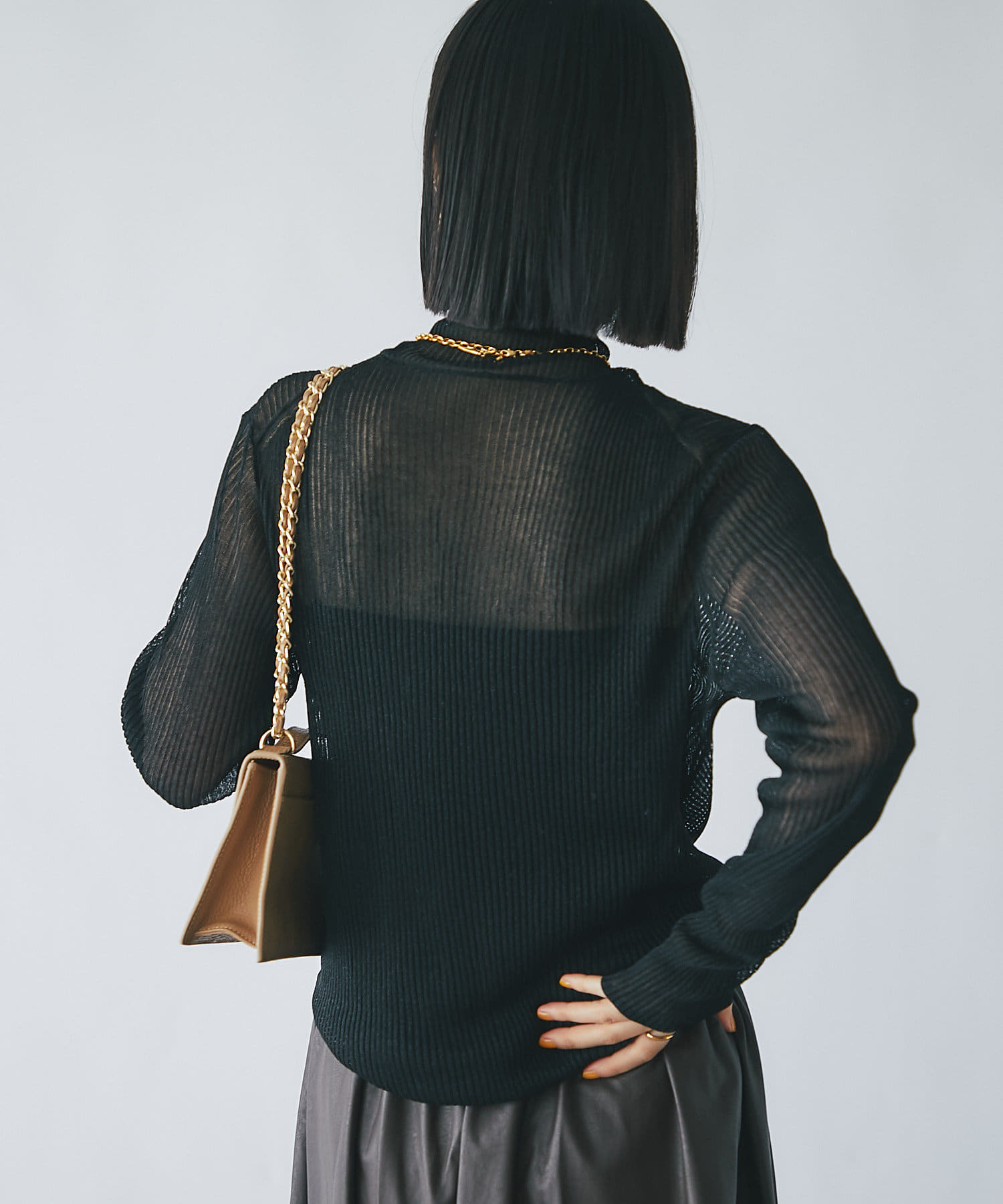 さらっとした素材感と程よいシアー感が今年らしいニット。