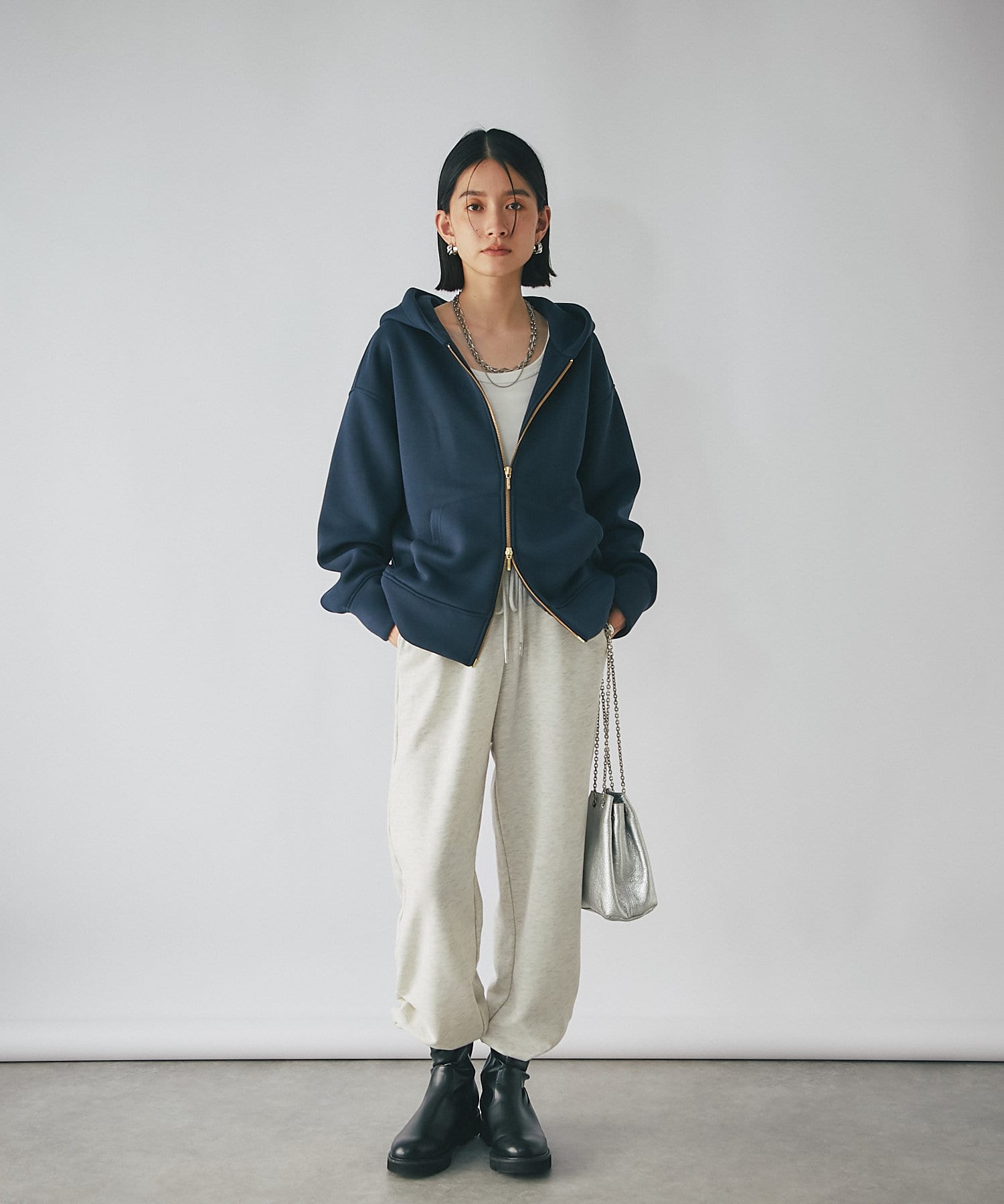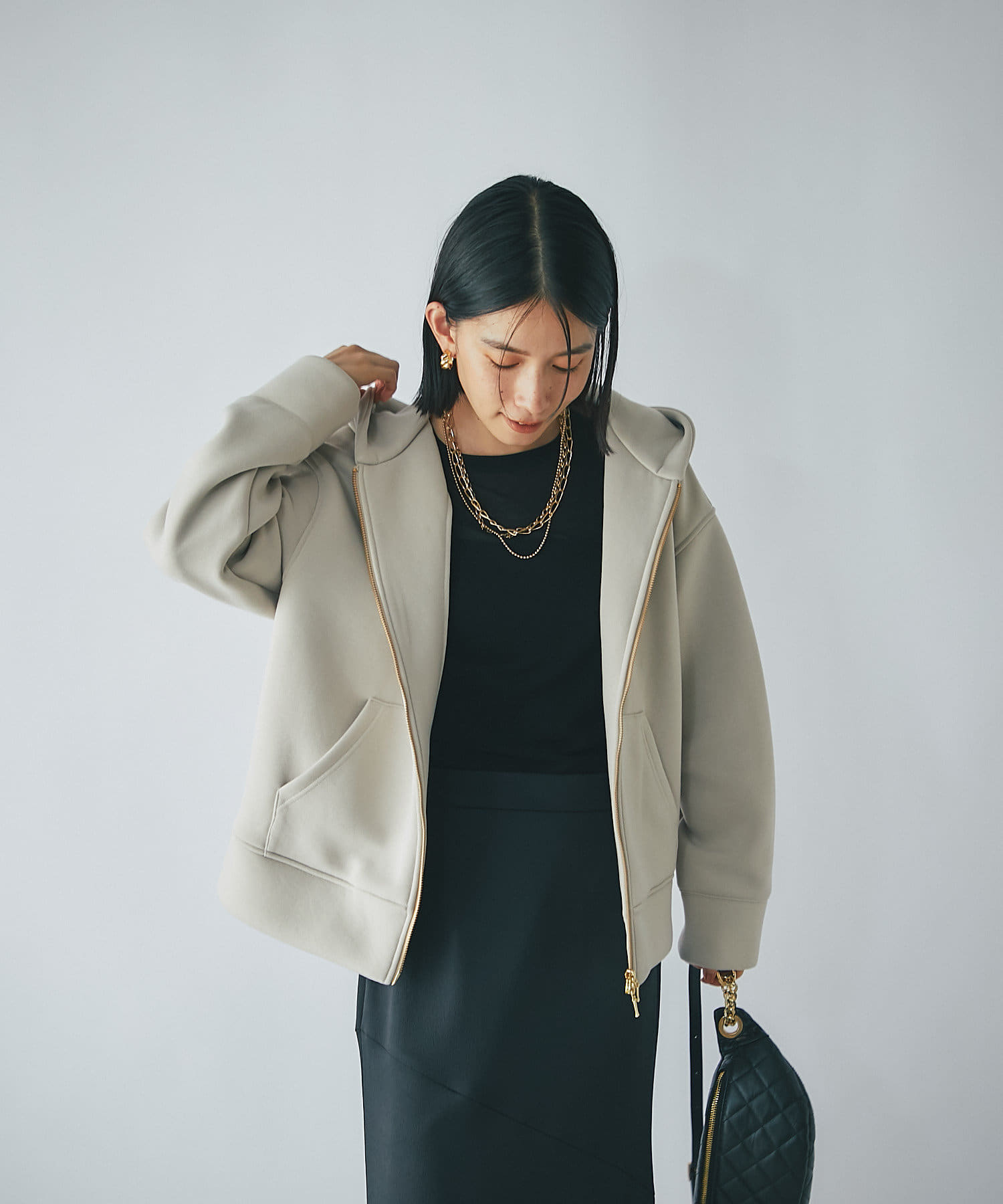 また、フロントのファスナーはダブルジップを採用。スタイリングに合わせてバランスを取りやすいデザイン◎