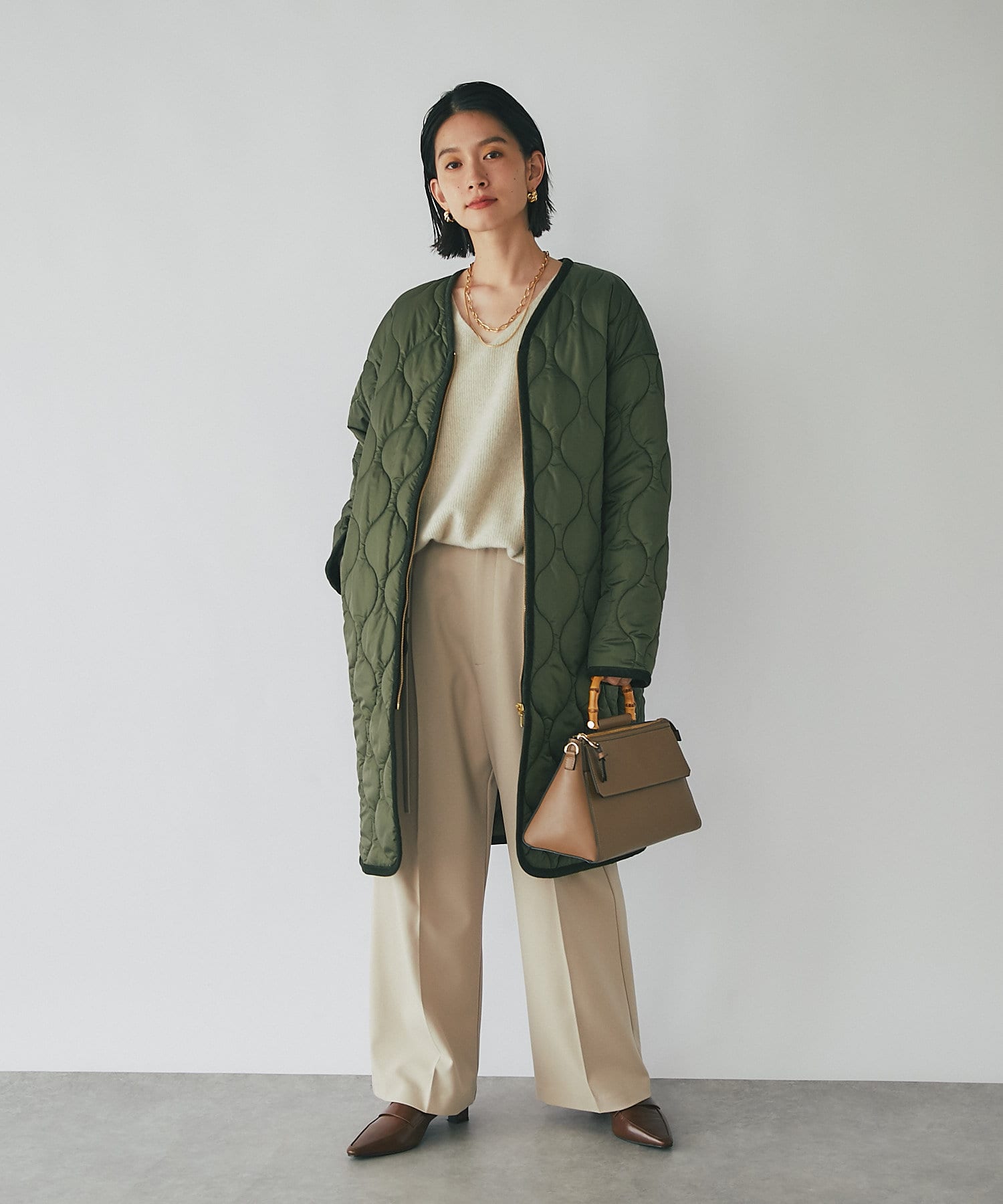バンブー素材の持ち手がスタイリングのアクセントになるバッグ。
