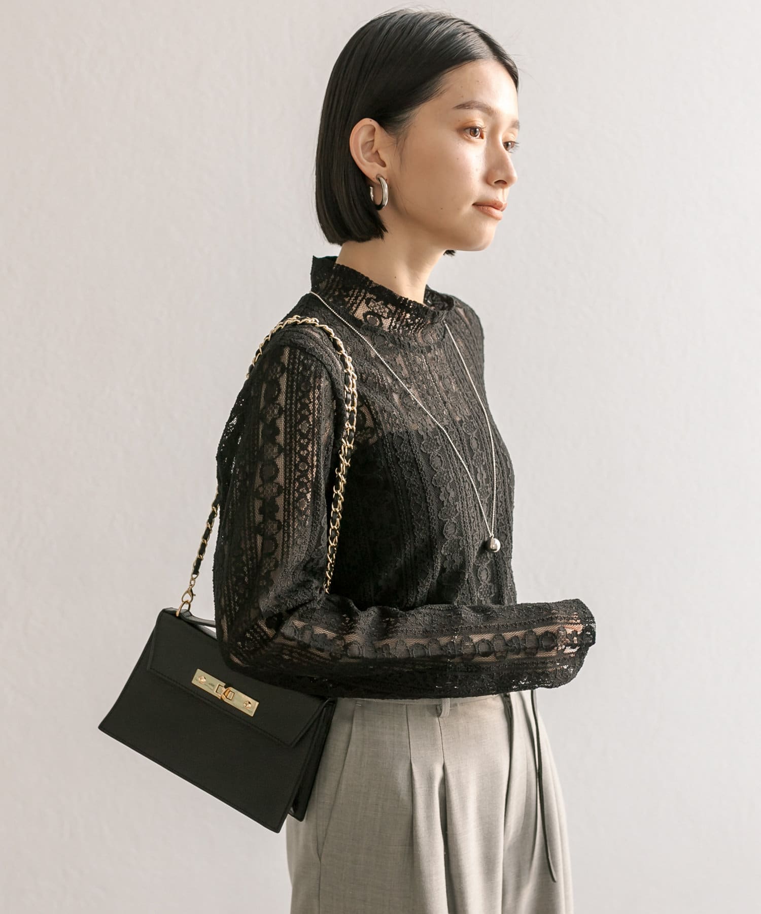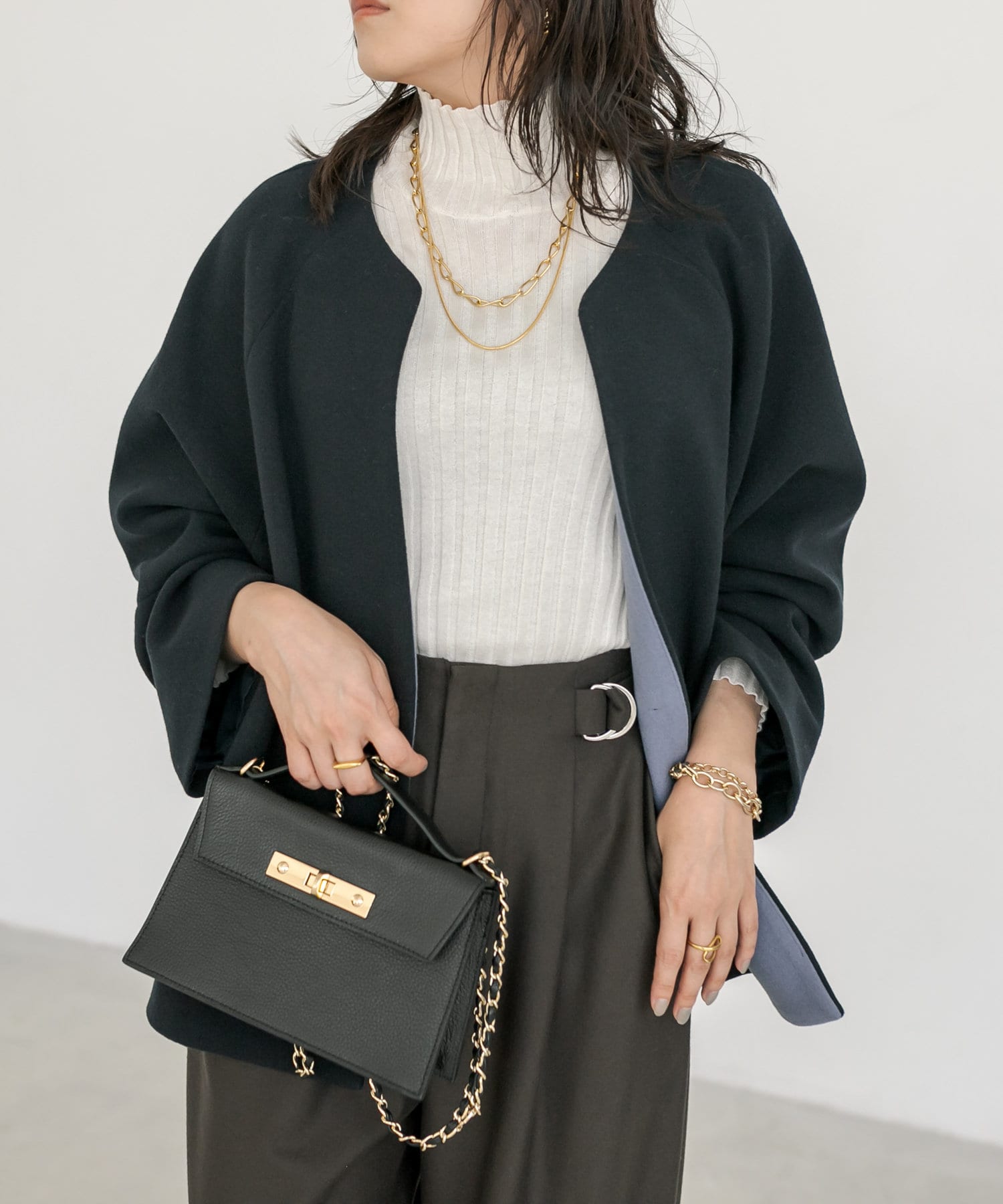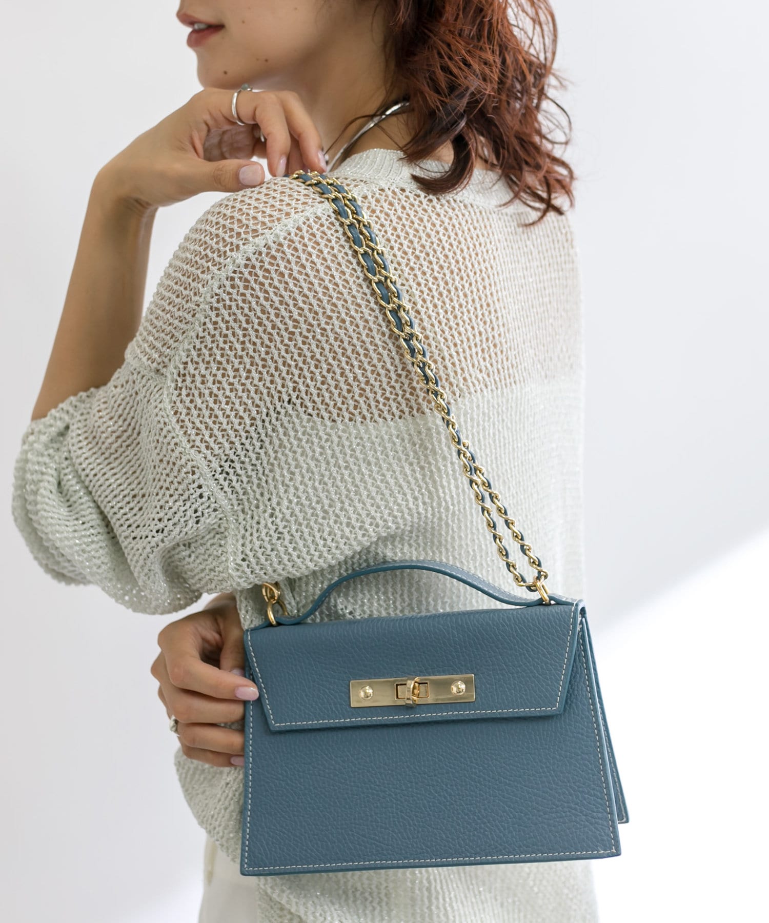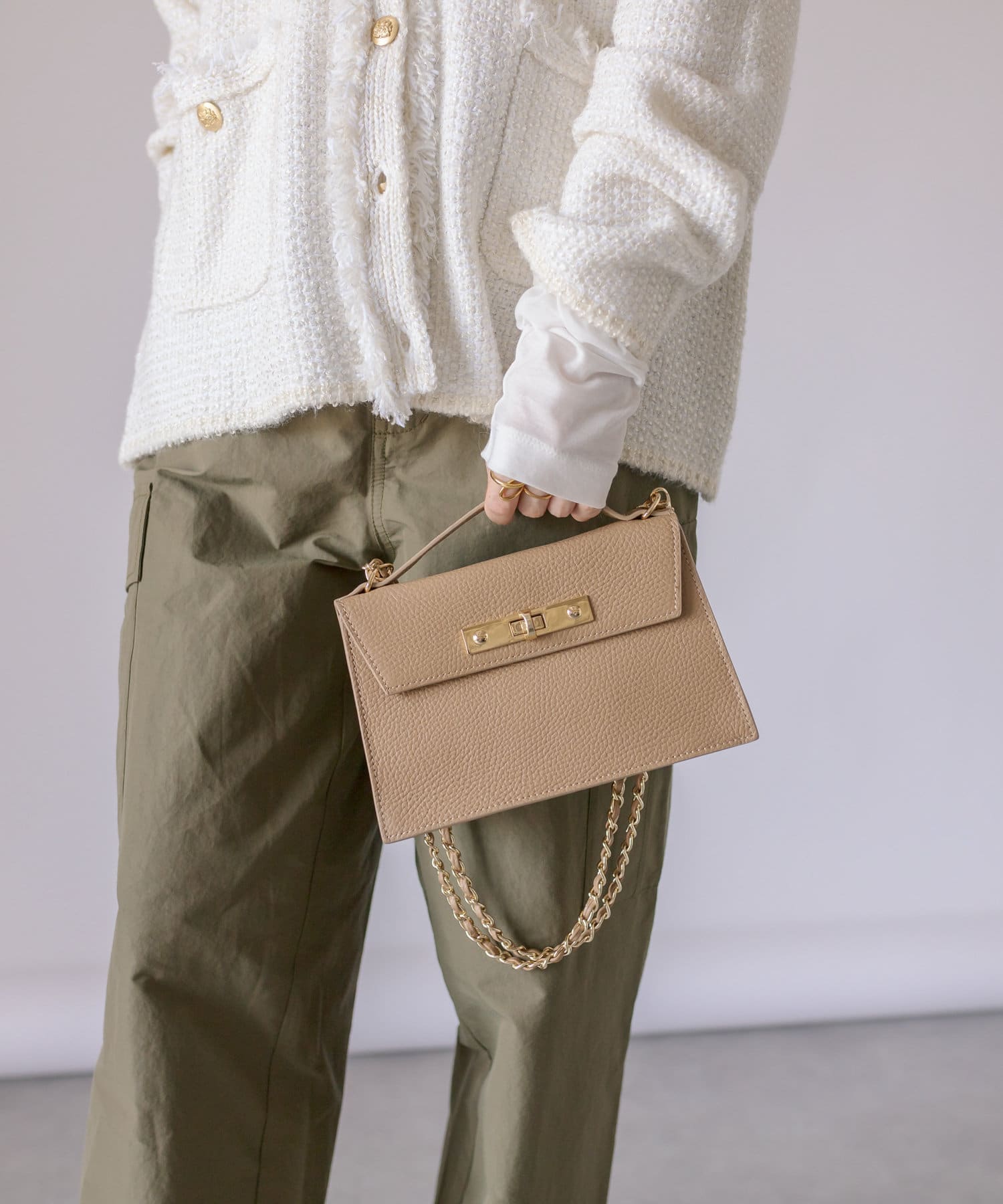 付属のチェーンショルダーをつなげていただくと、肩掛け、ショルダーとしてもお持ち頂けます。