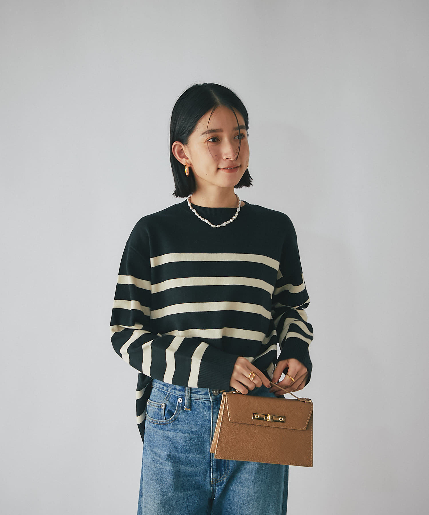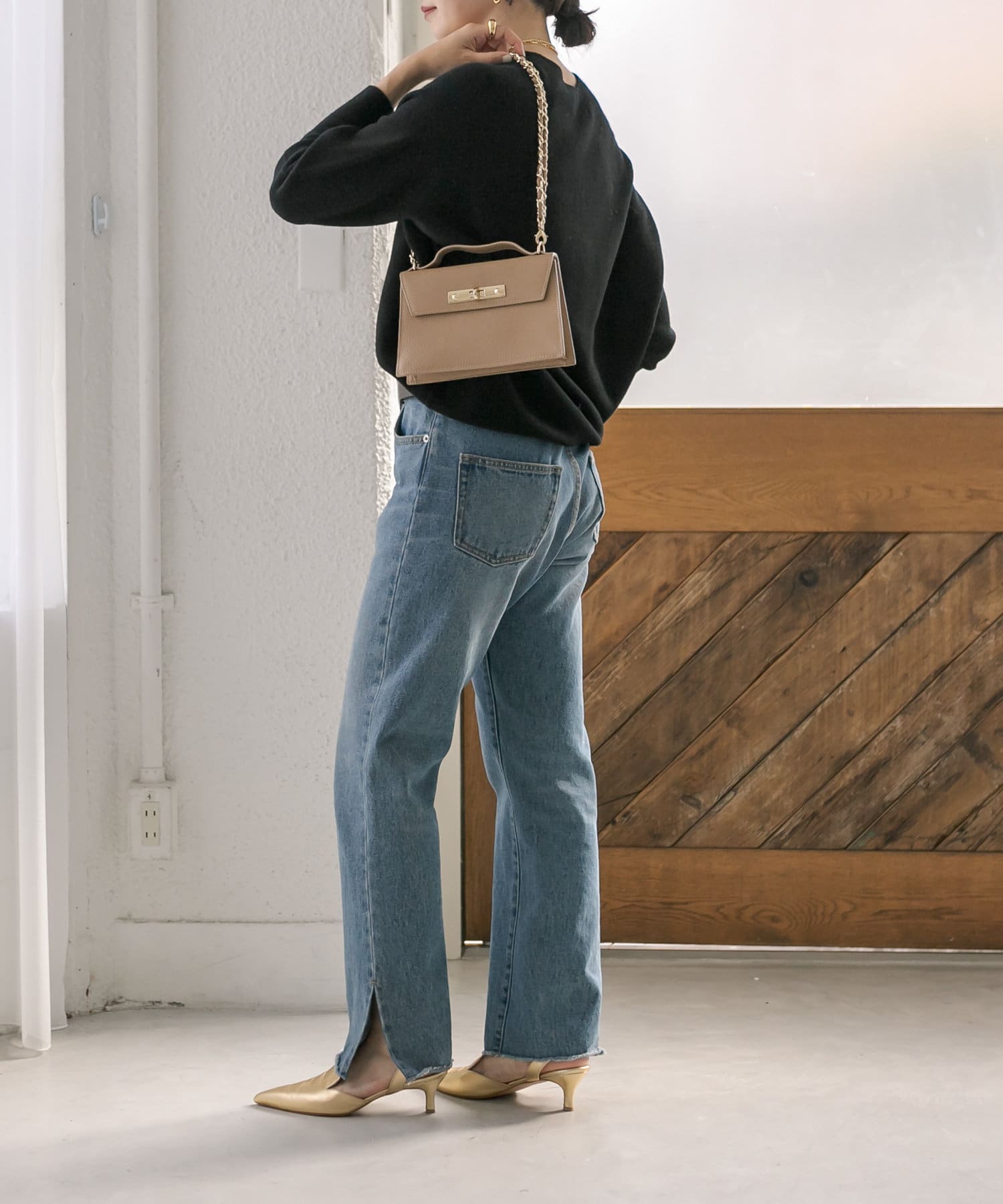 かっちりとしたシンプルなスクエア型のデザインで、キレイめスタイルからカジュアルなスタイリングにも合わせやすいアイテムです。