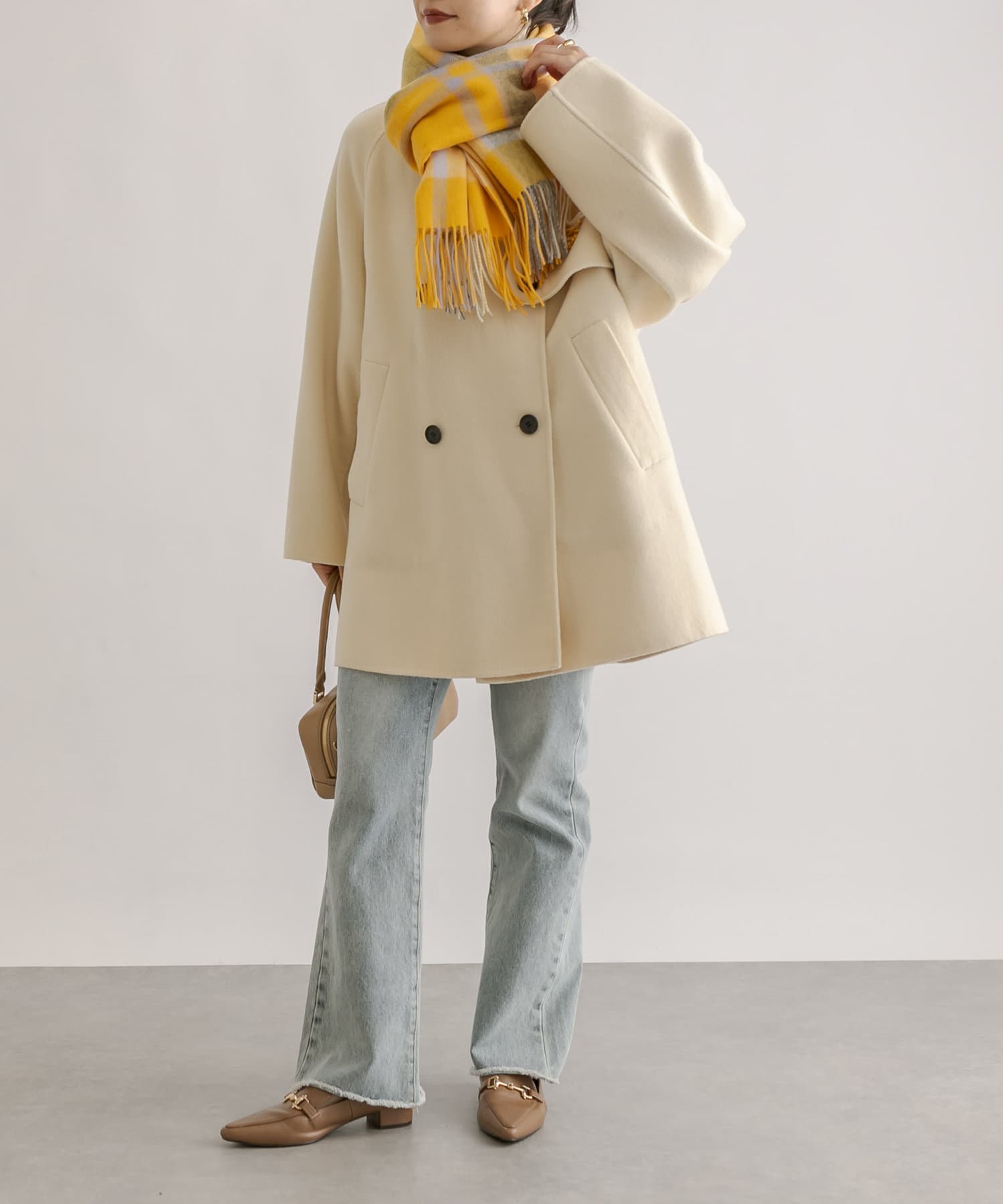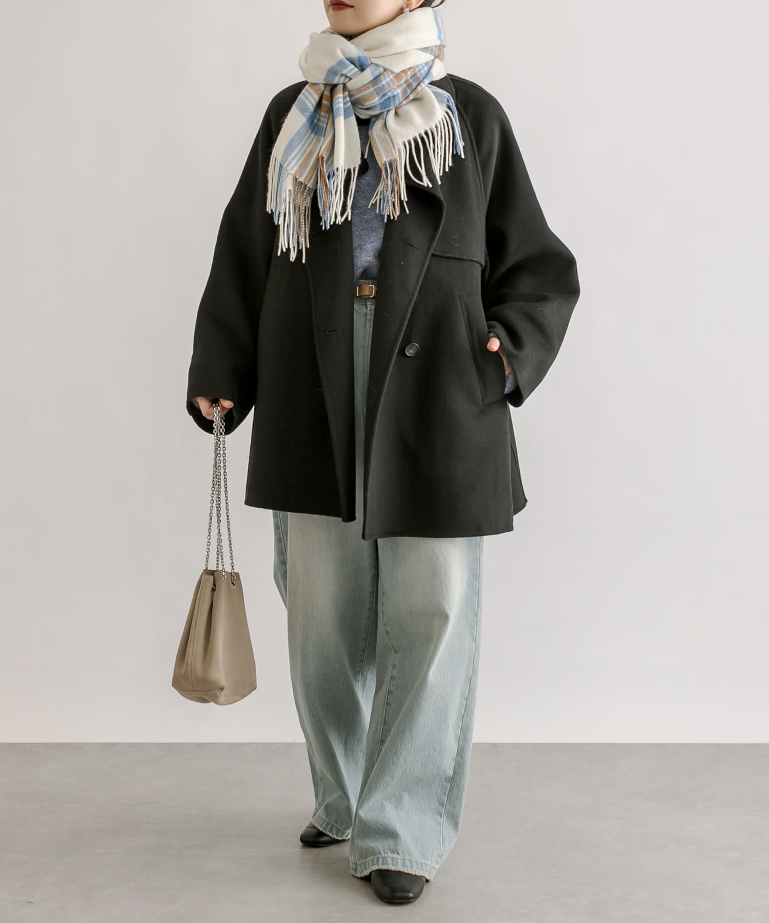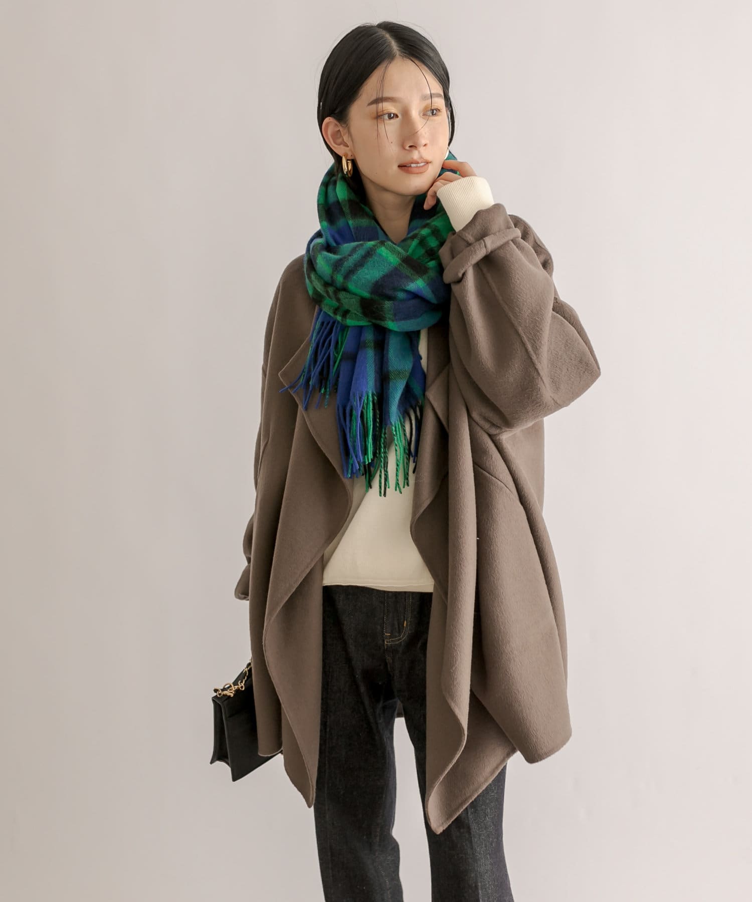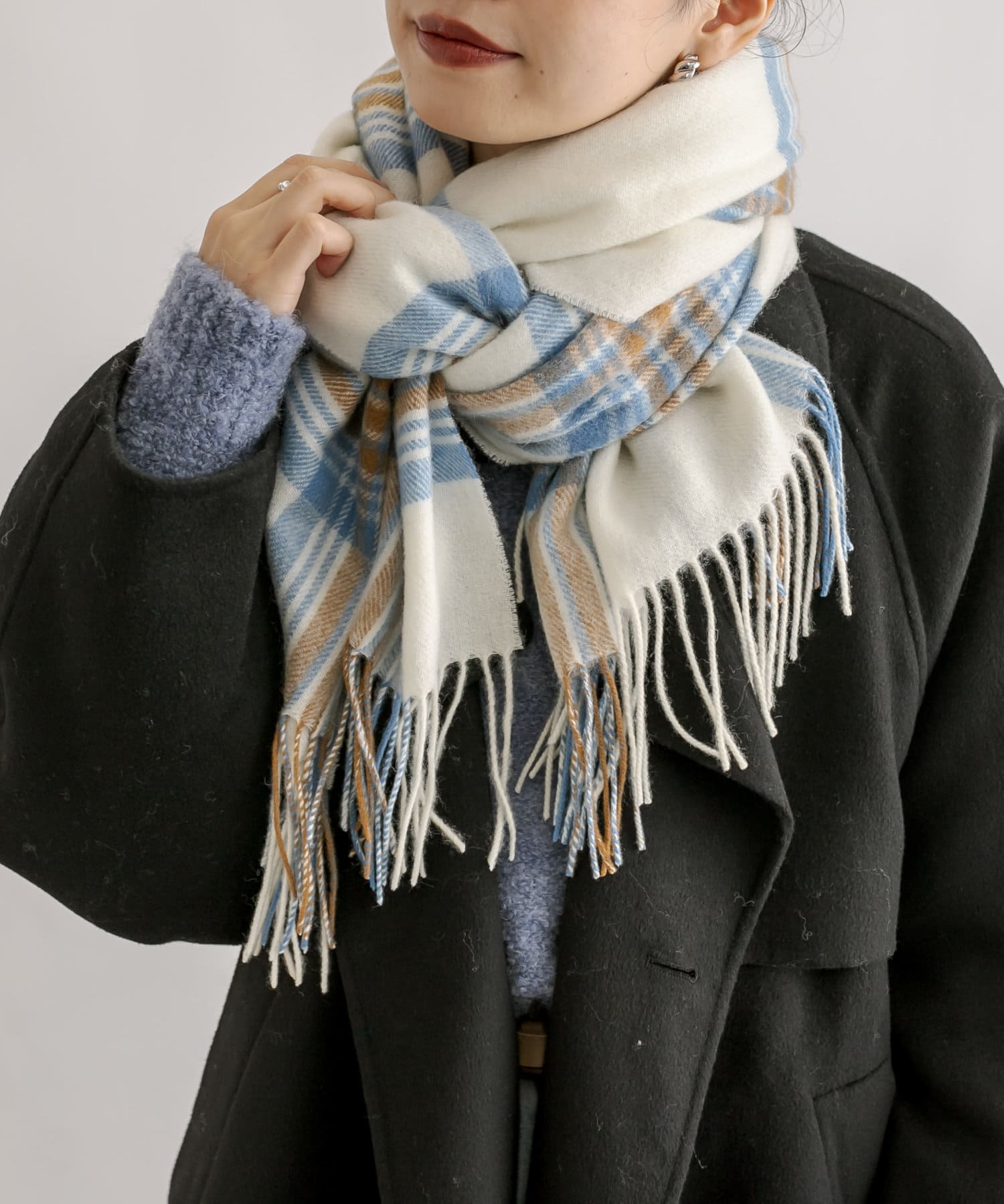コーディネートのポイントになるチェック柄は顔映りも良く、お顔回りを華やかに演出してくれます。