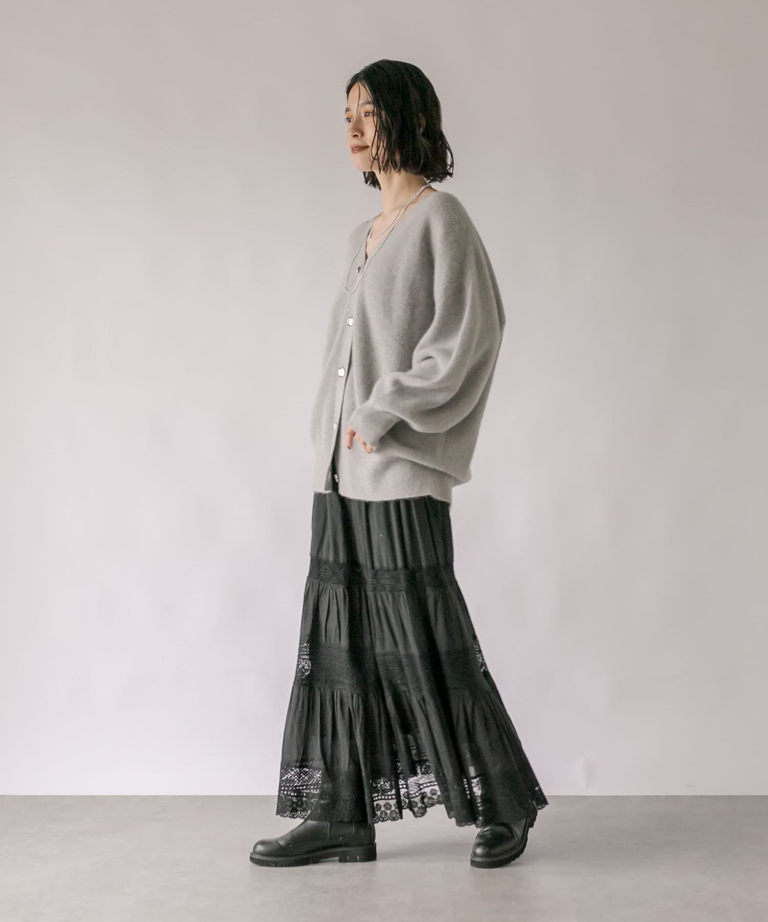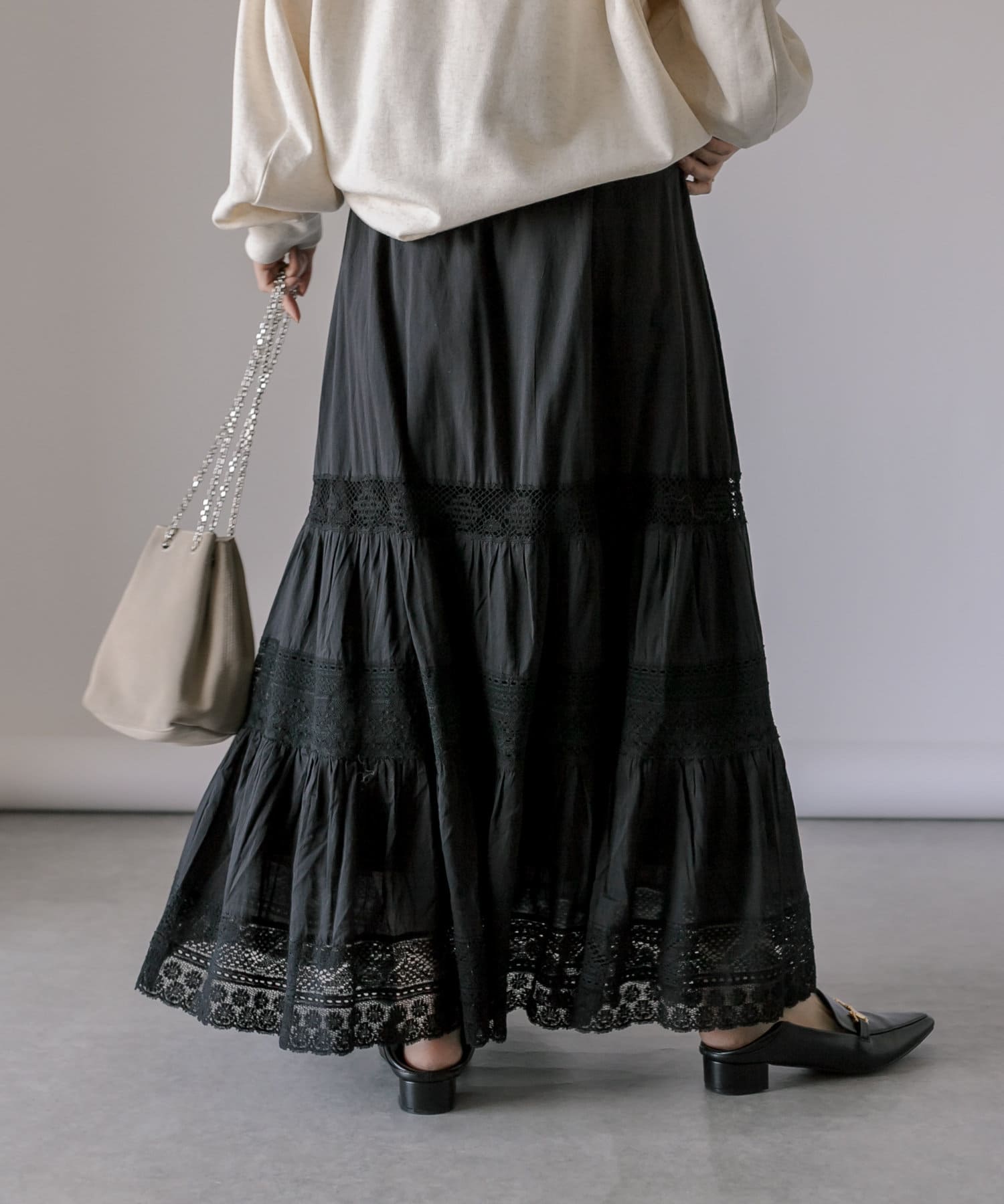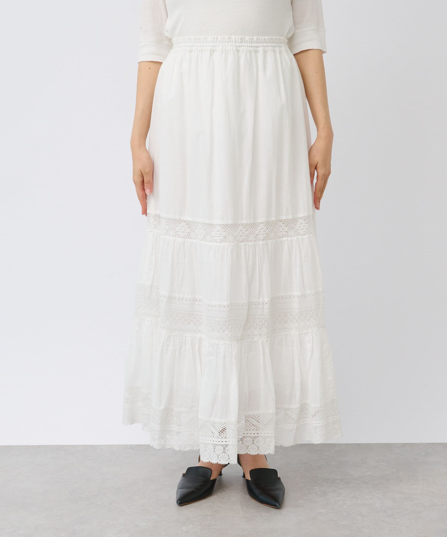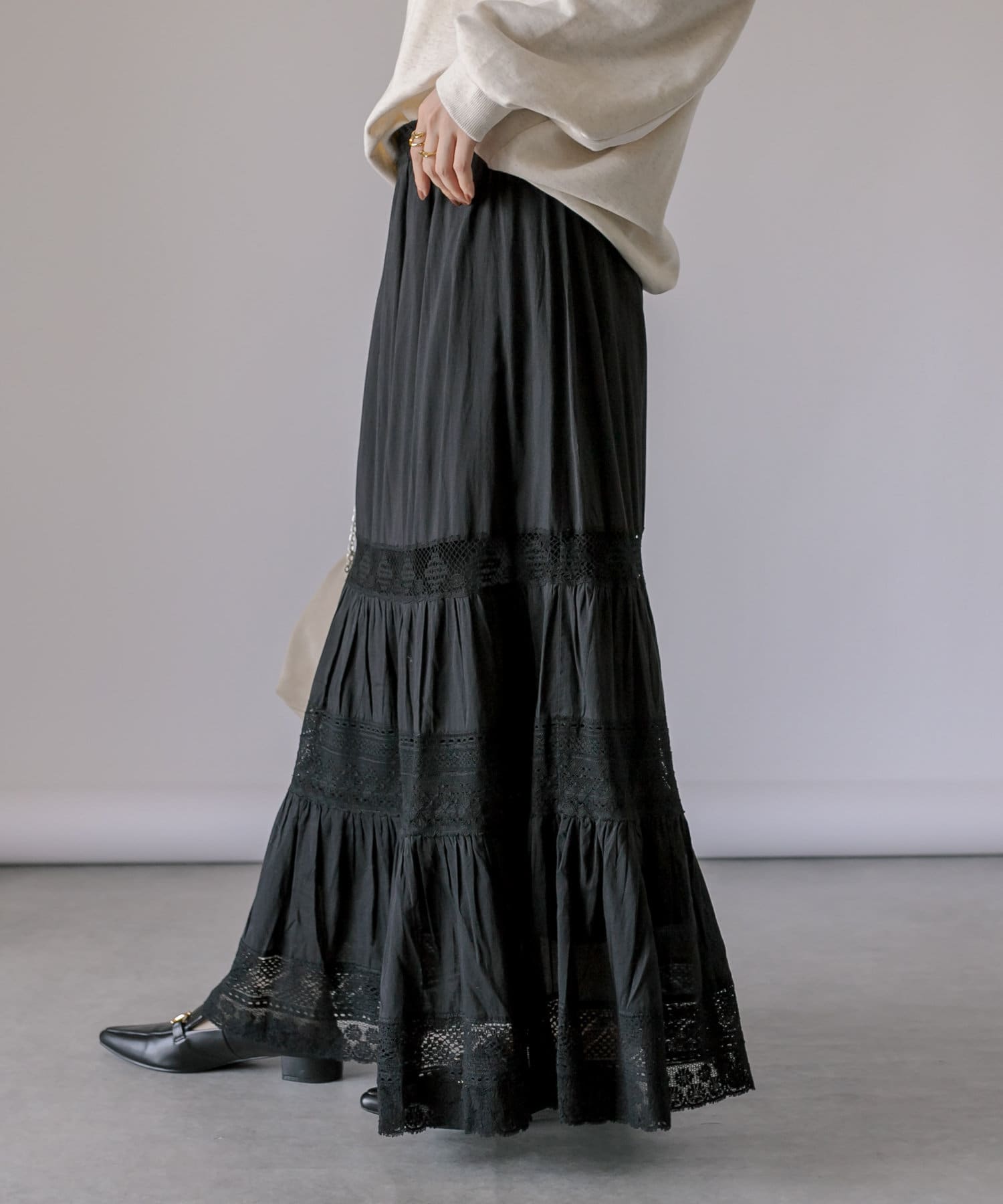 【手の込んだレースデザイン】リバーレースティアードスカート