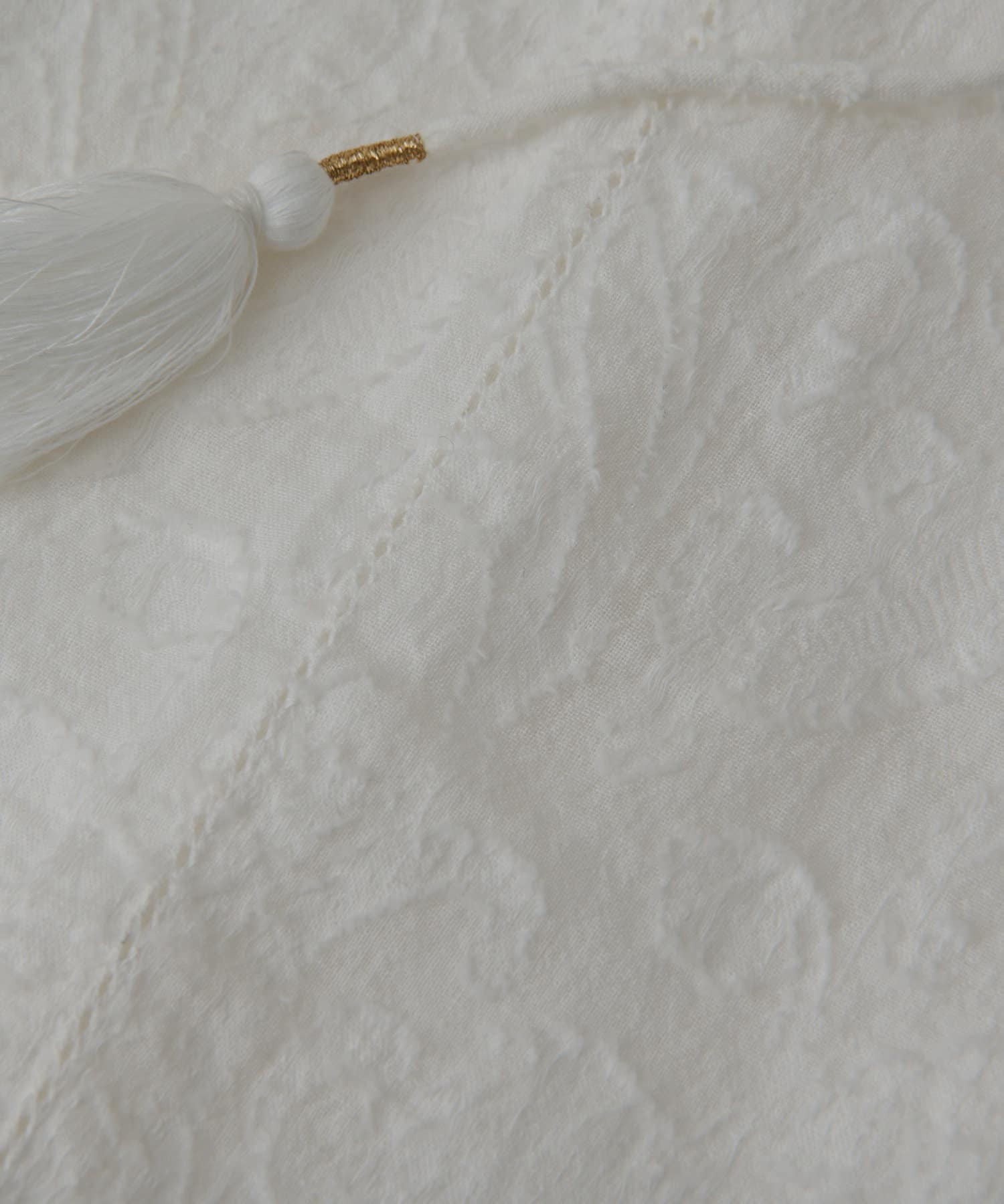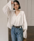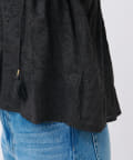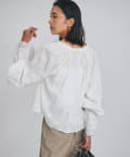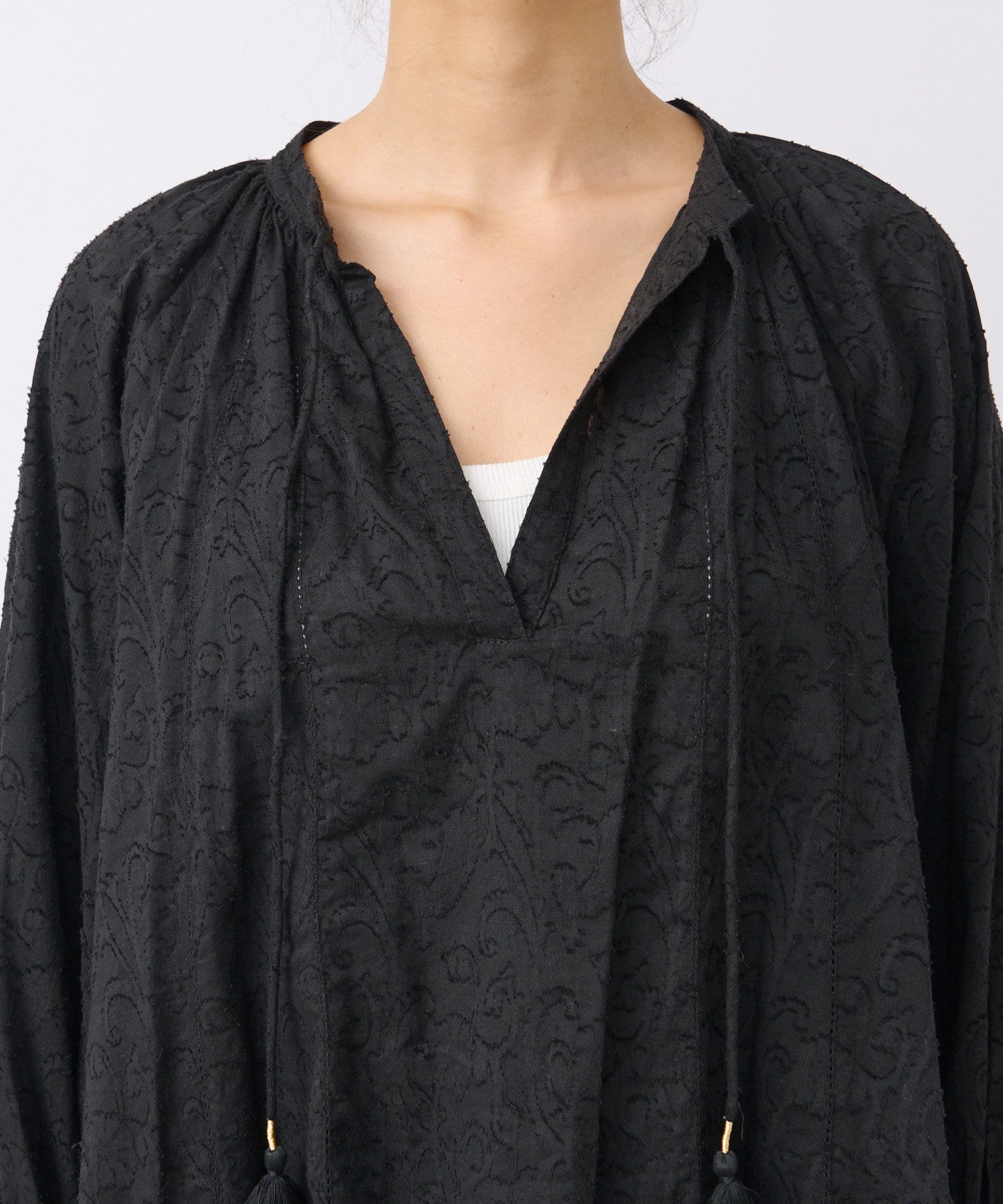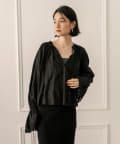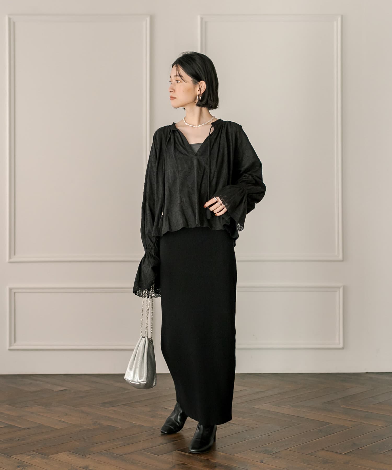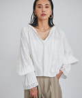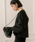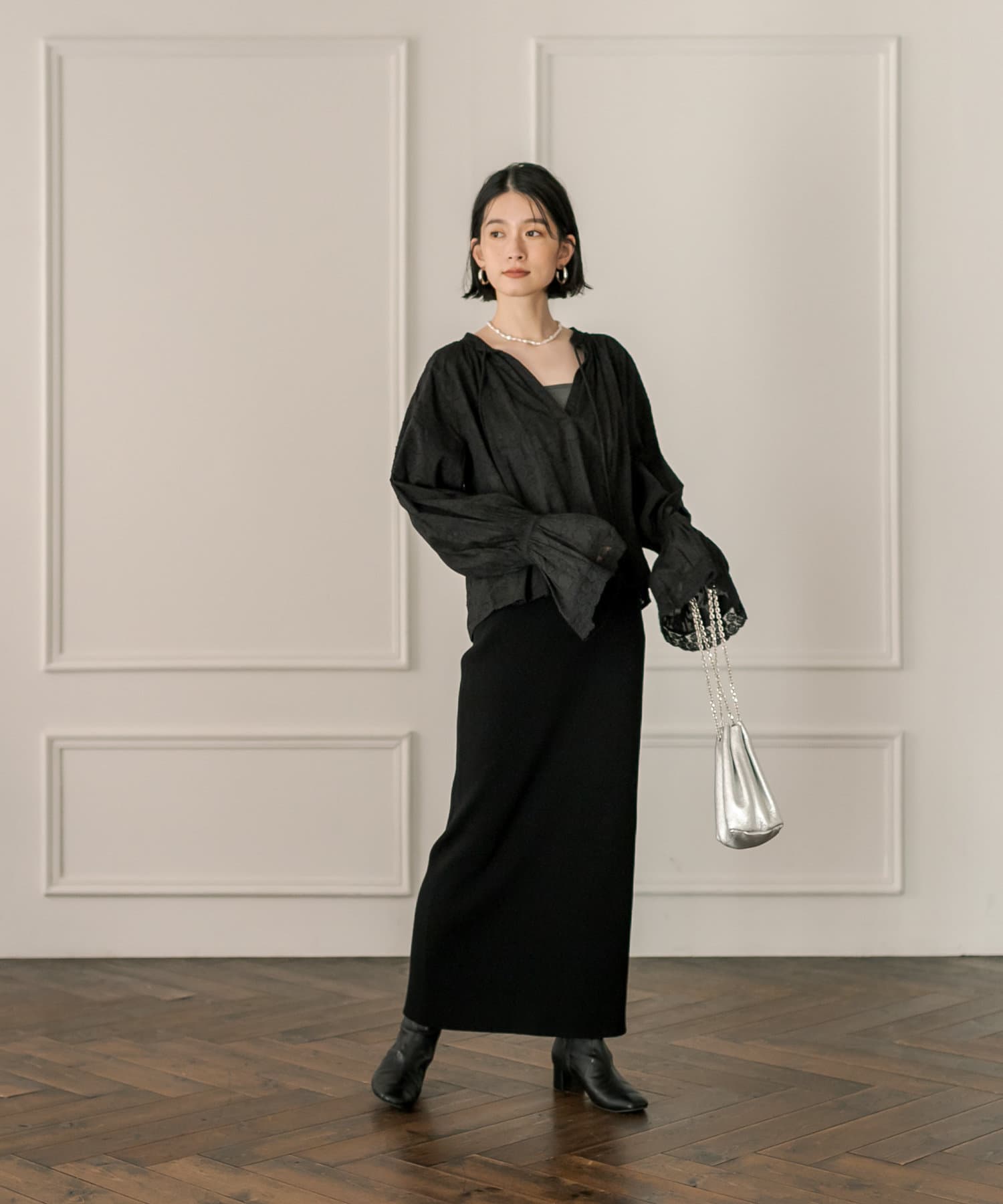 柔らかいジャガード生地と、袖のデザインが華やかなブラウス。