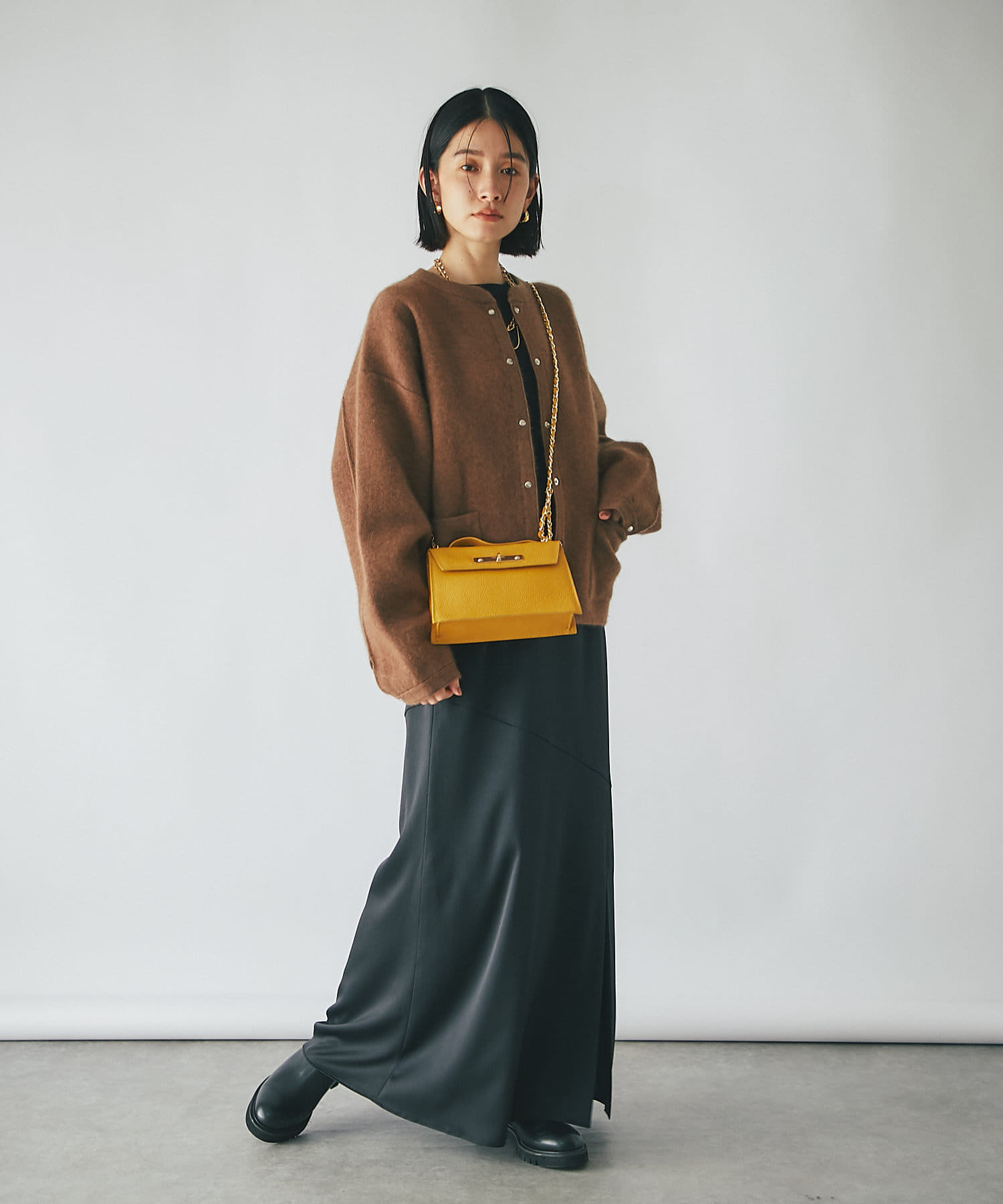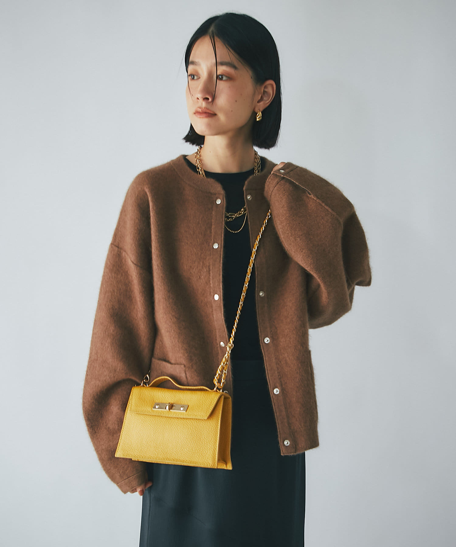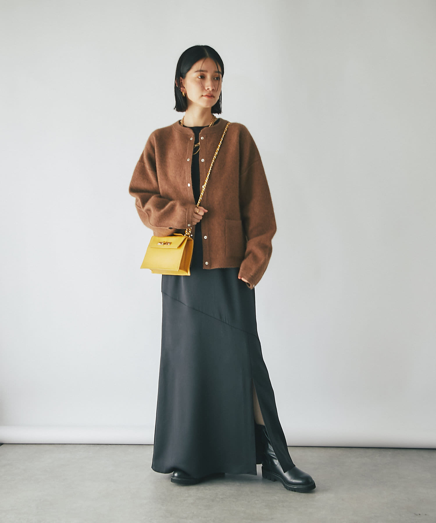 インナーの形も問わないデザインですので、秋にはカットソーを、冬にはタートルネックセーターをと、万能にお使いいただけるアイテムです。