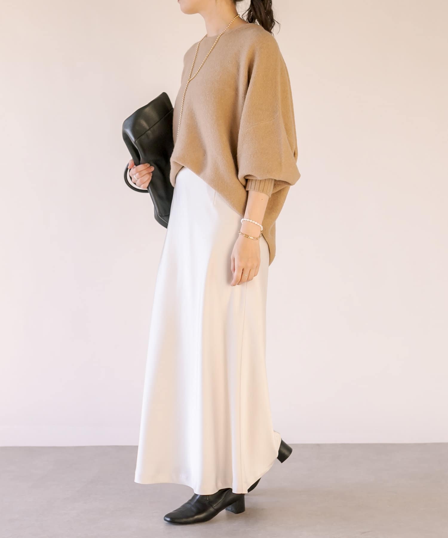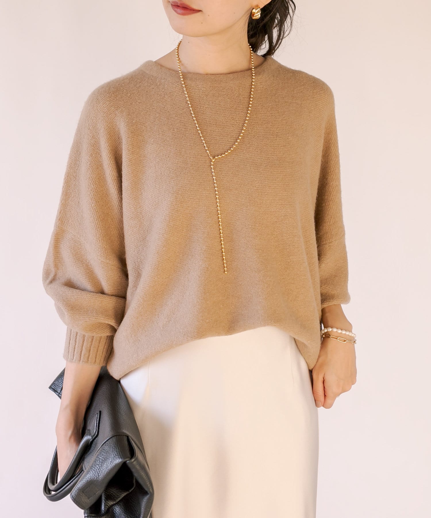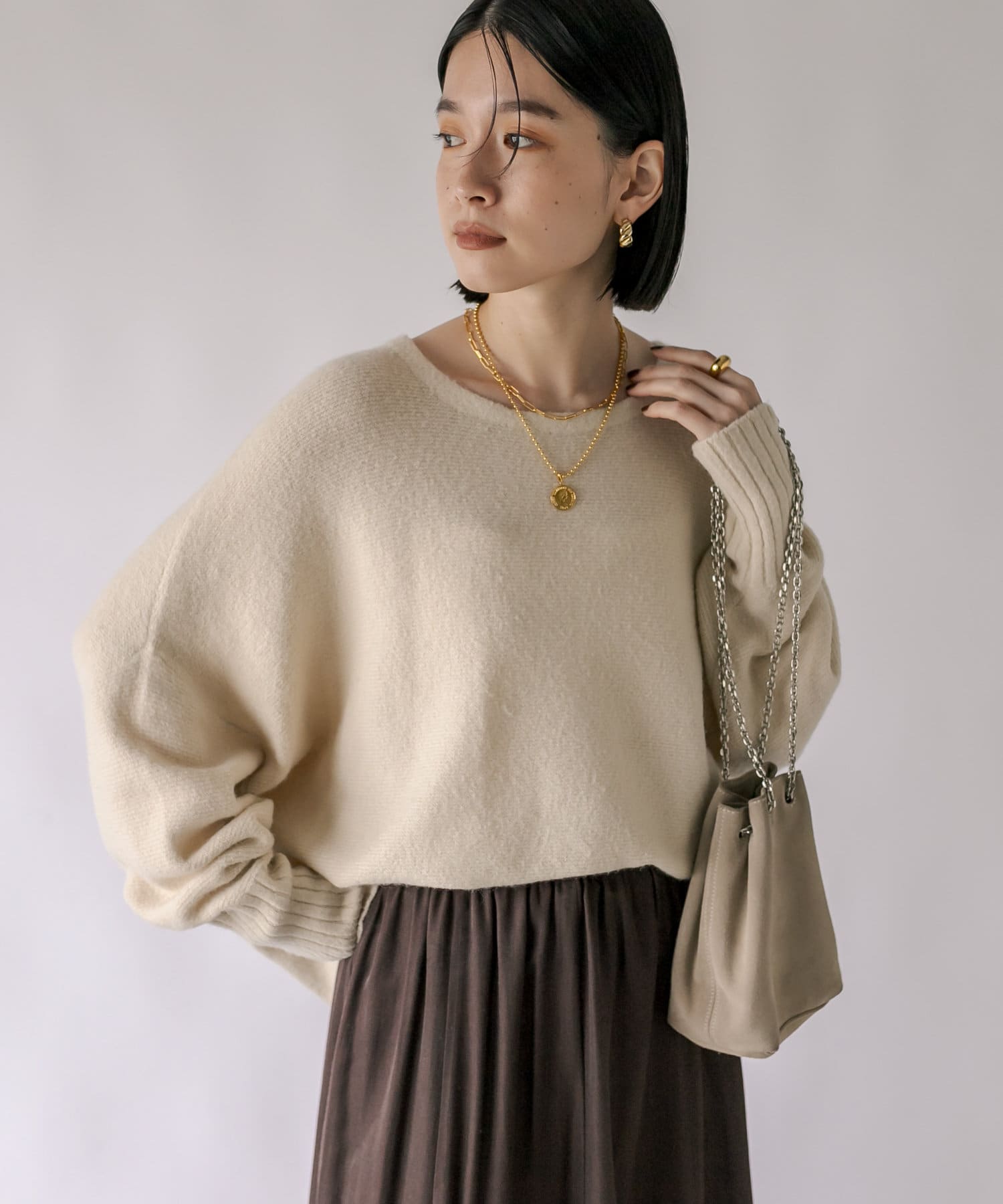 ・レイヤードしやすいゆとりと、程よいサイズ感が女性らしいシルエット