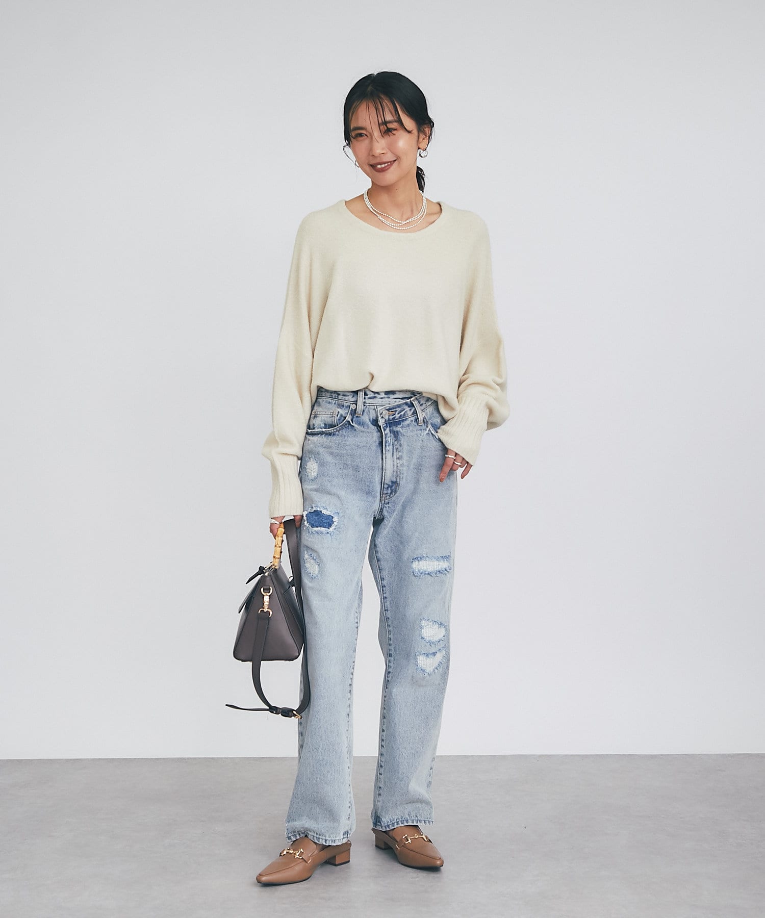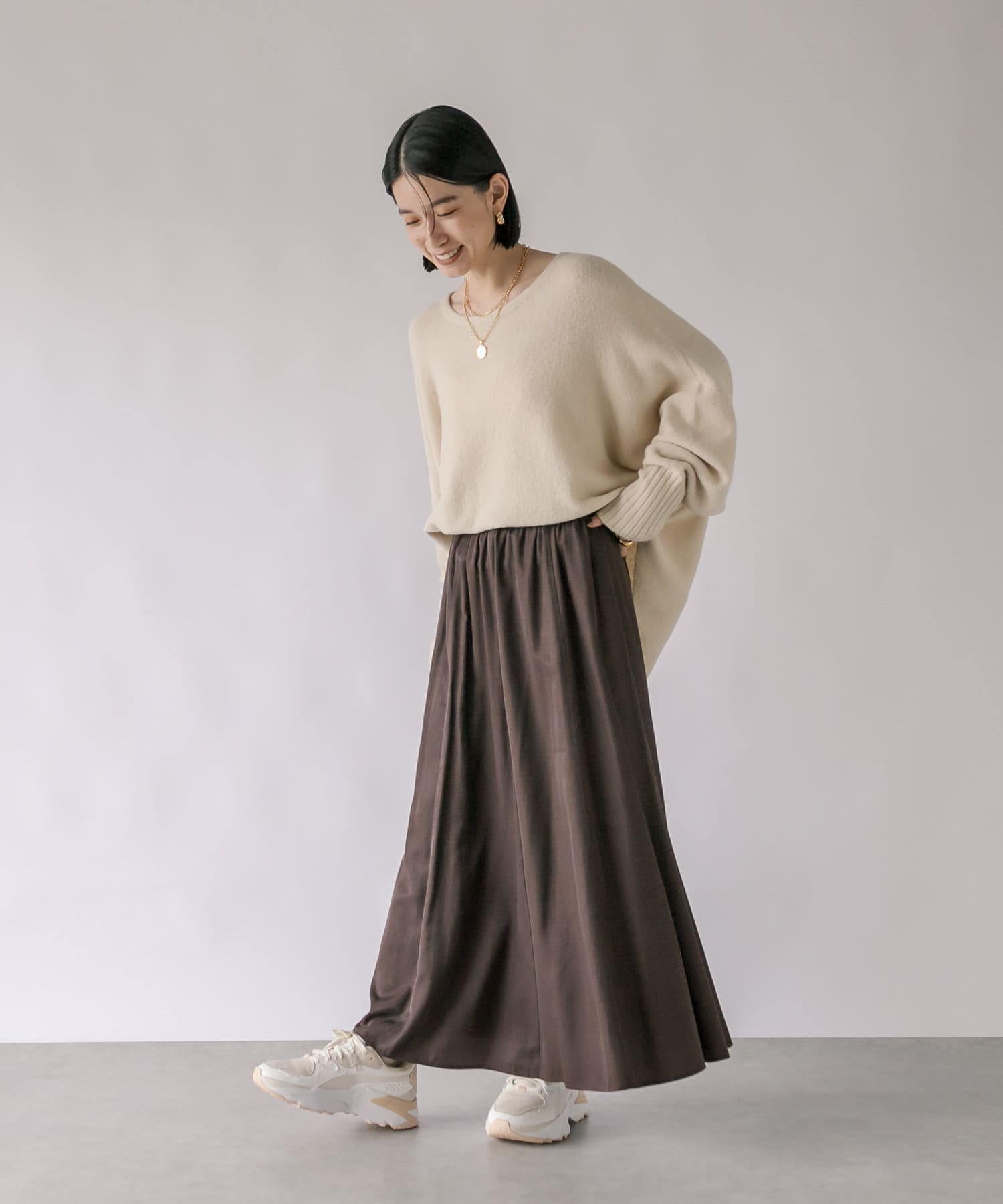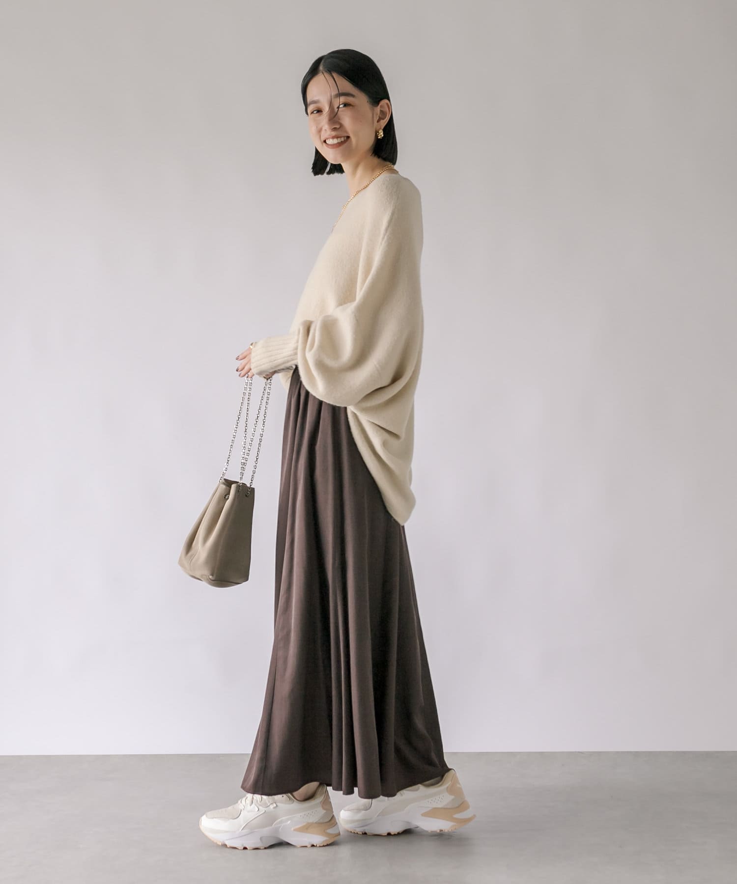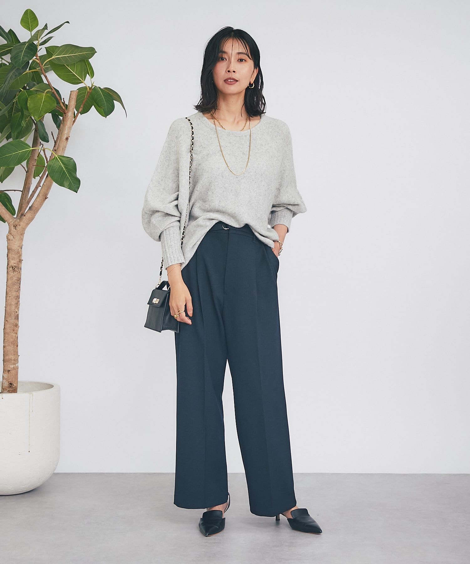 ・レイヤードしやすいゆとりと、程よいサイズ感が女性らしいシルエット