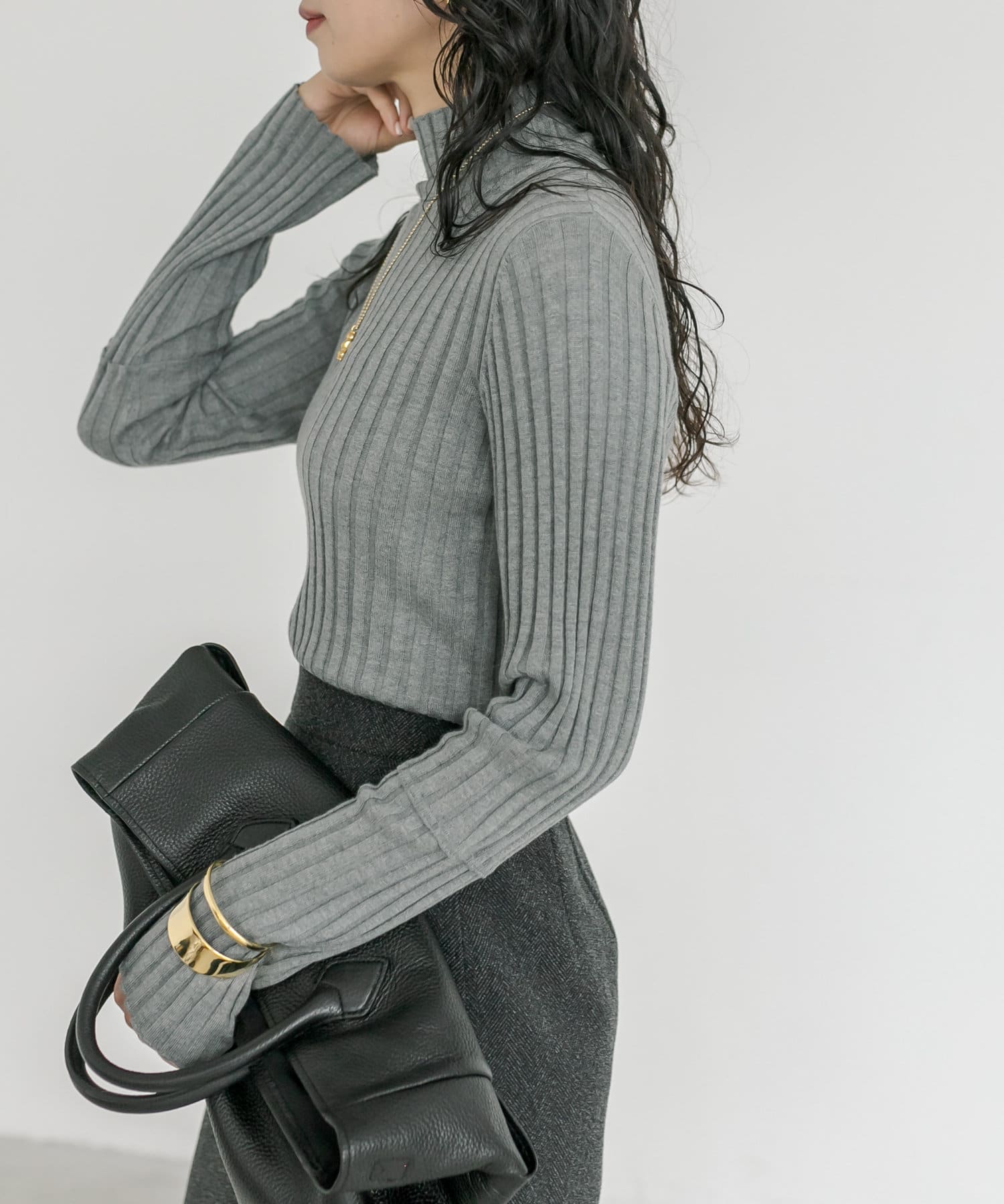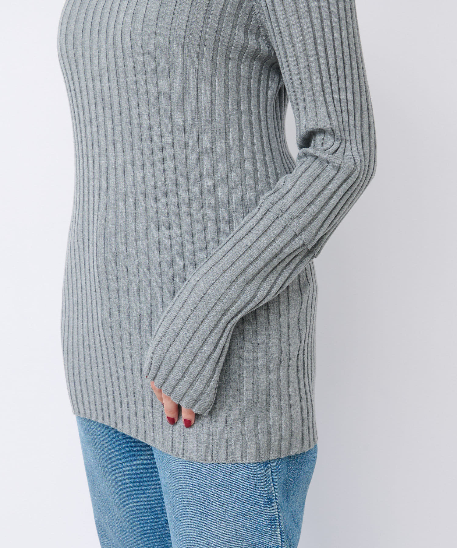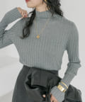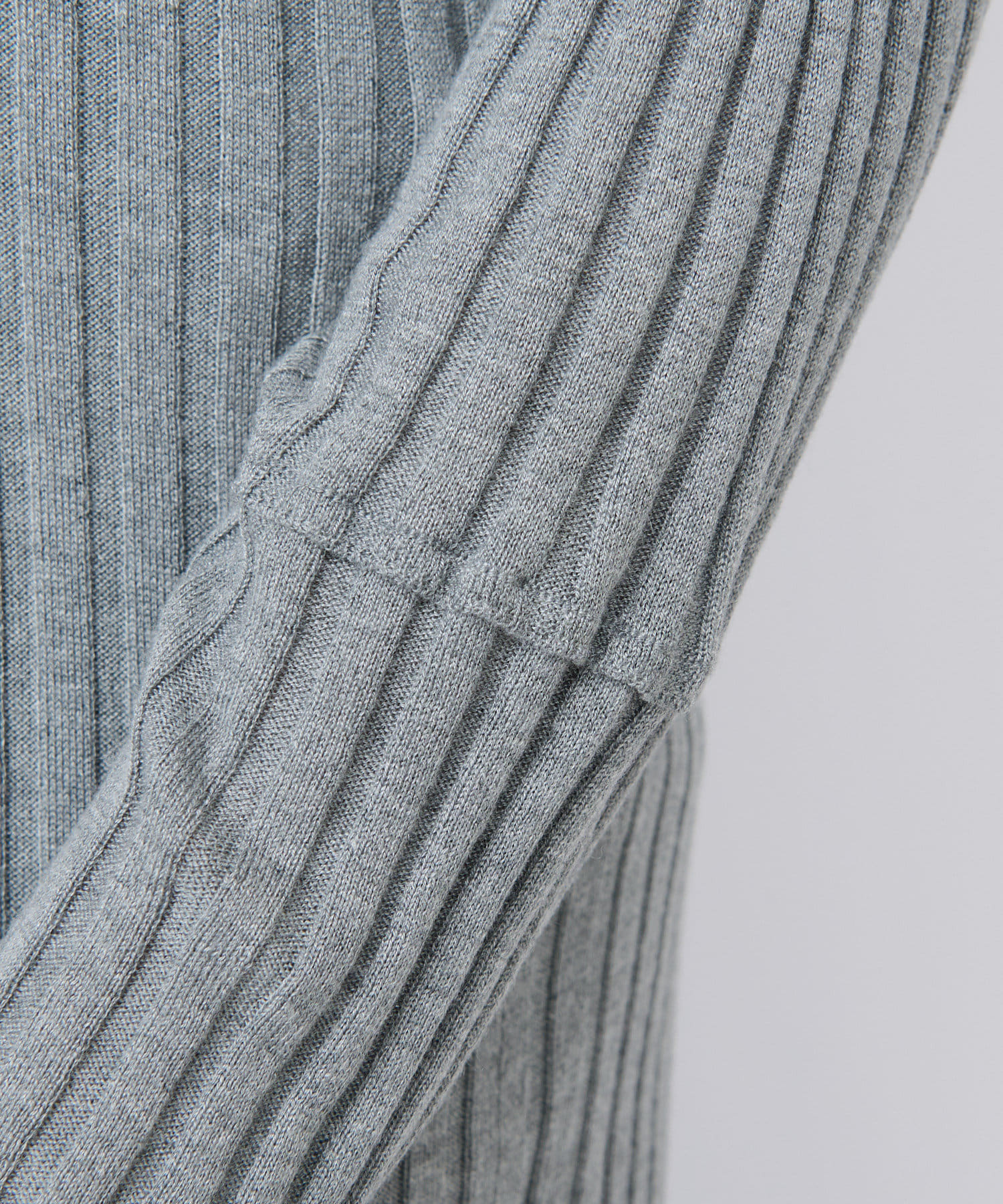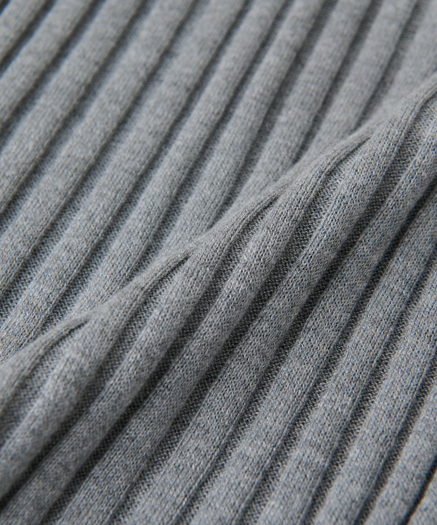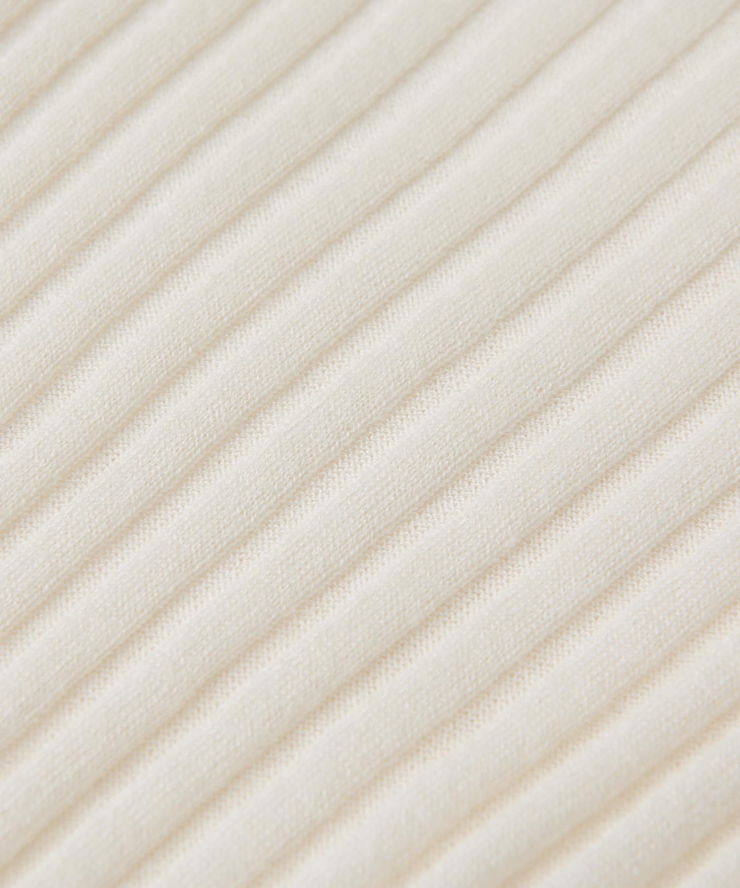 カシミヤの適度な暖かみとシルクのやわらかな肌当たりを生かした上質なリブニット