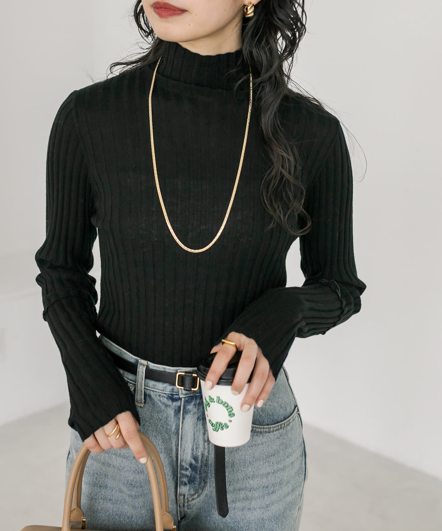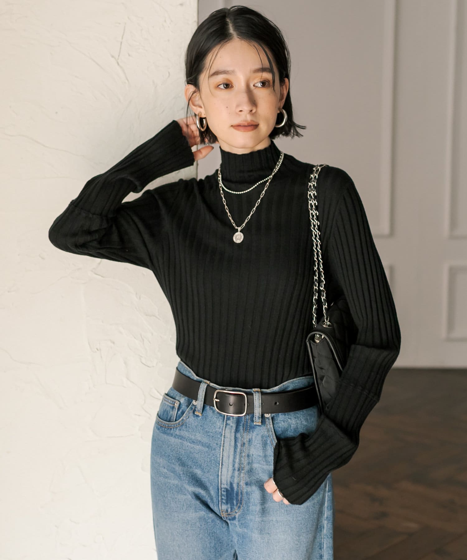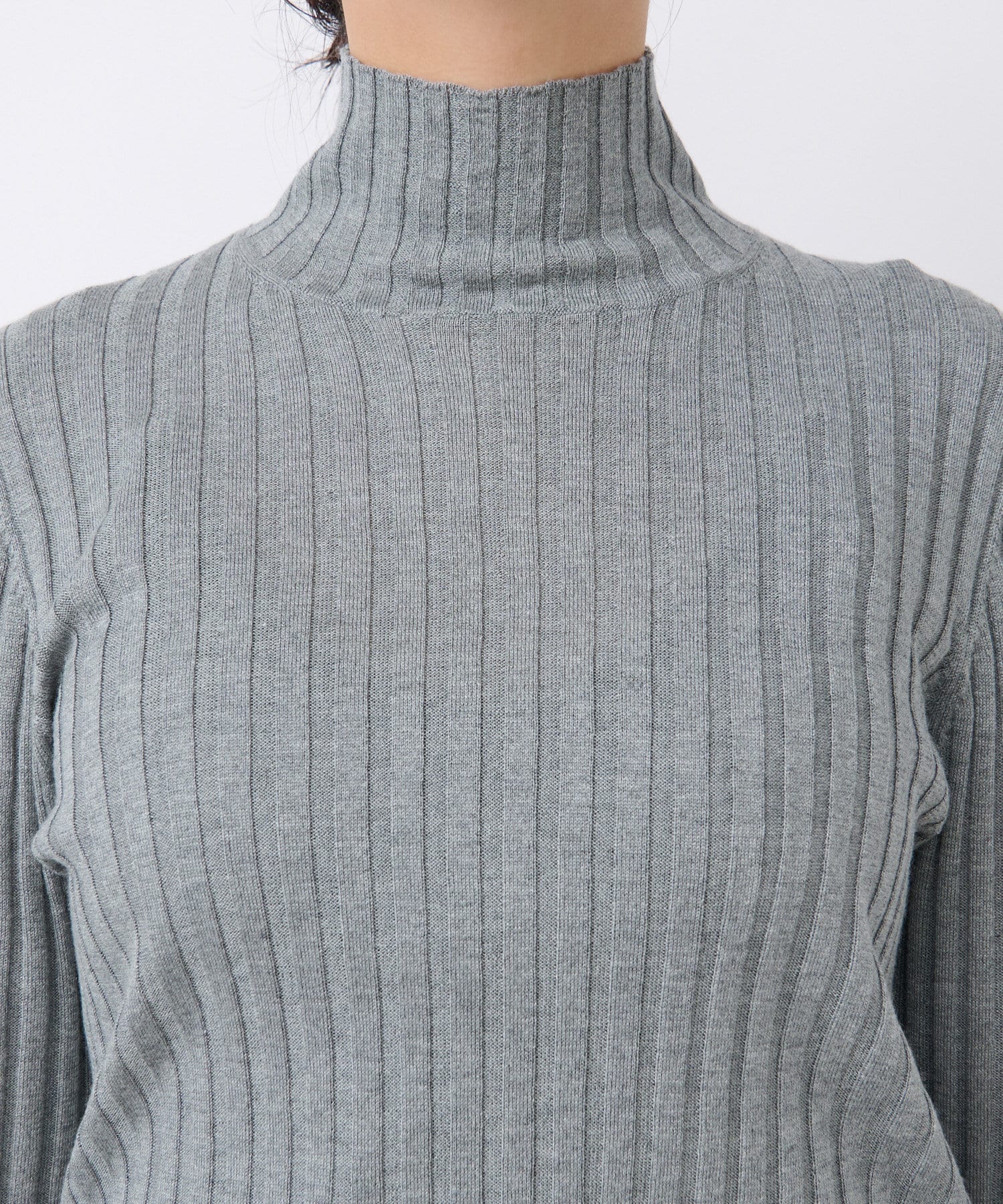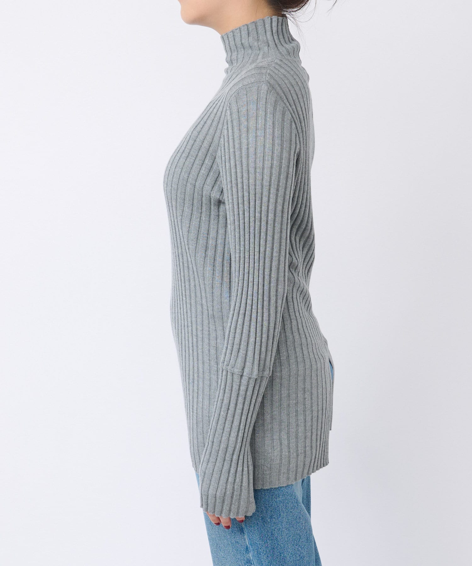 カシミヤの適度な暖かみとシルクのやわらかな肌当たりを生かした上質なリブニット