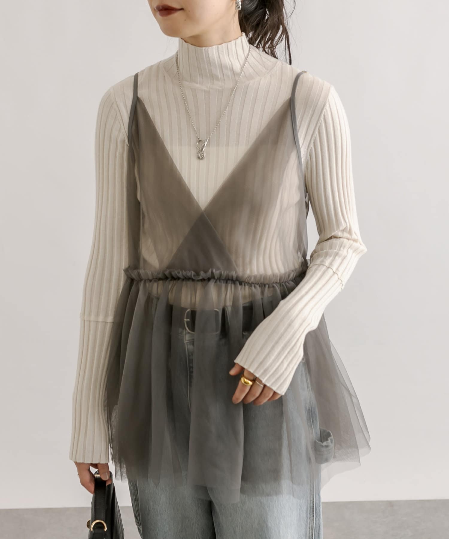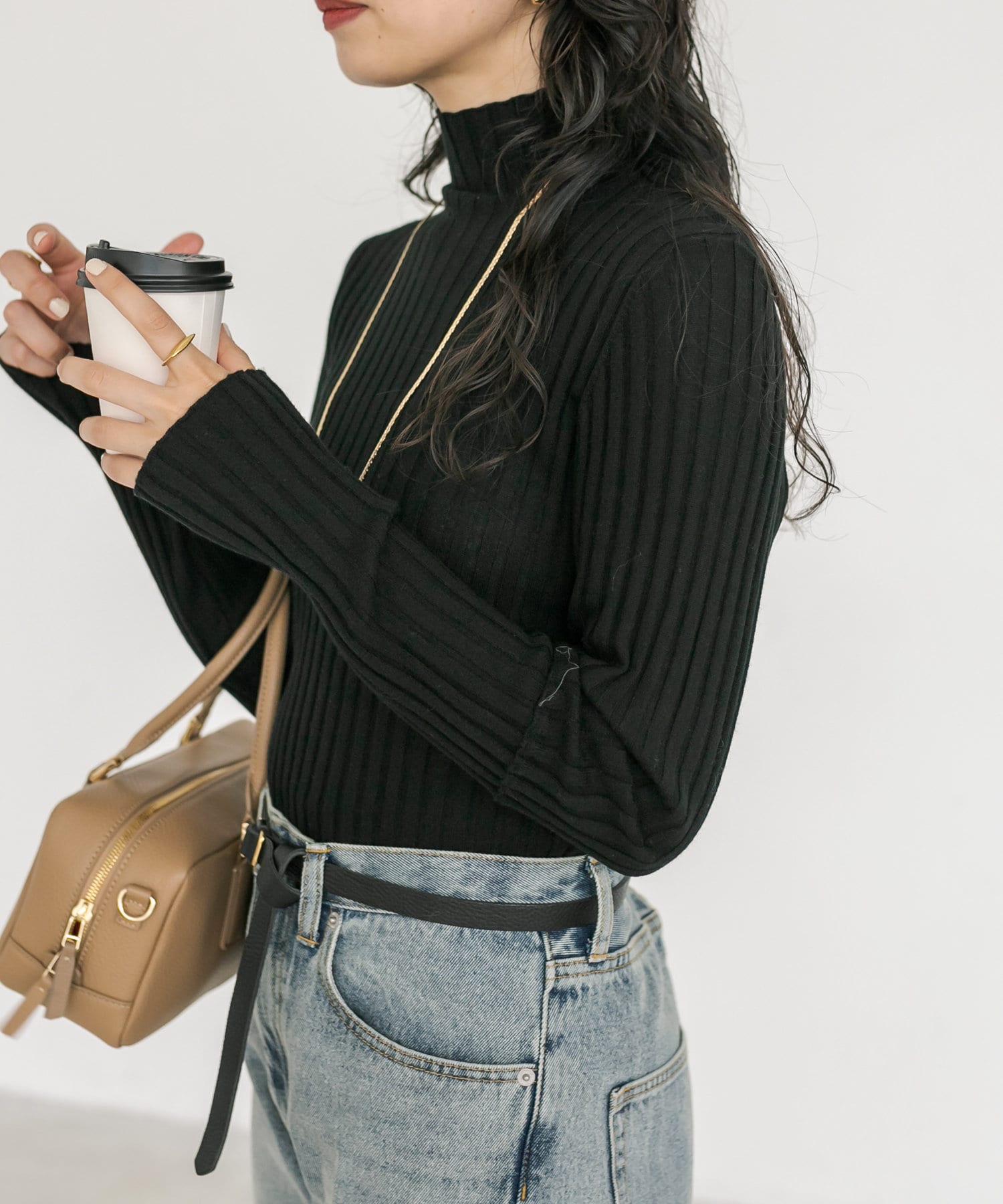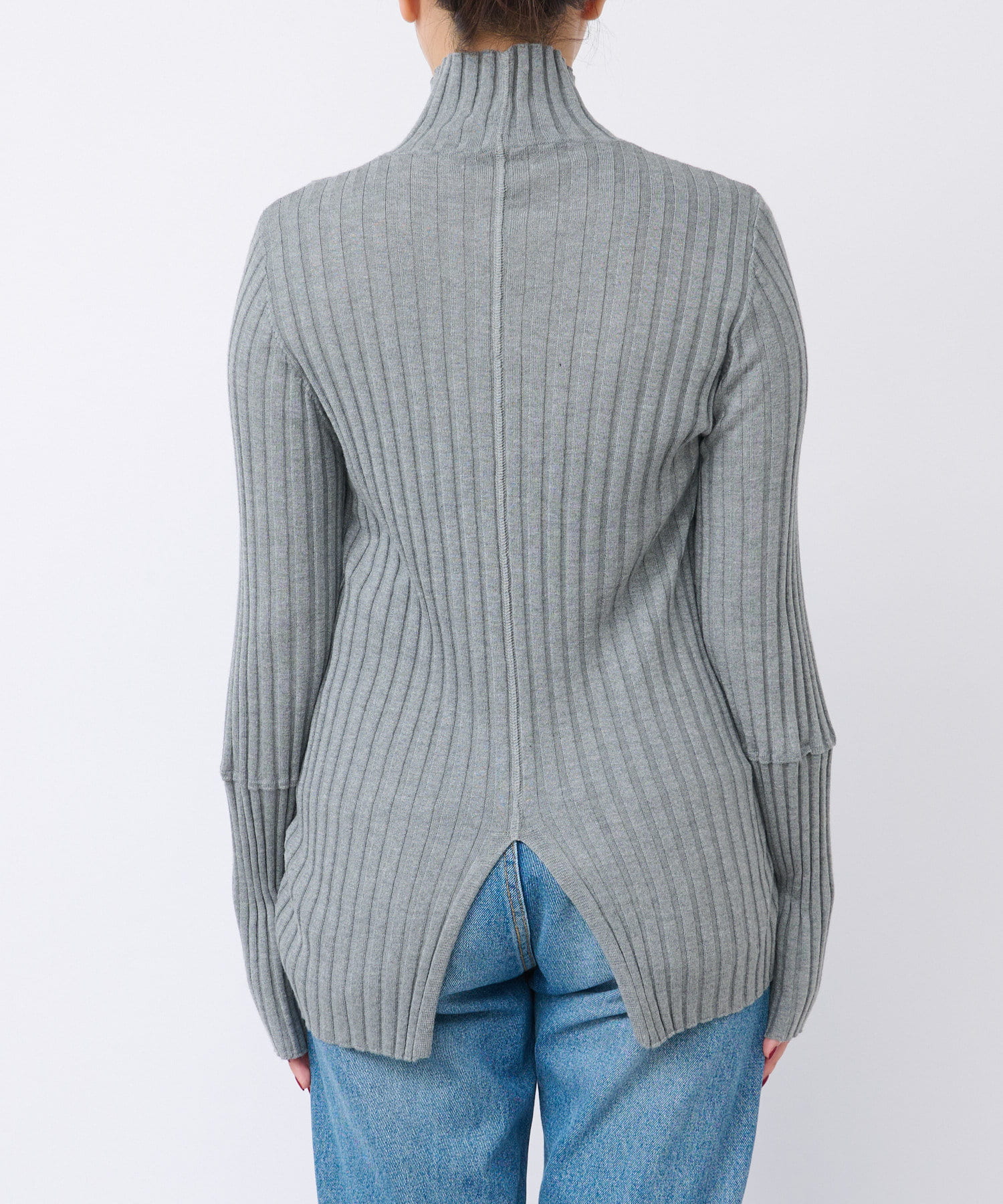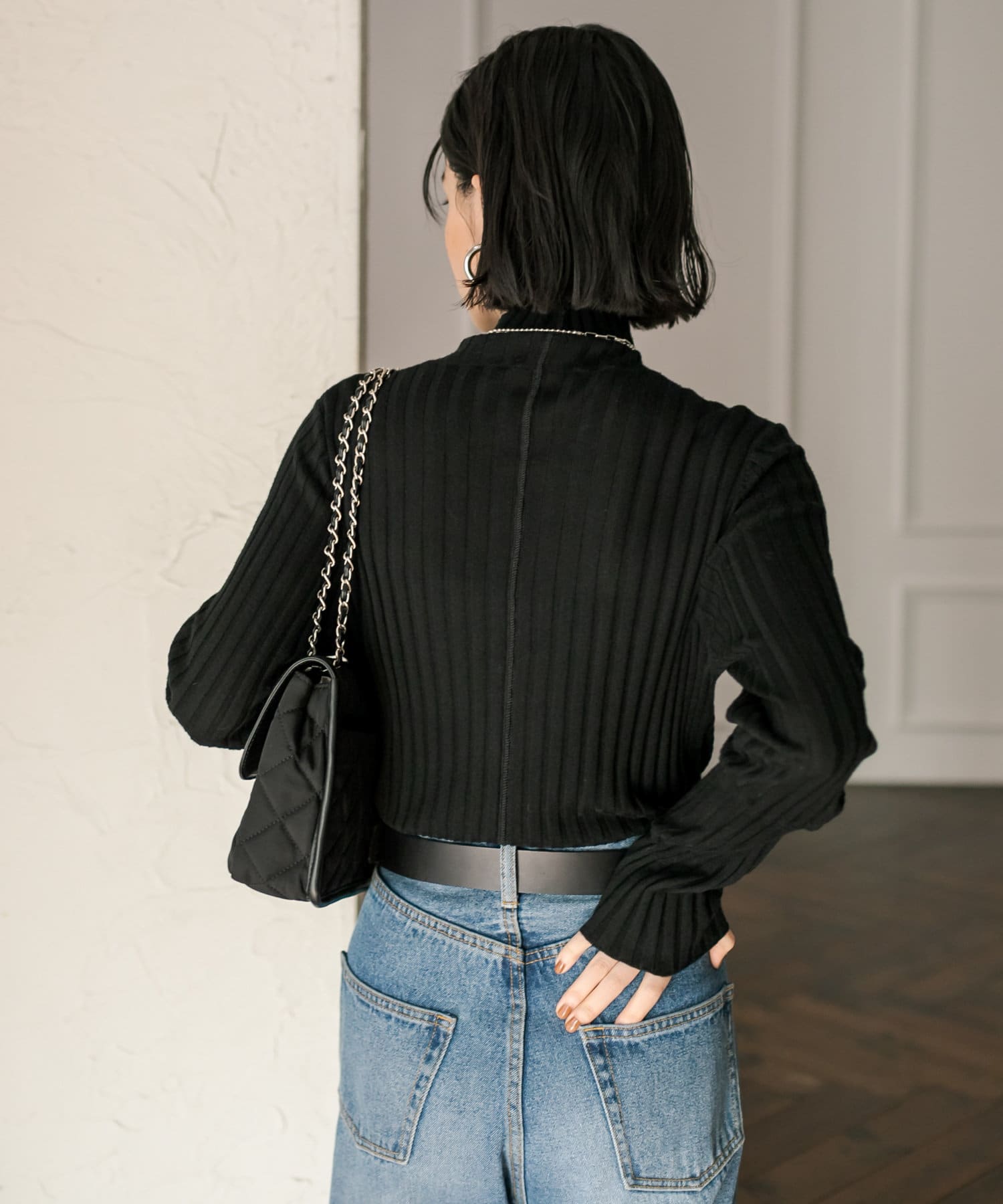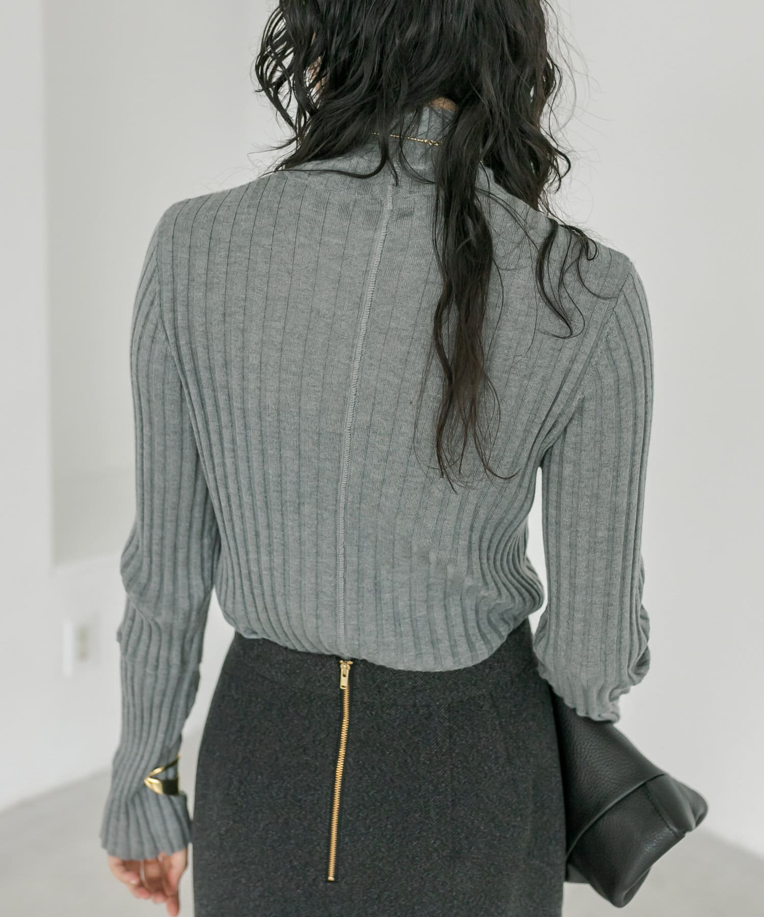 カシミヤの適度な暖かみとシルクのやわらかな肌当たりを生かした上質なリブニット