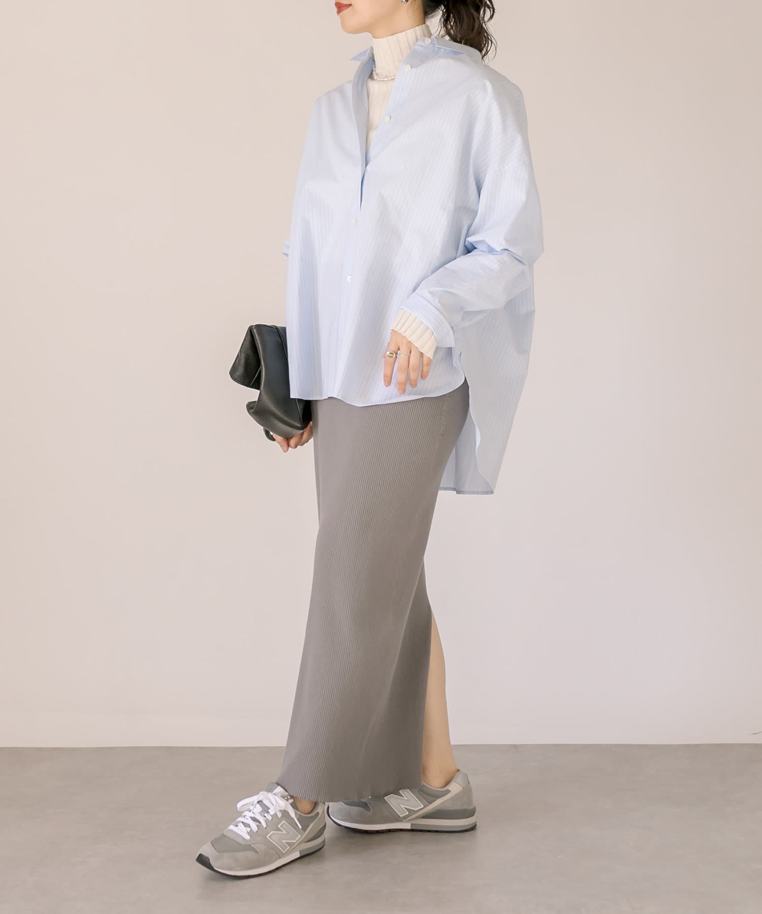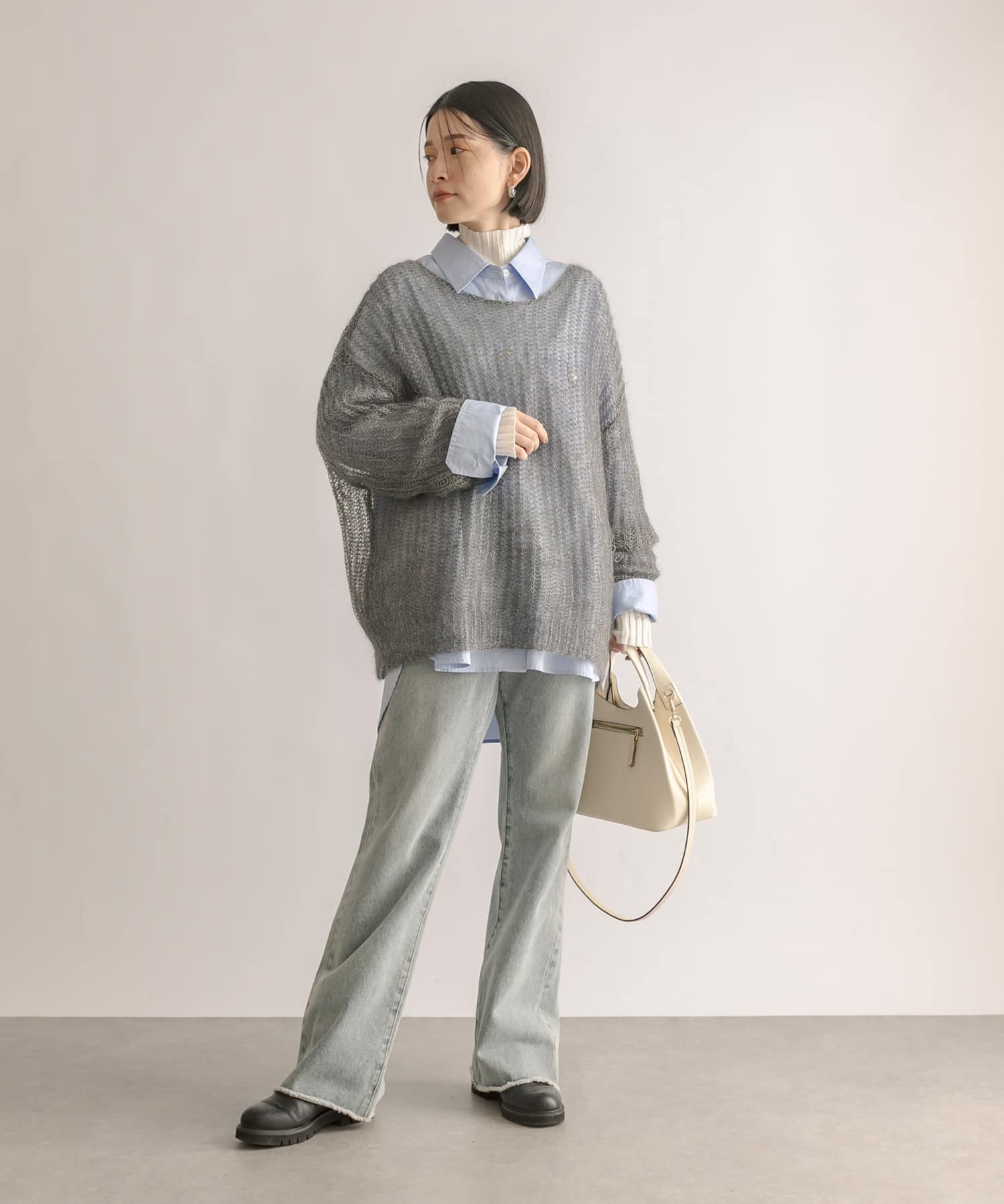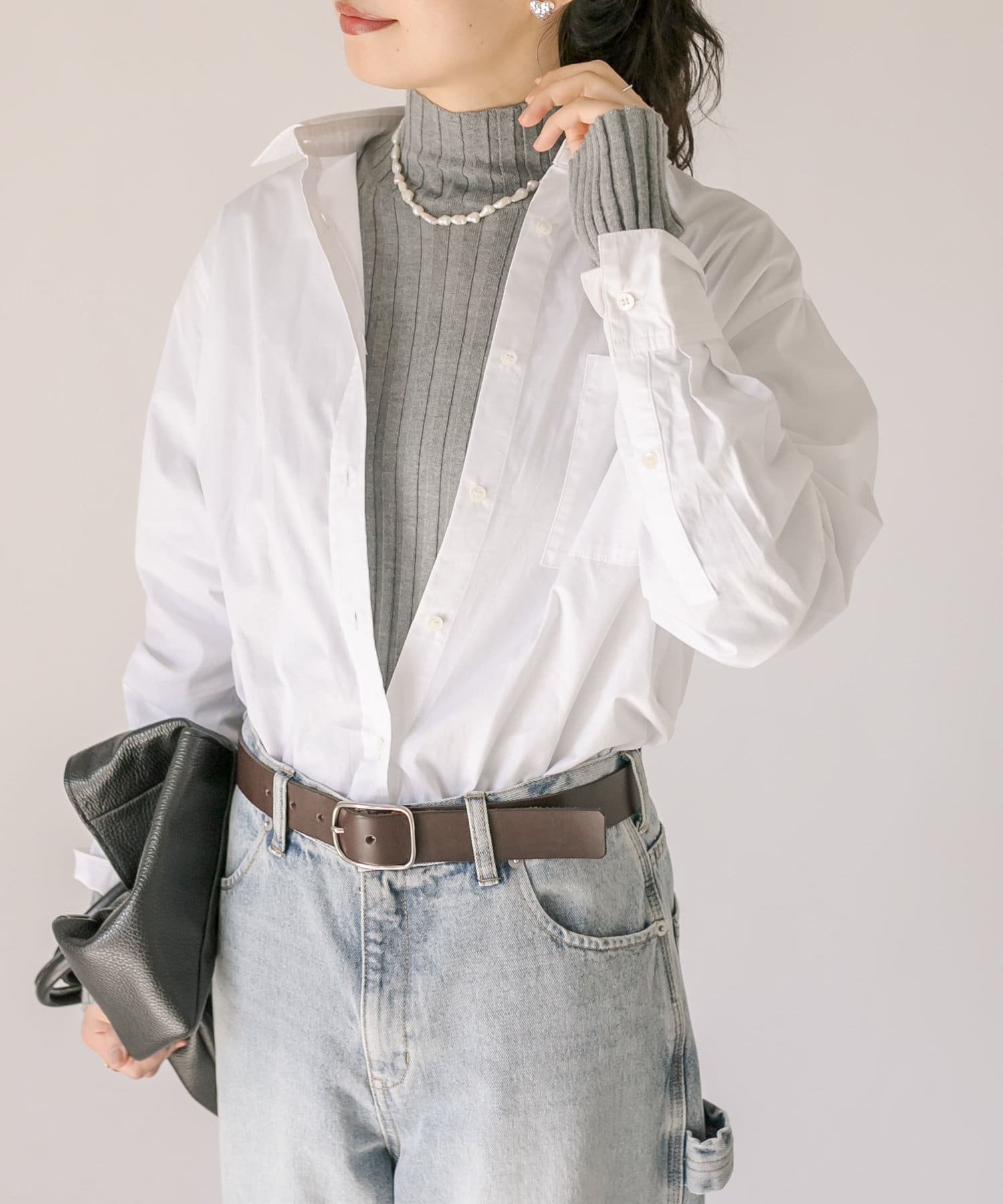 一枚着からニットやシャツのインに着るレイヤードスタイルまで、幅広い着こなしが叶う一枚です。