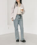 ボトムもシルエットを問わず合わせていただけますが、コクーンシルエットを活かすならややスッキリとしたパンツを合わせていただくのがオススメ。