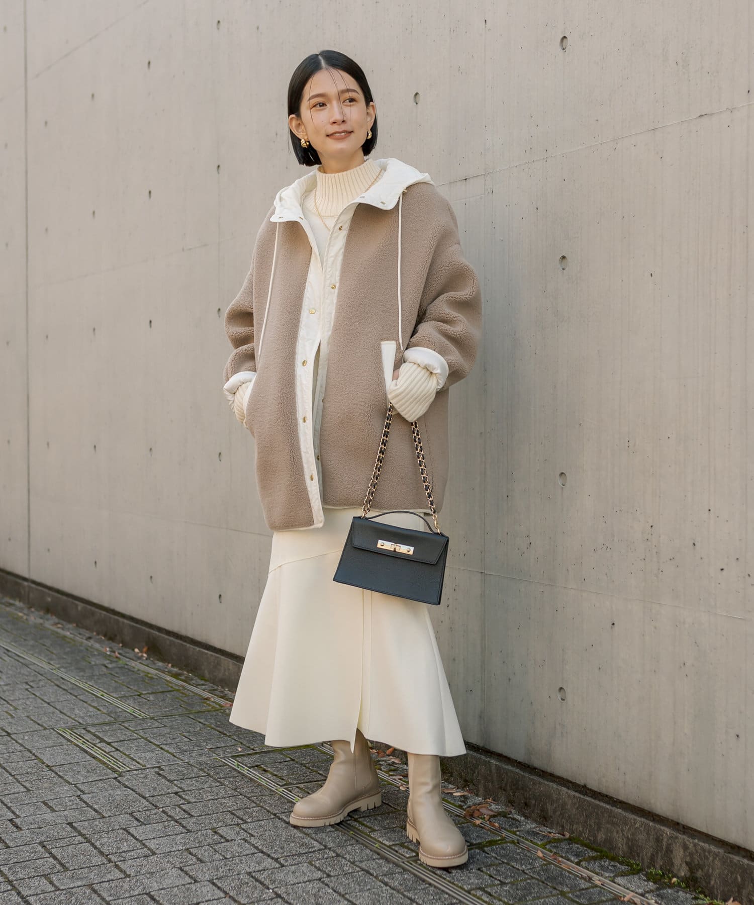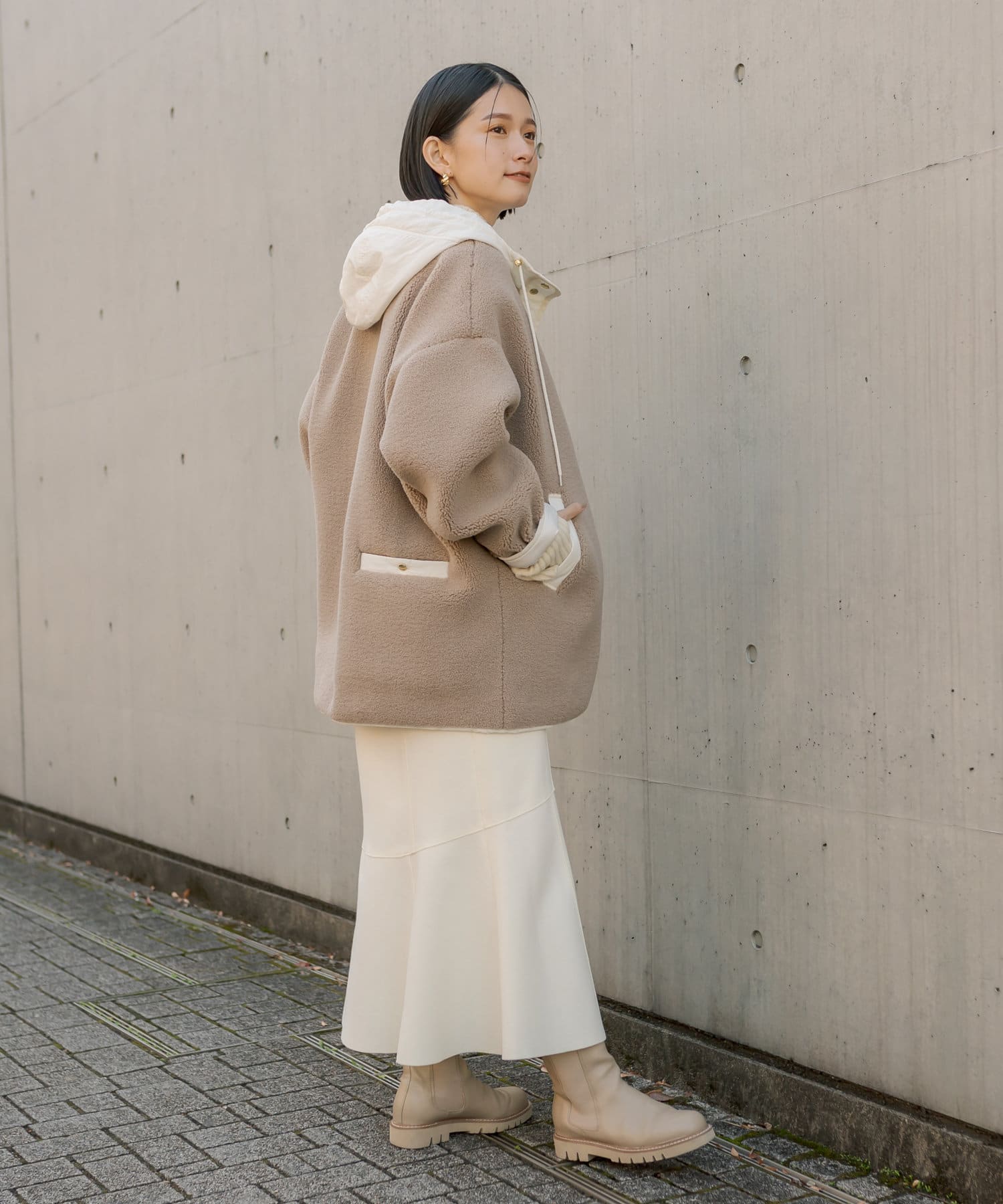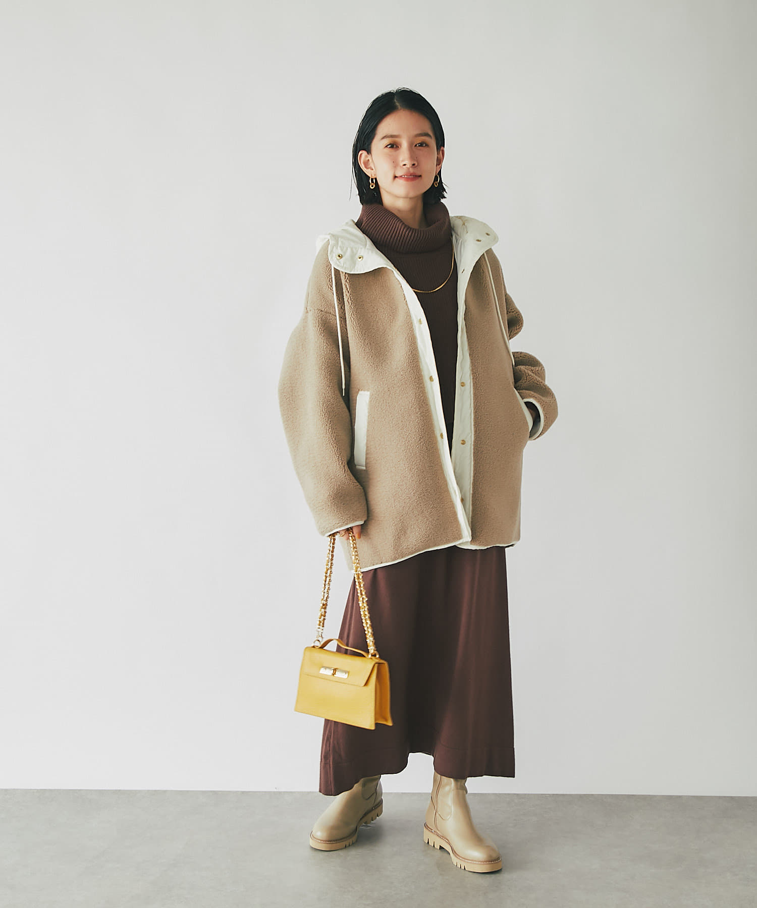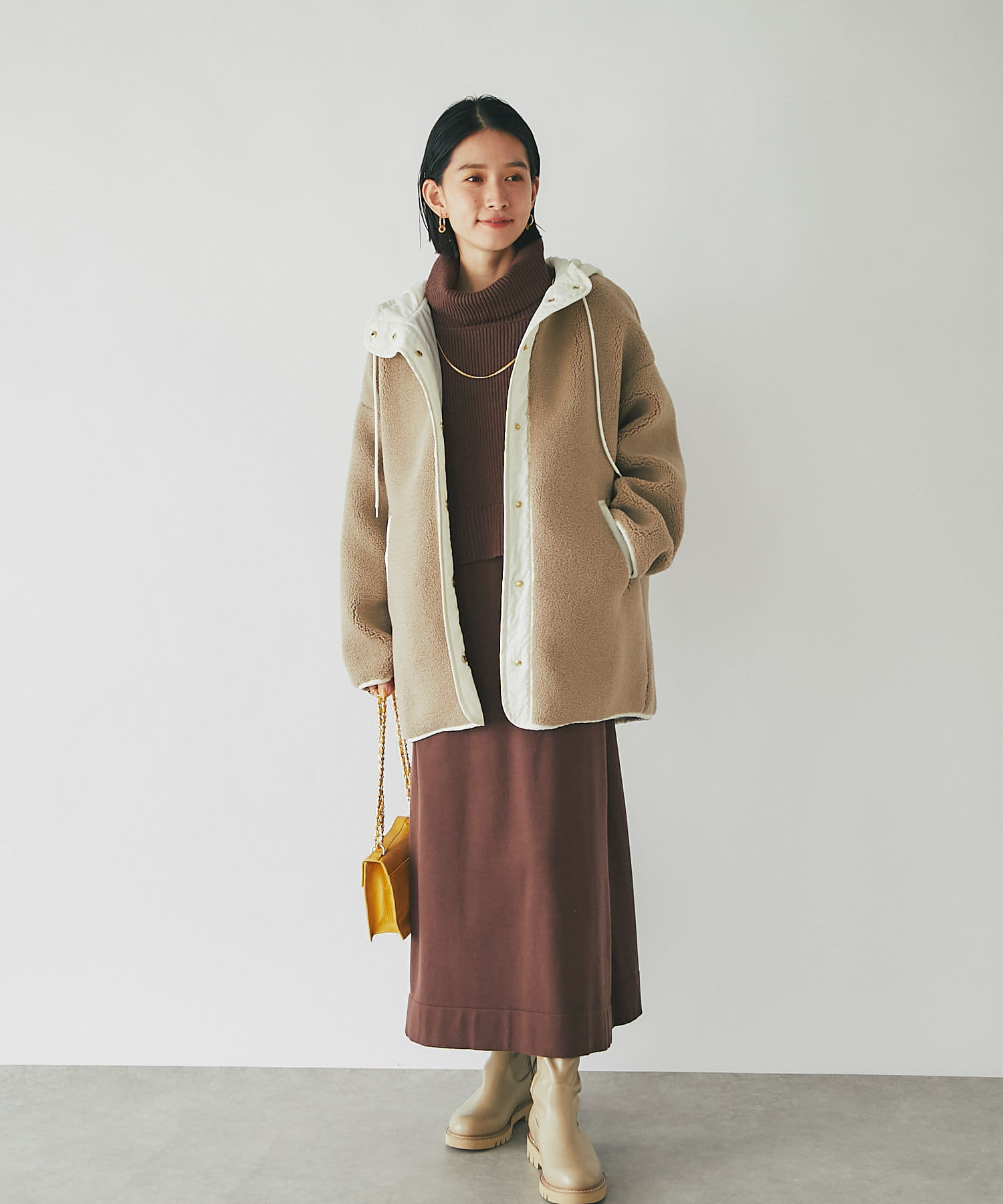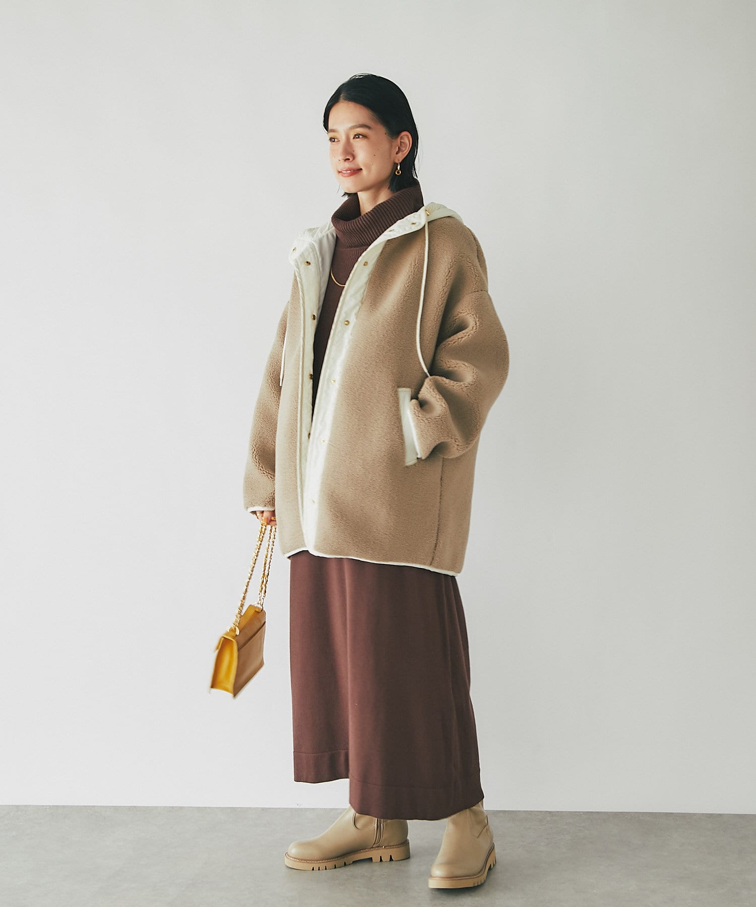丸みのあるコクーンシルエットが女性らしく、お尻が隠れる着丈のため体系カバー効果も抜群。
