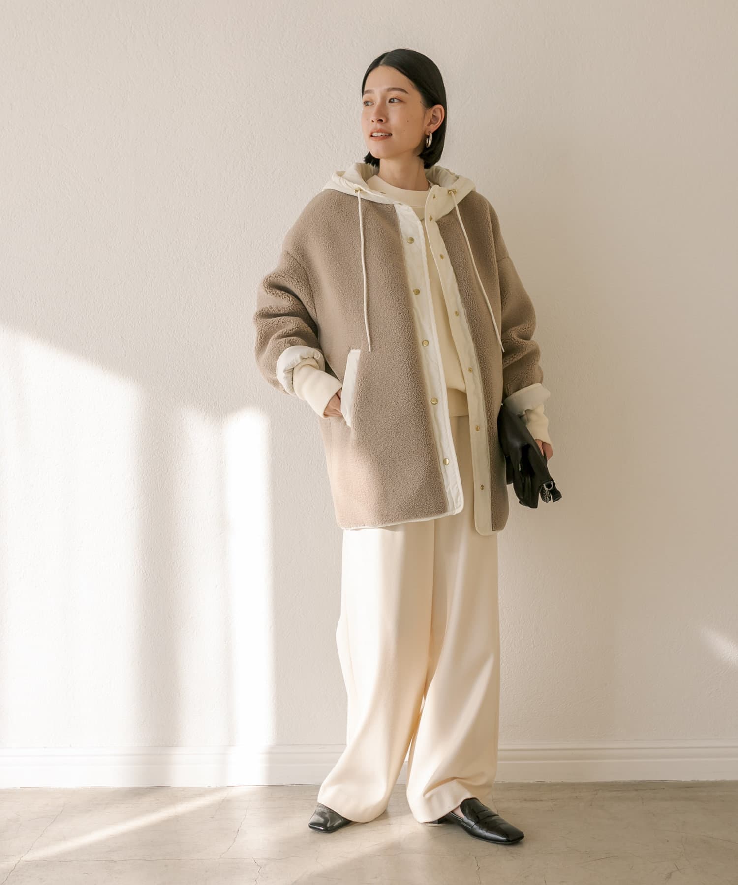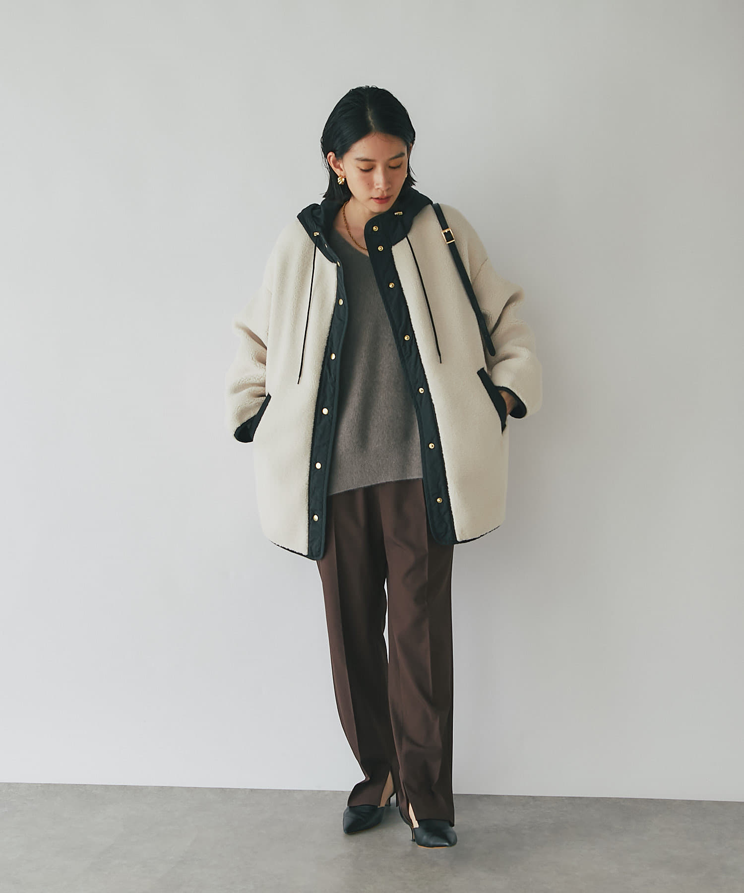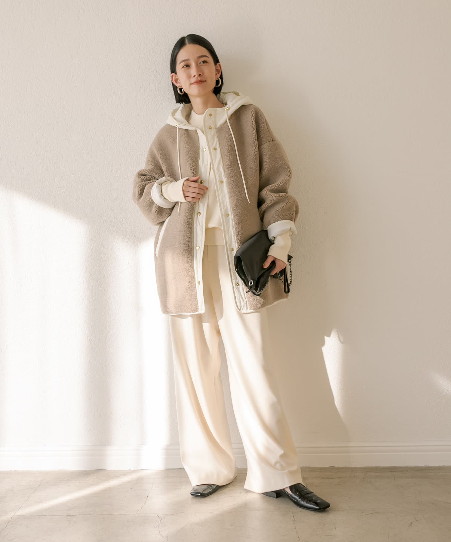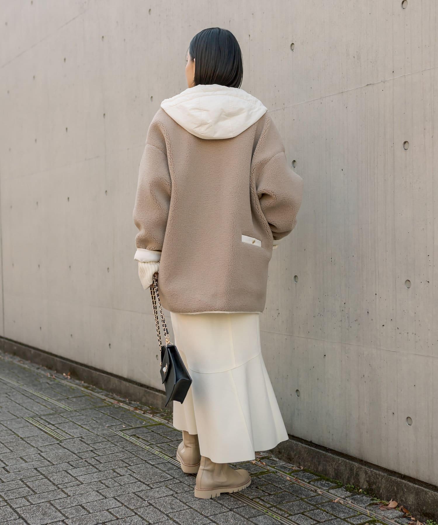 丸みのあるコクーンシルエットが女性らしく、お尻が隠れる着丈のため体系カバー効果も抜群。