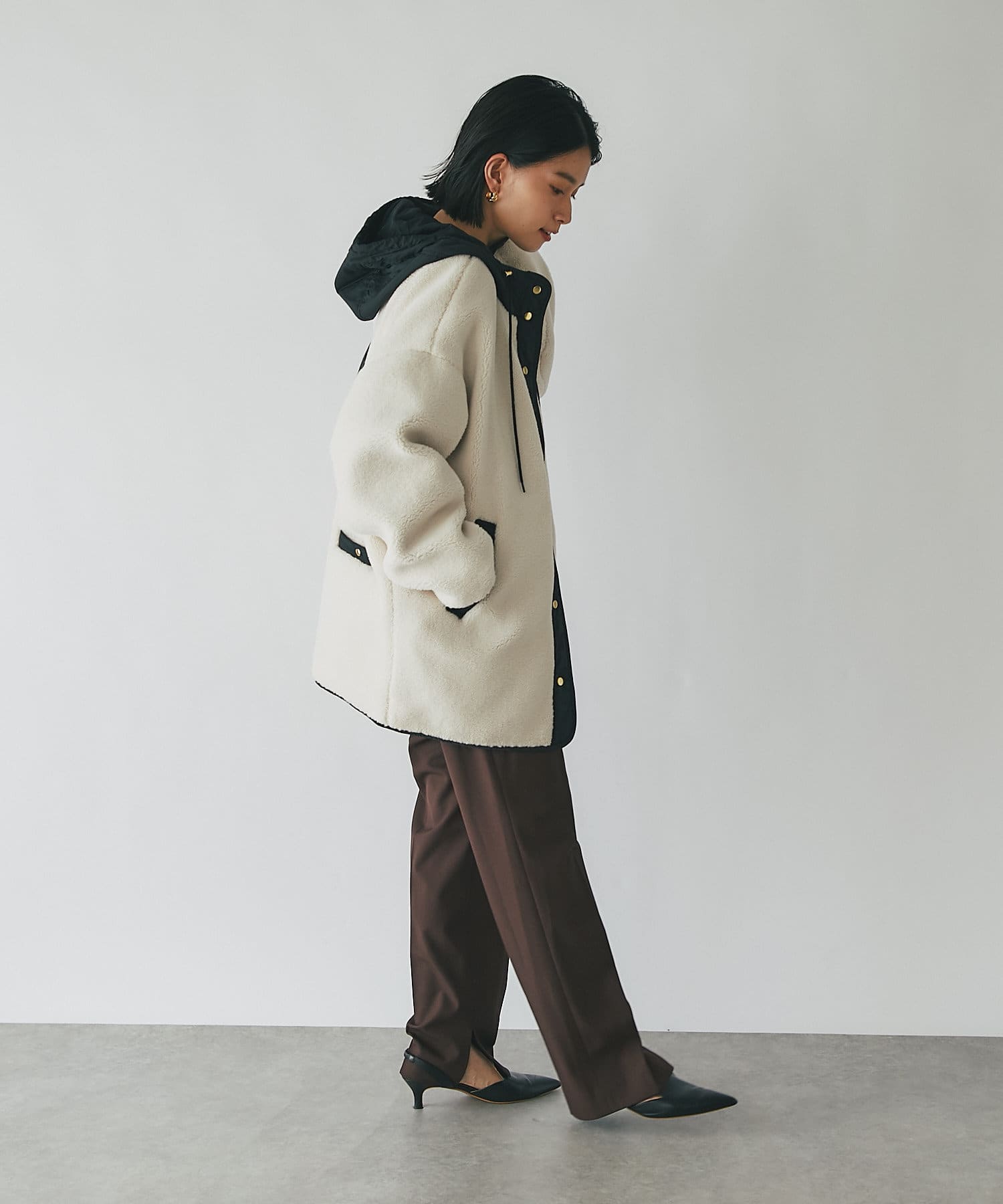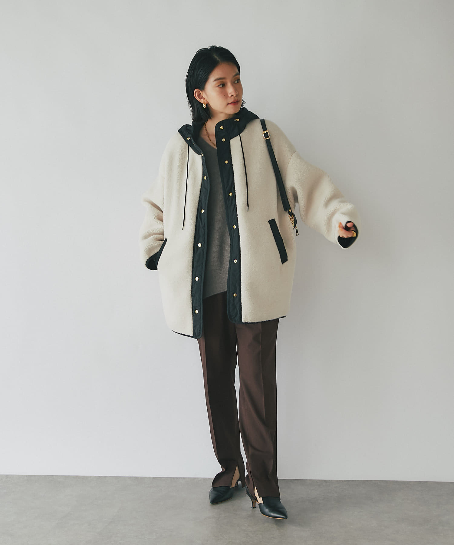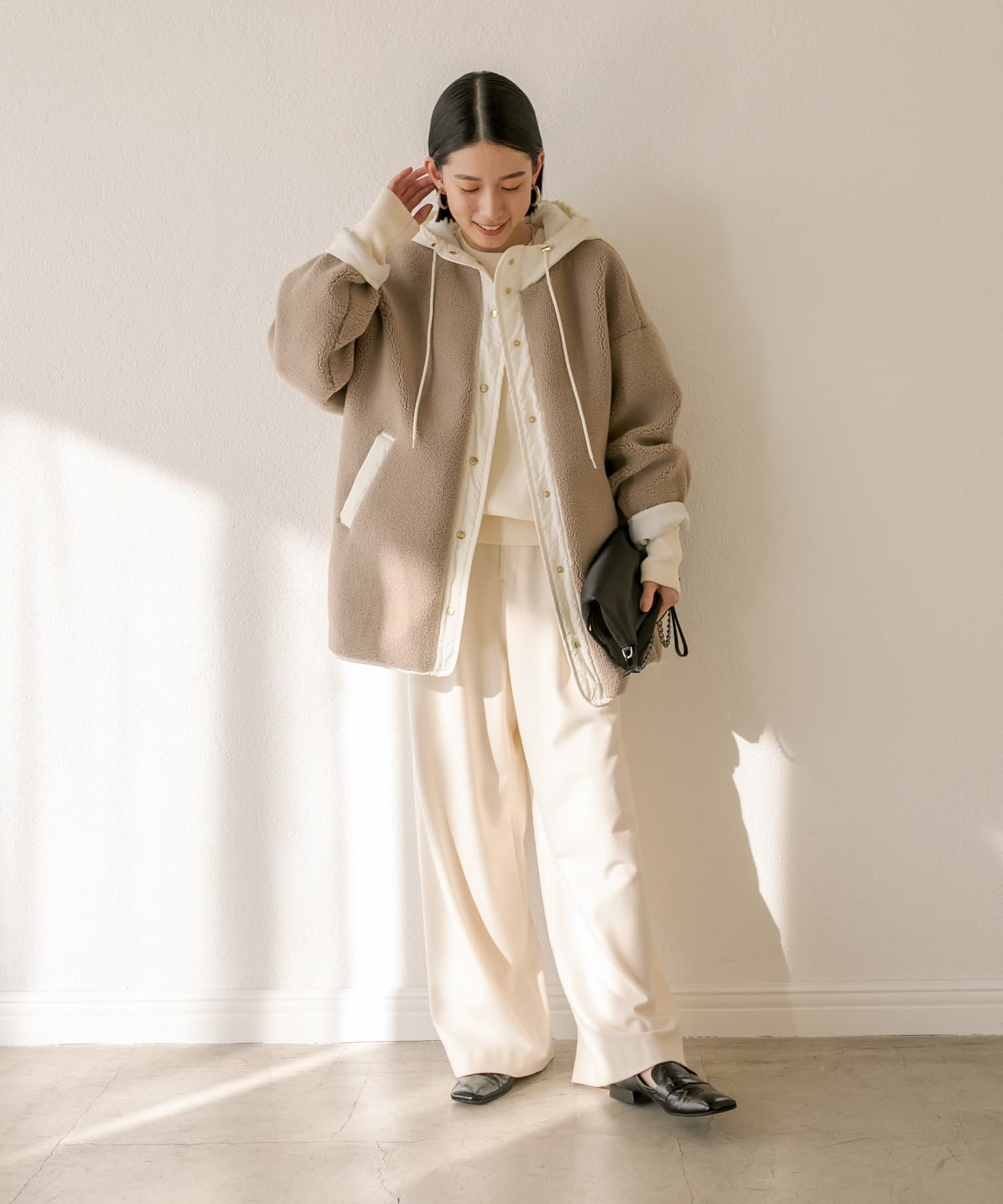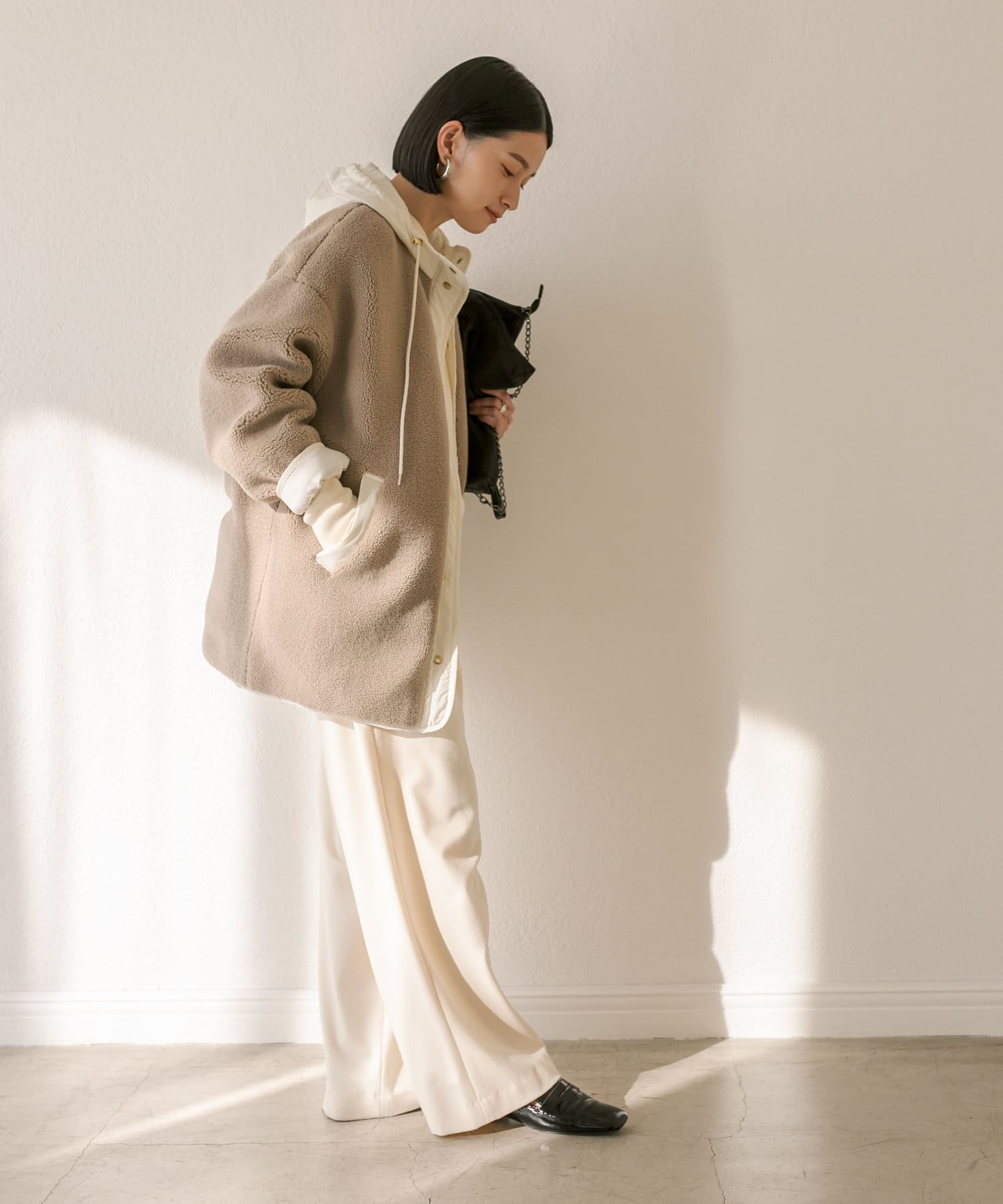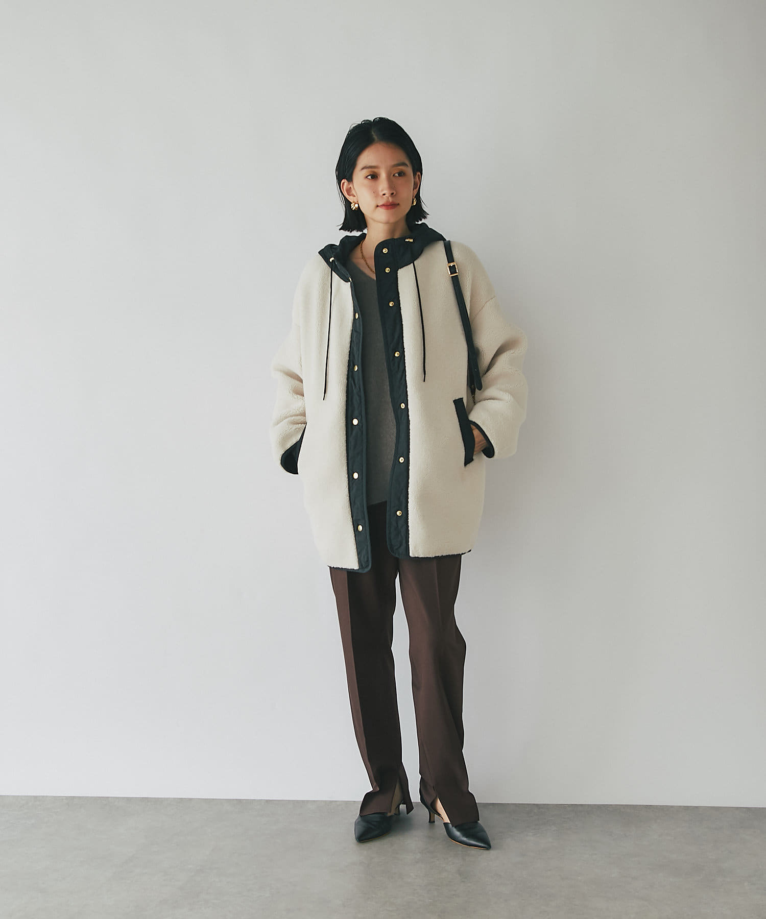 丸みのあるコクーンシルエットが女性らしく、お尻が隠れる着丈のため体系カバー効果も抜群。