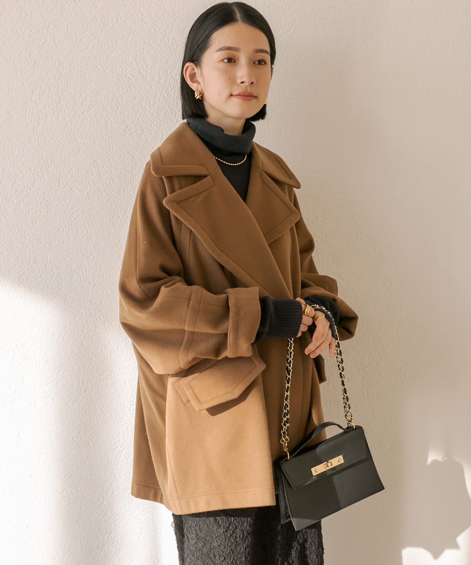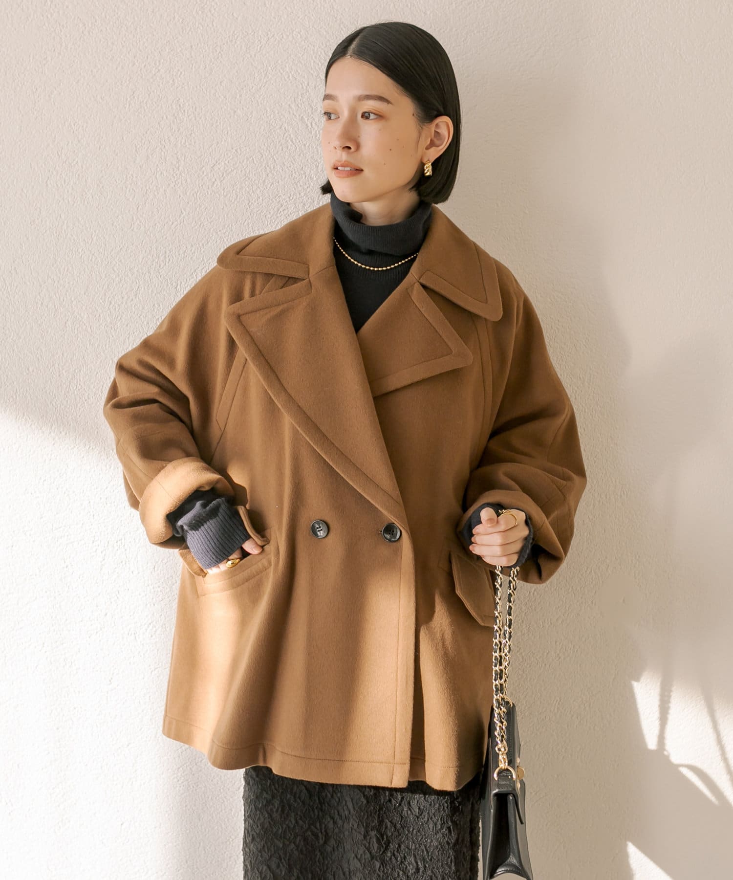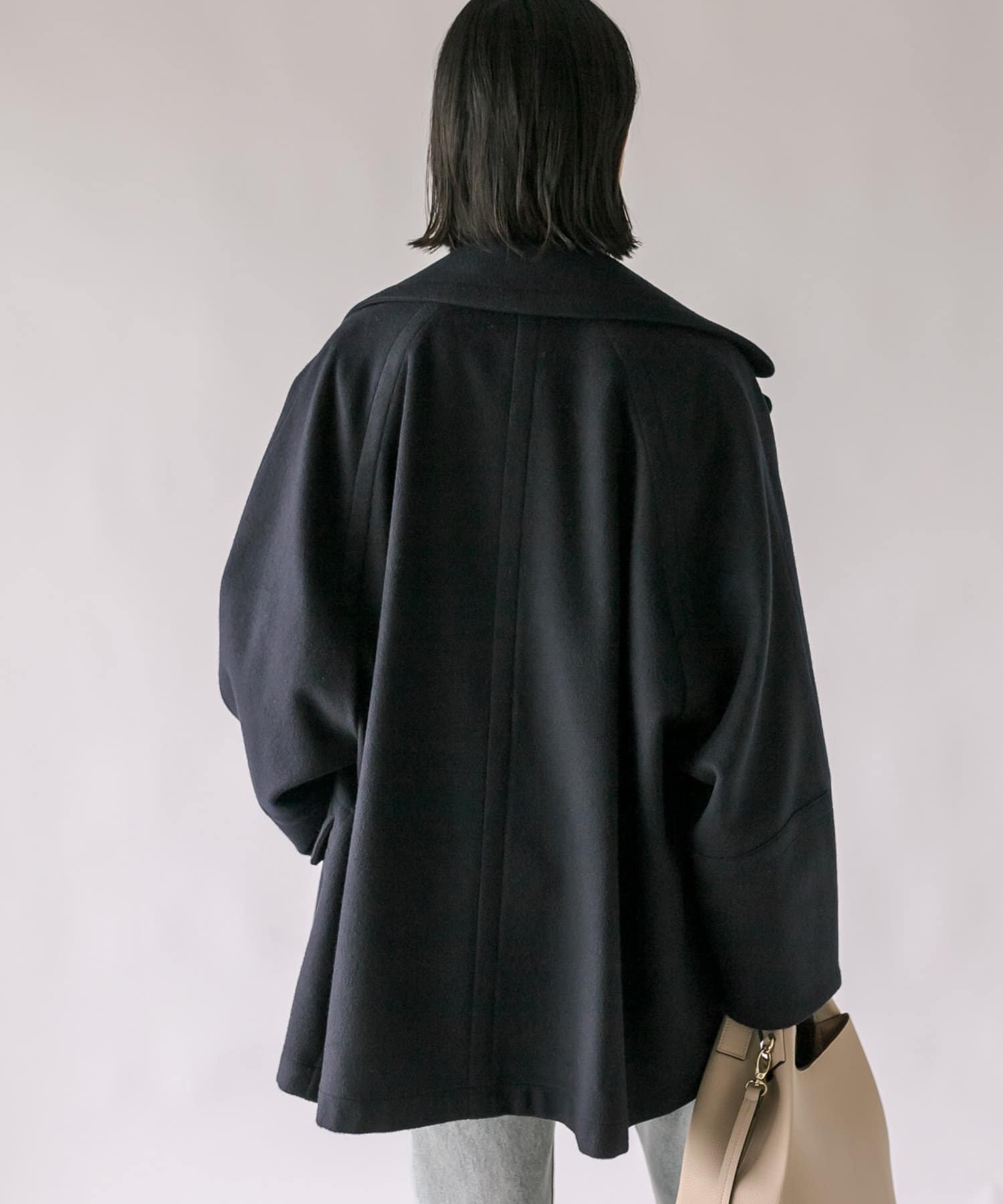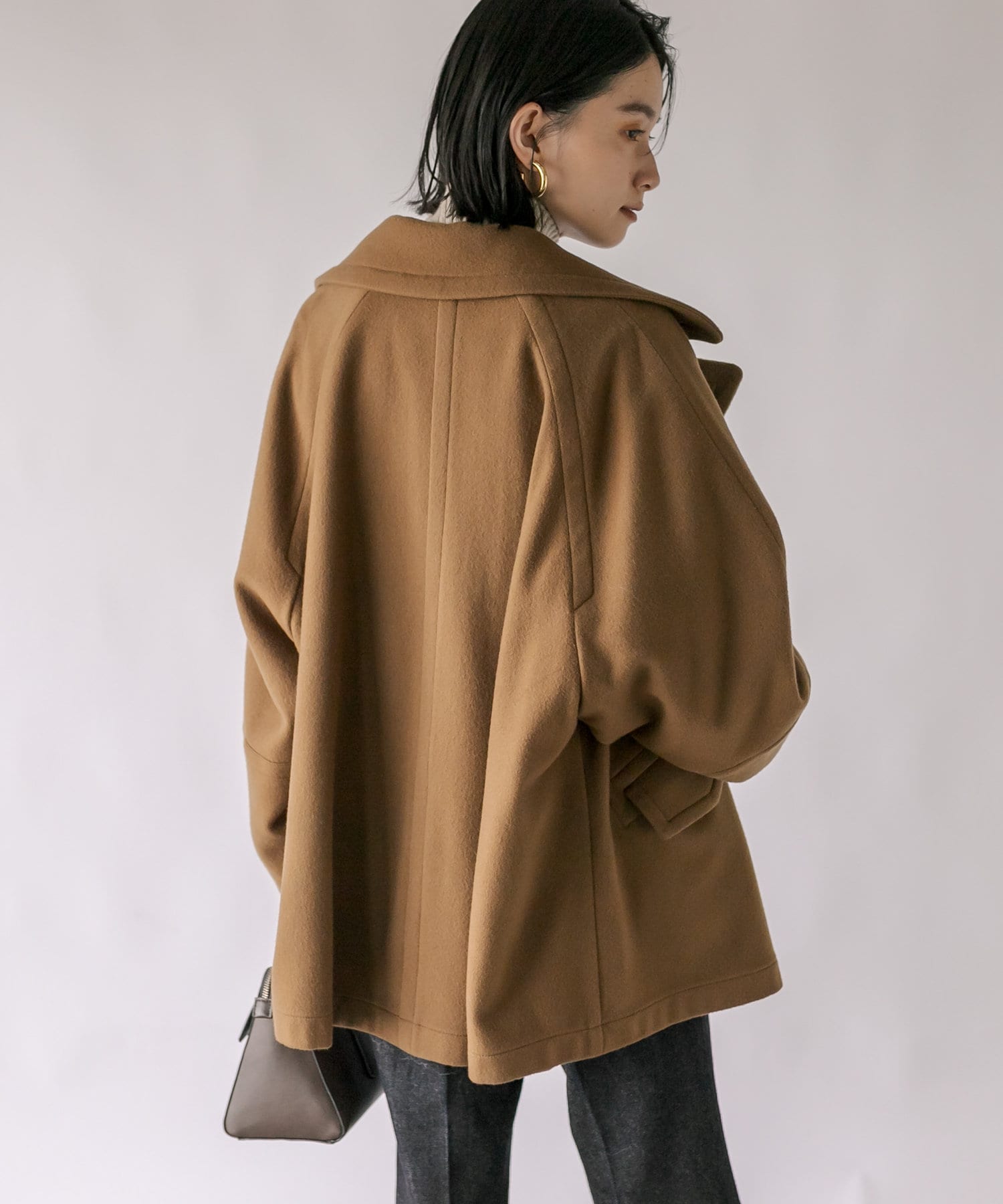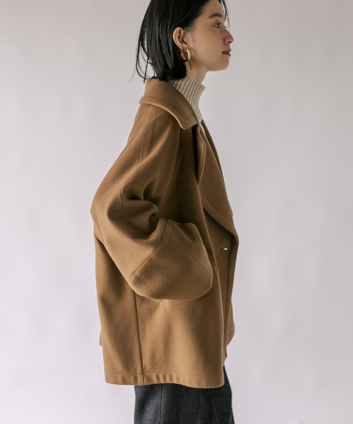ゆったりとしたシルエットが魅力のハーフコート。