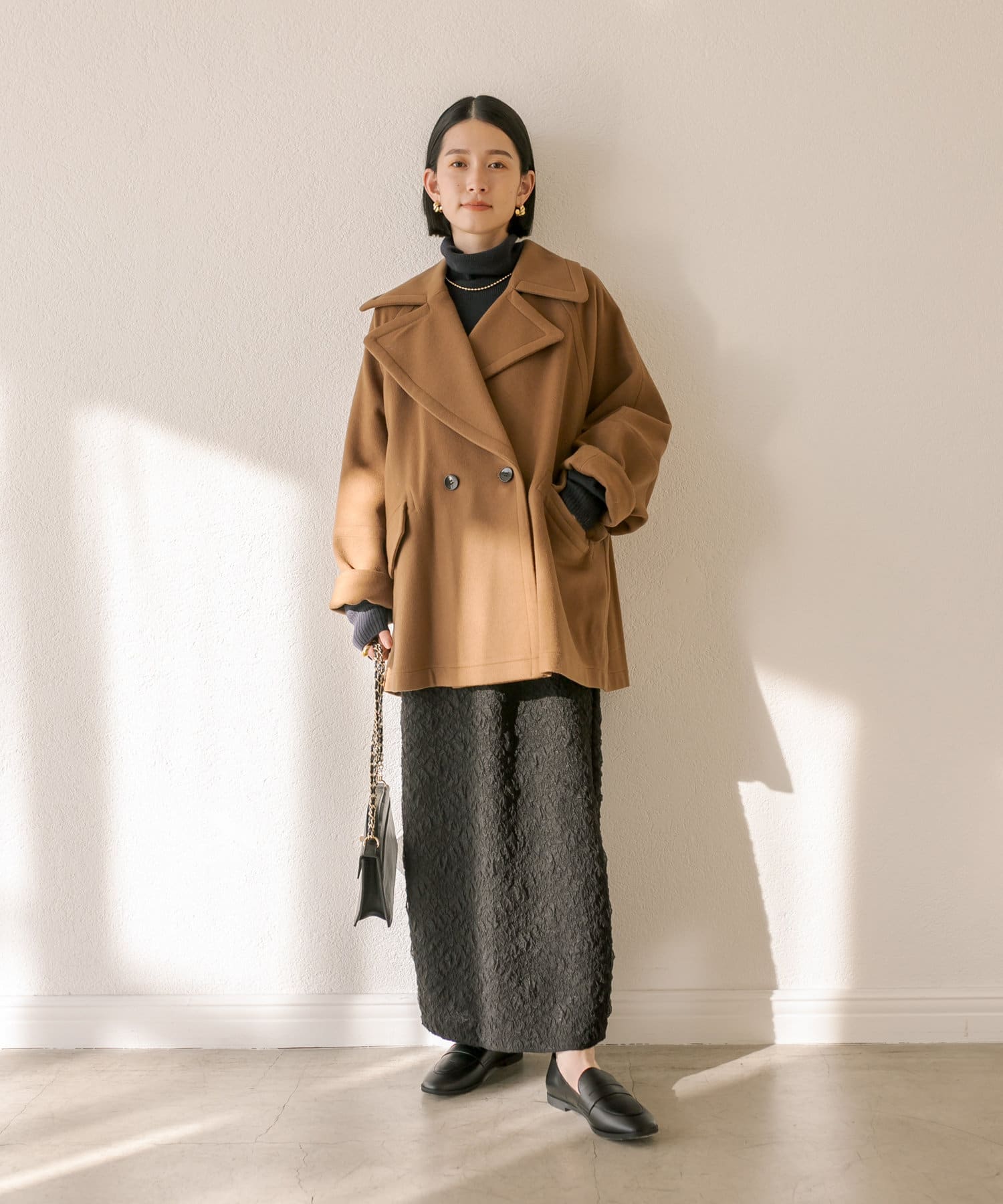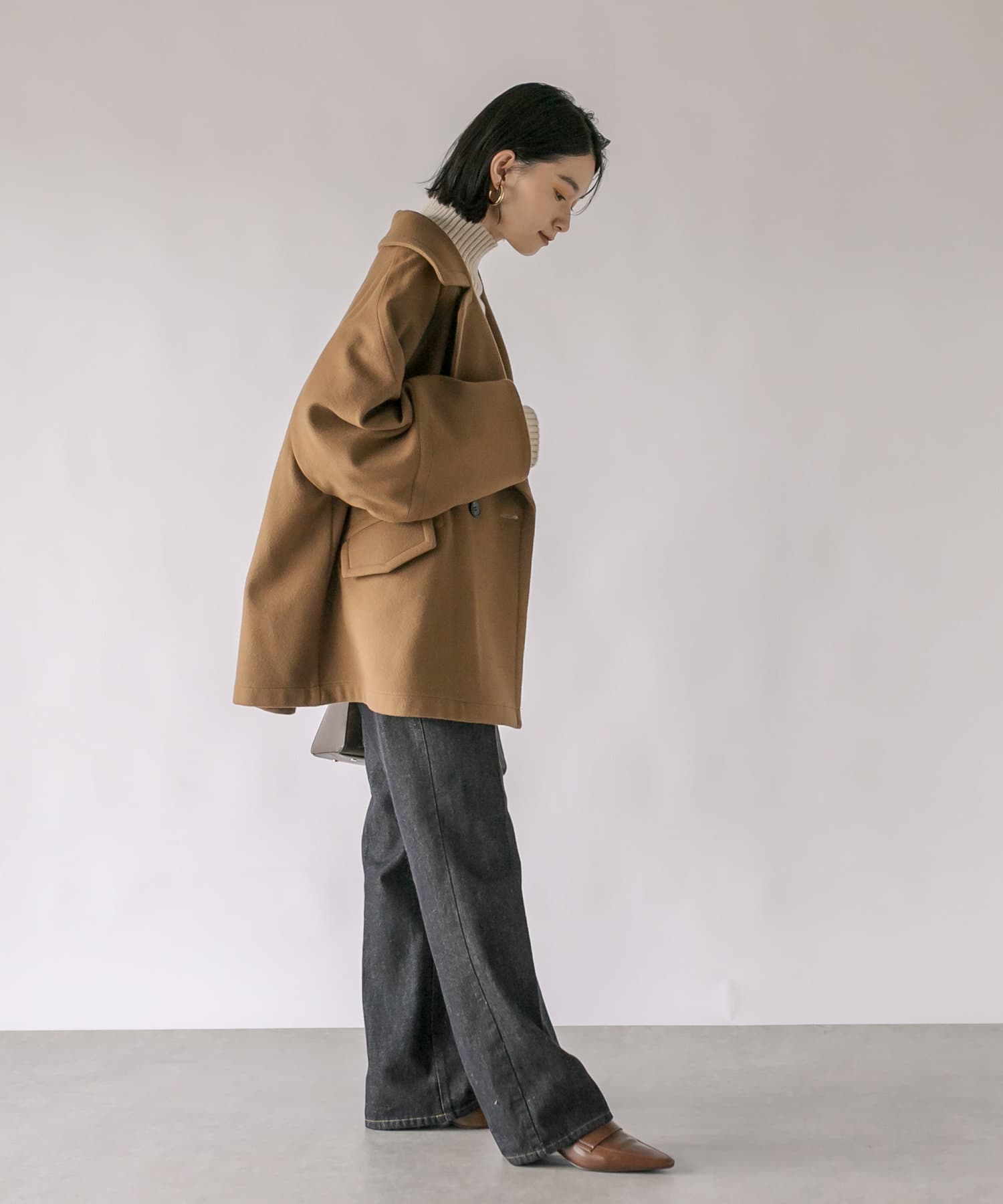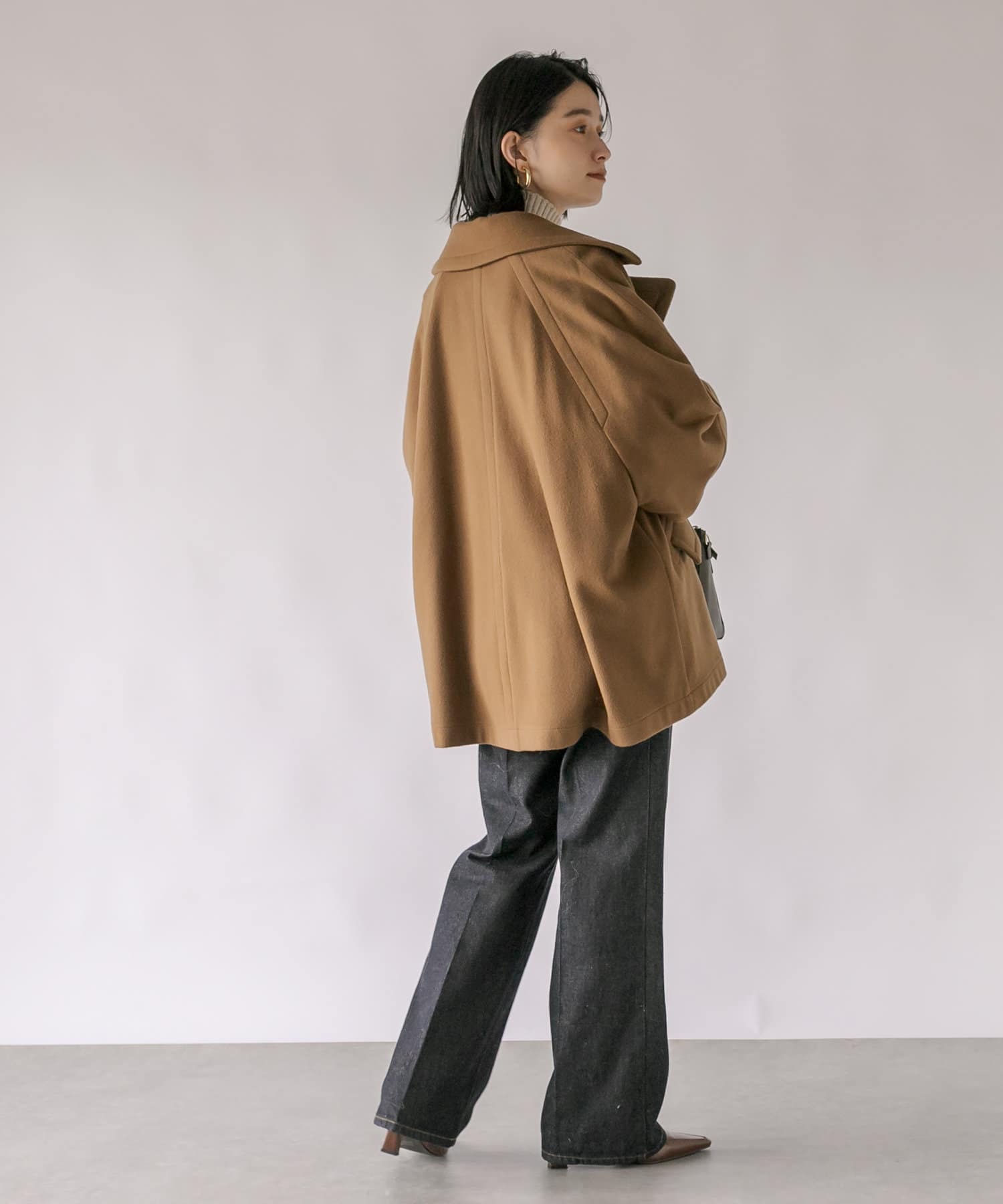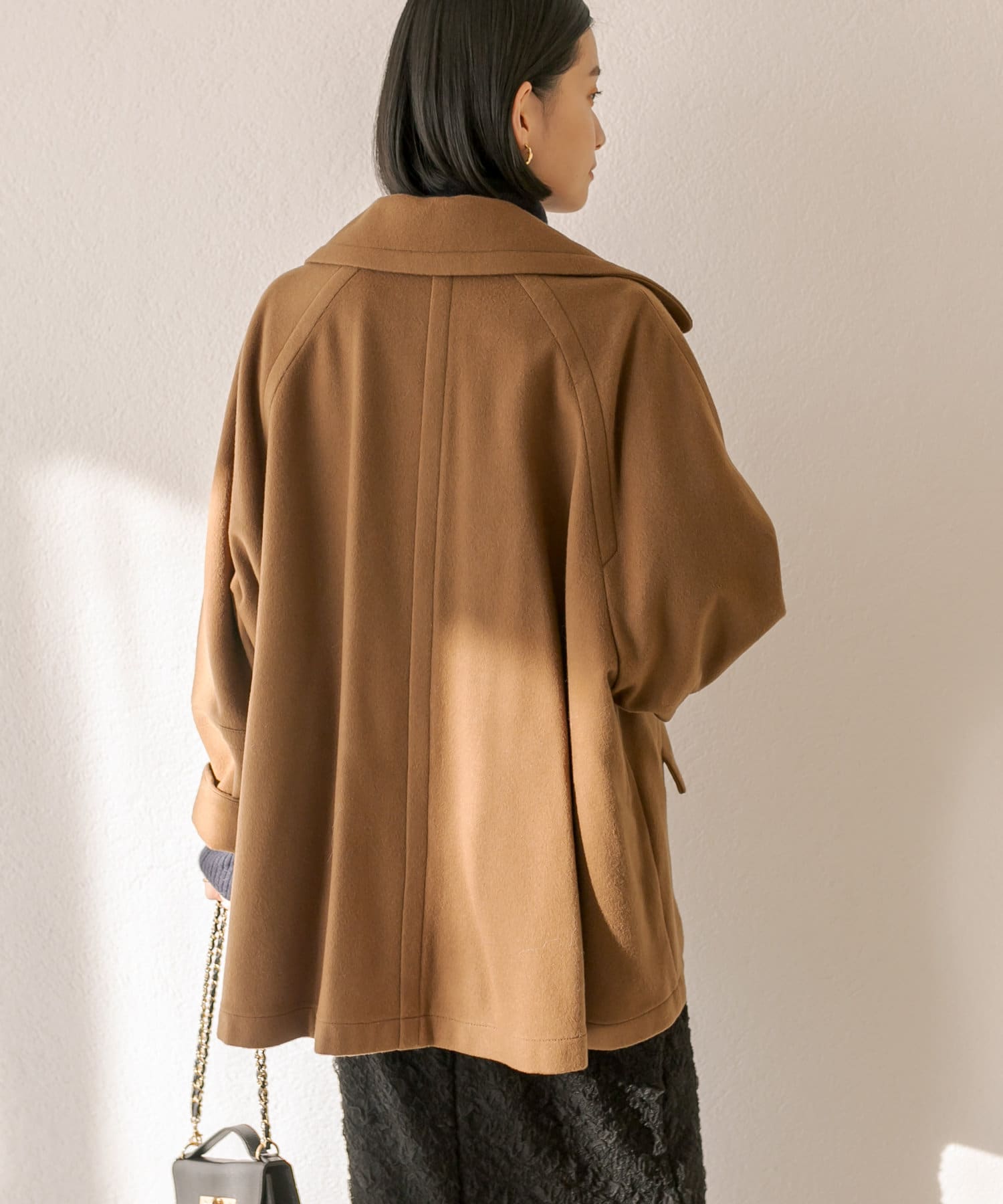 ゆったりとしたシルエットが魅力のハーフコート。