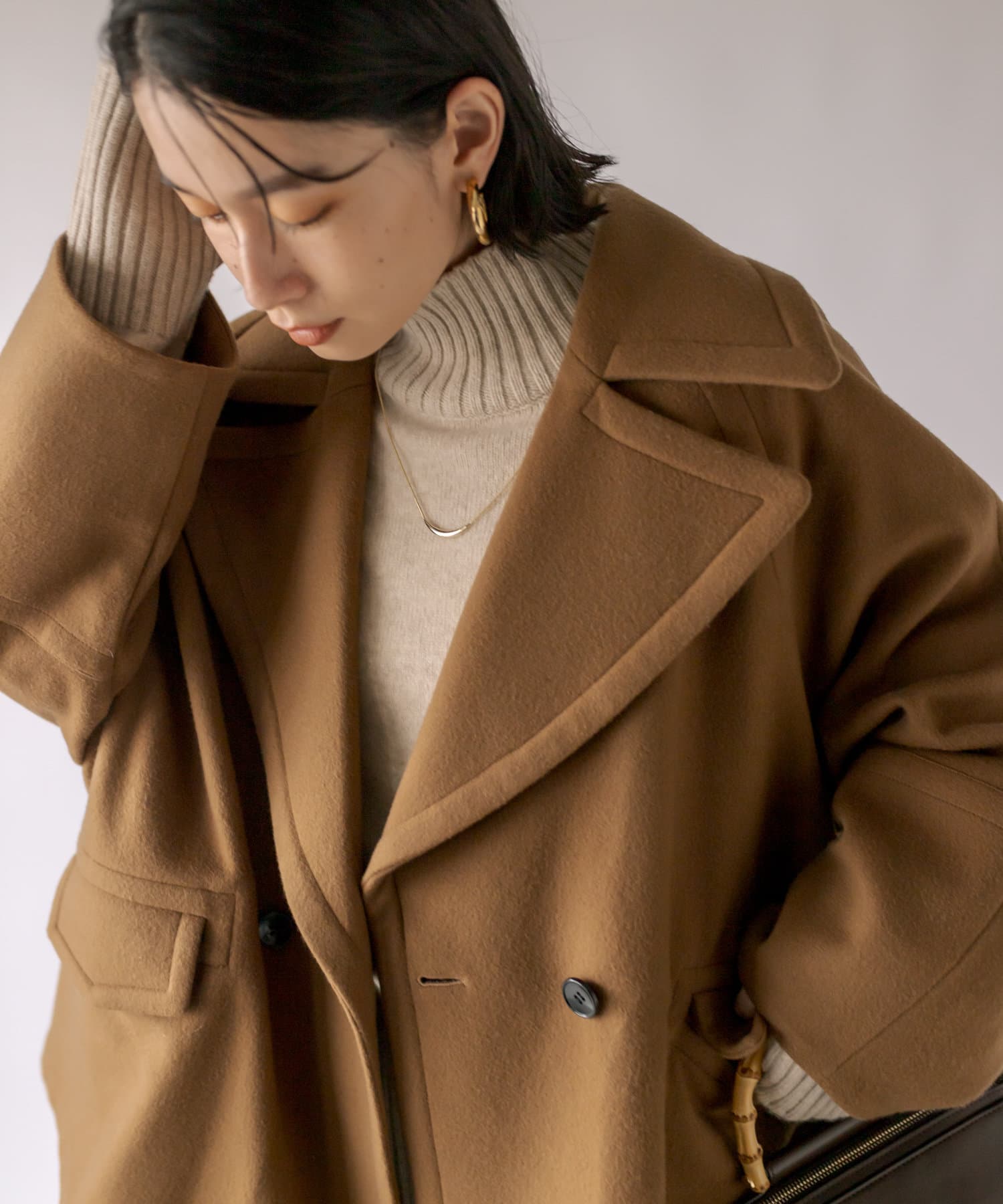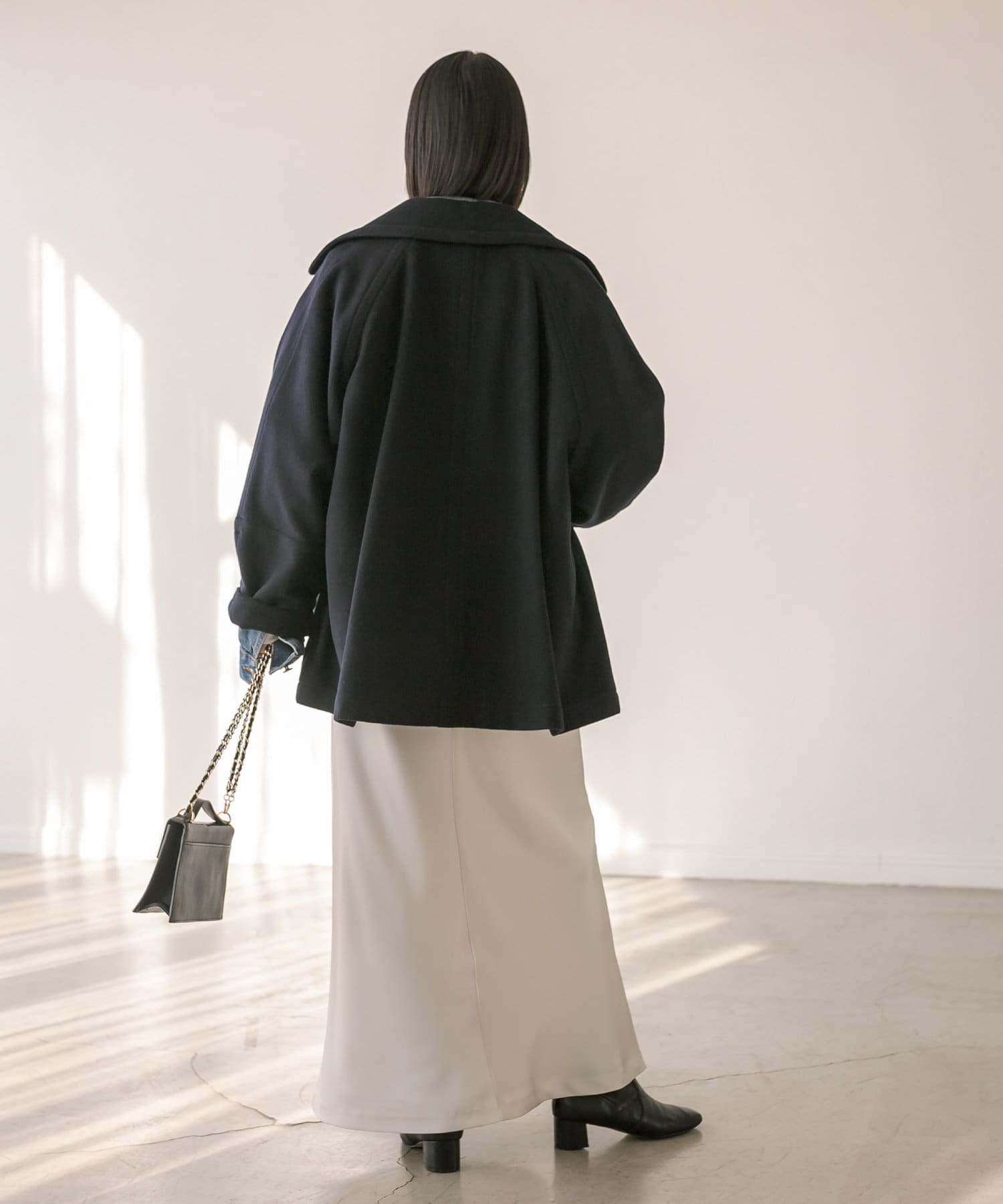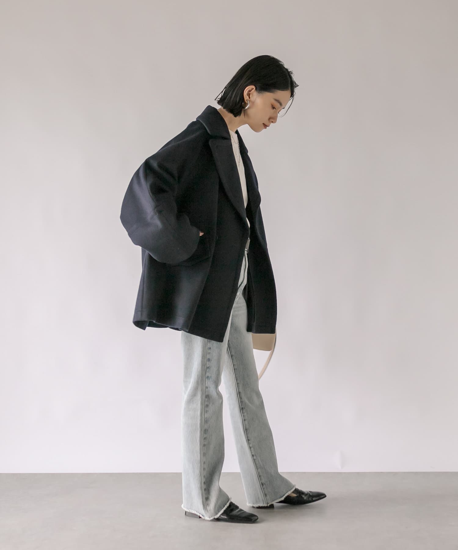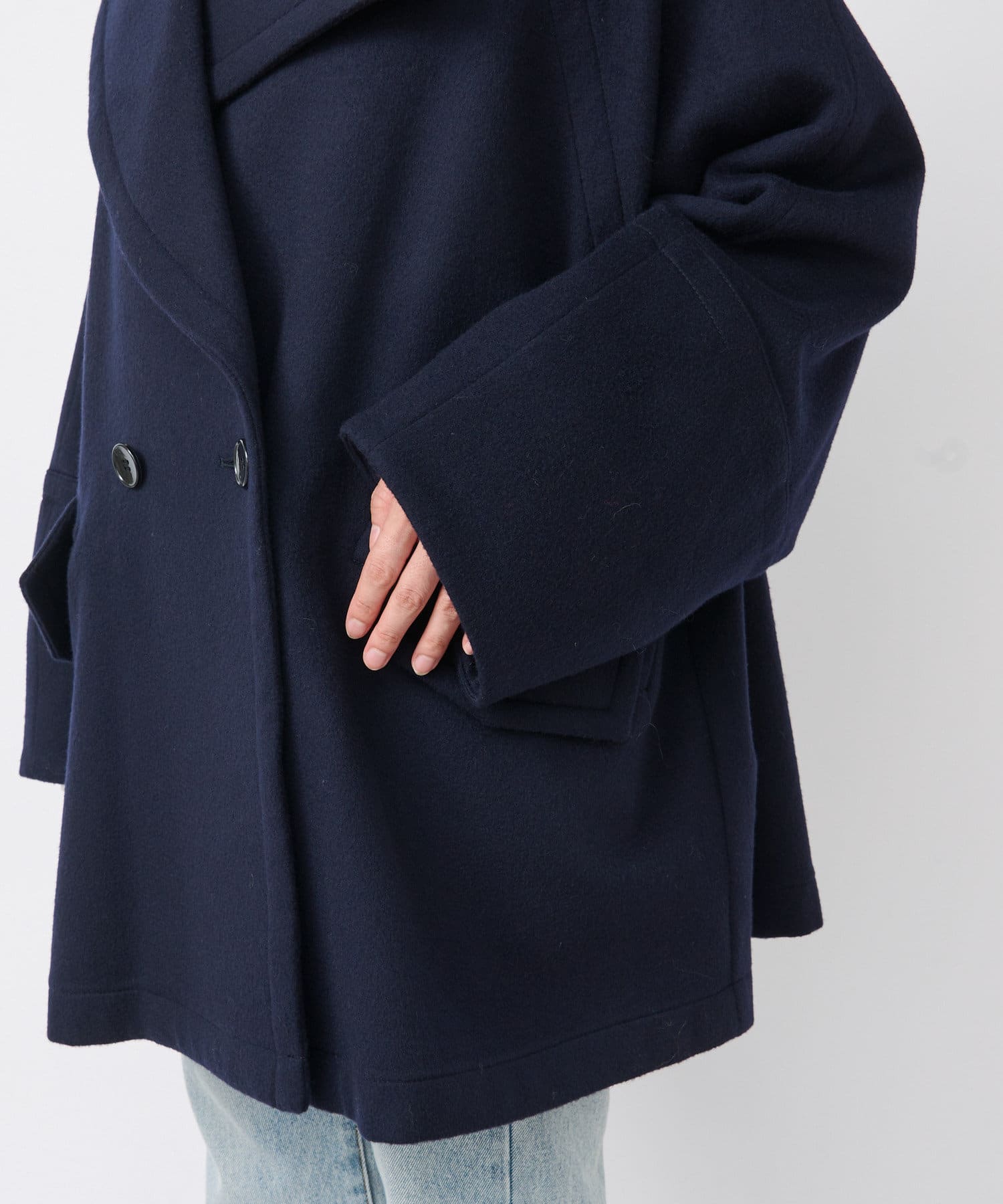 ゆったりとしたシルエットが魅力のハーフコート。