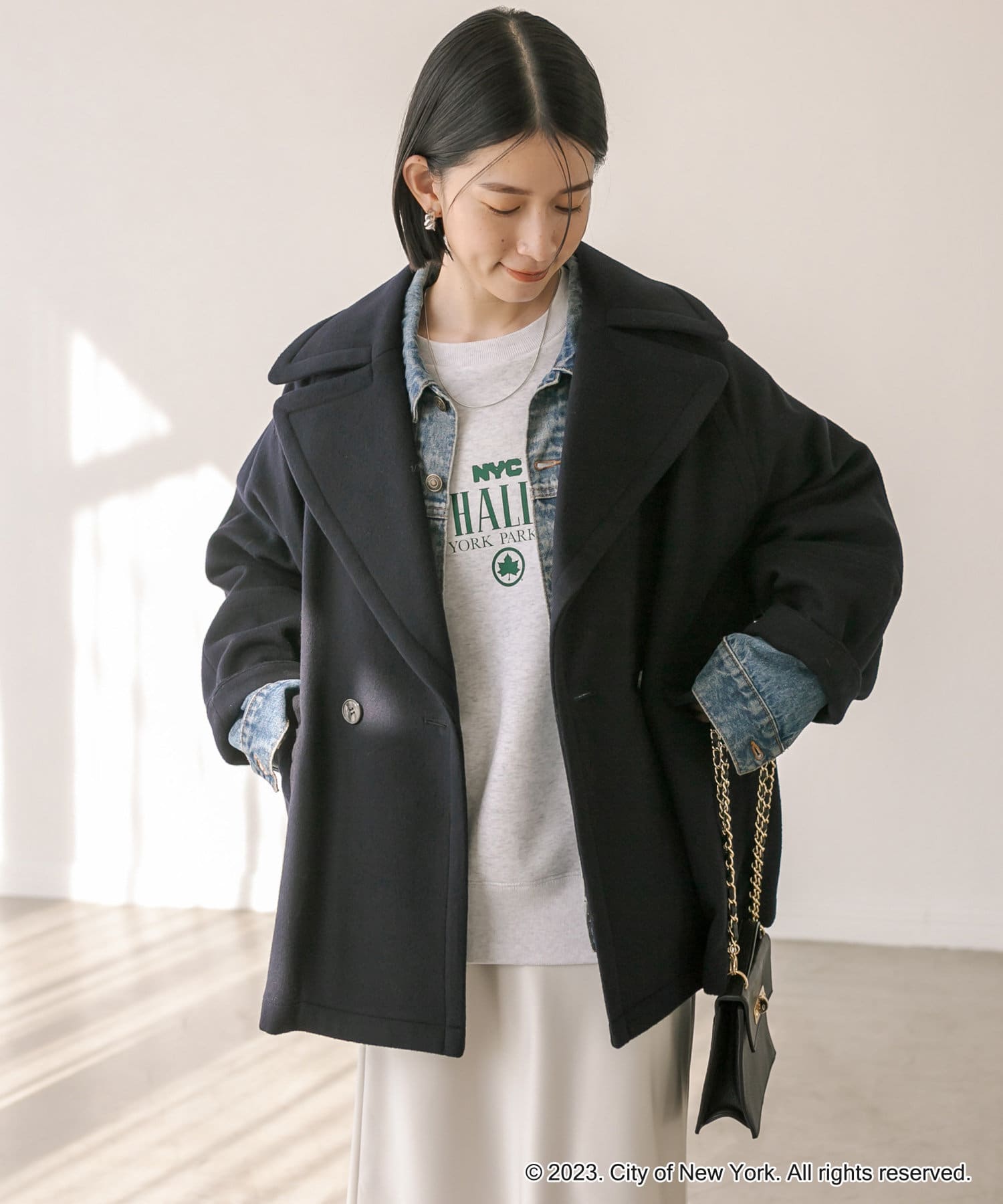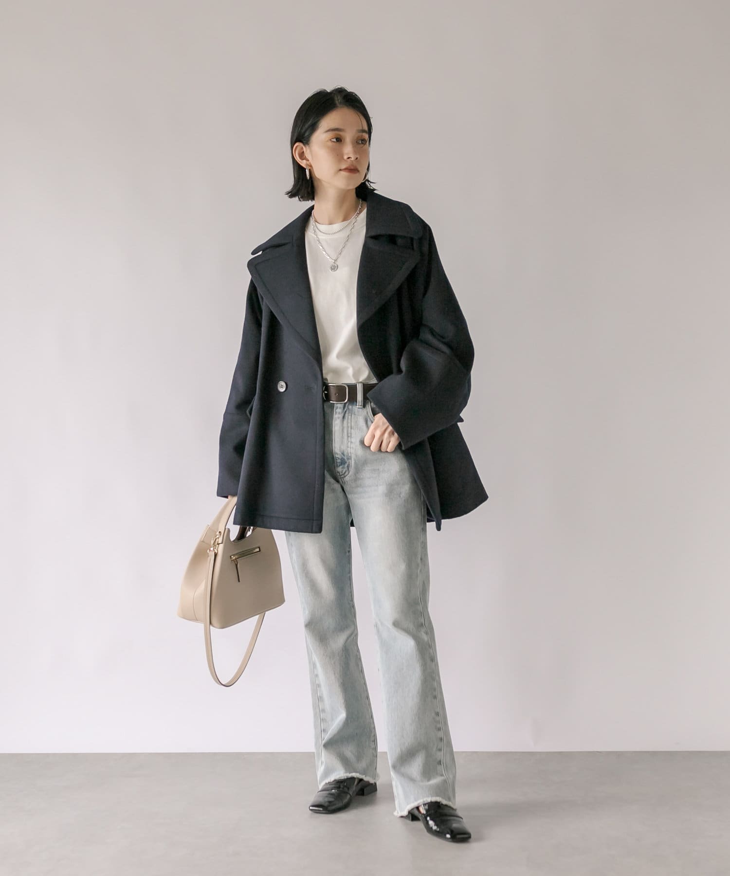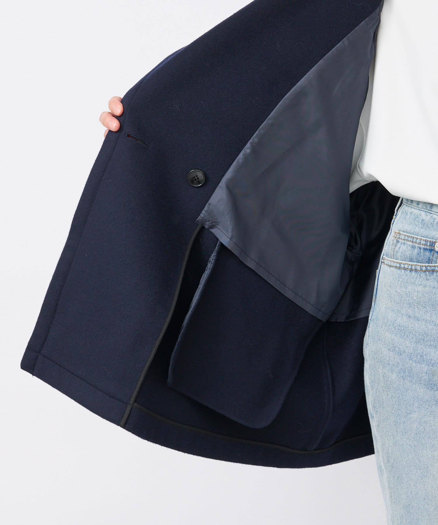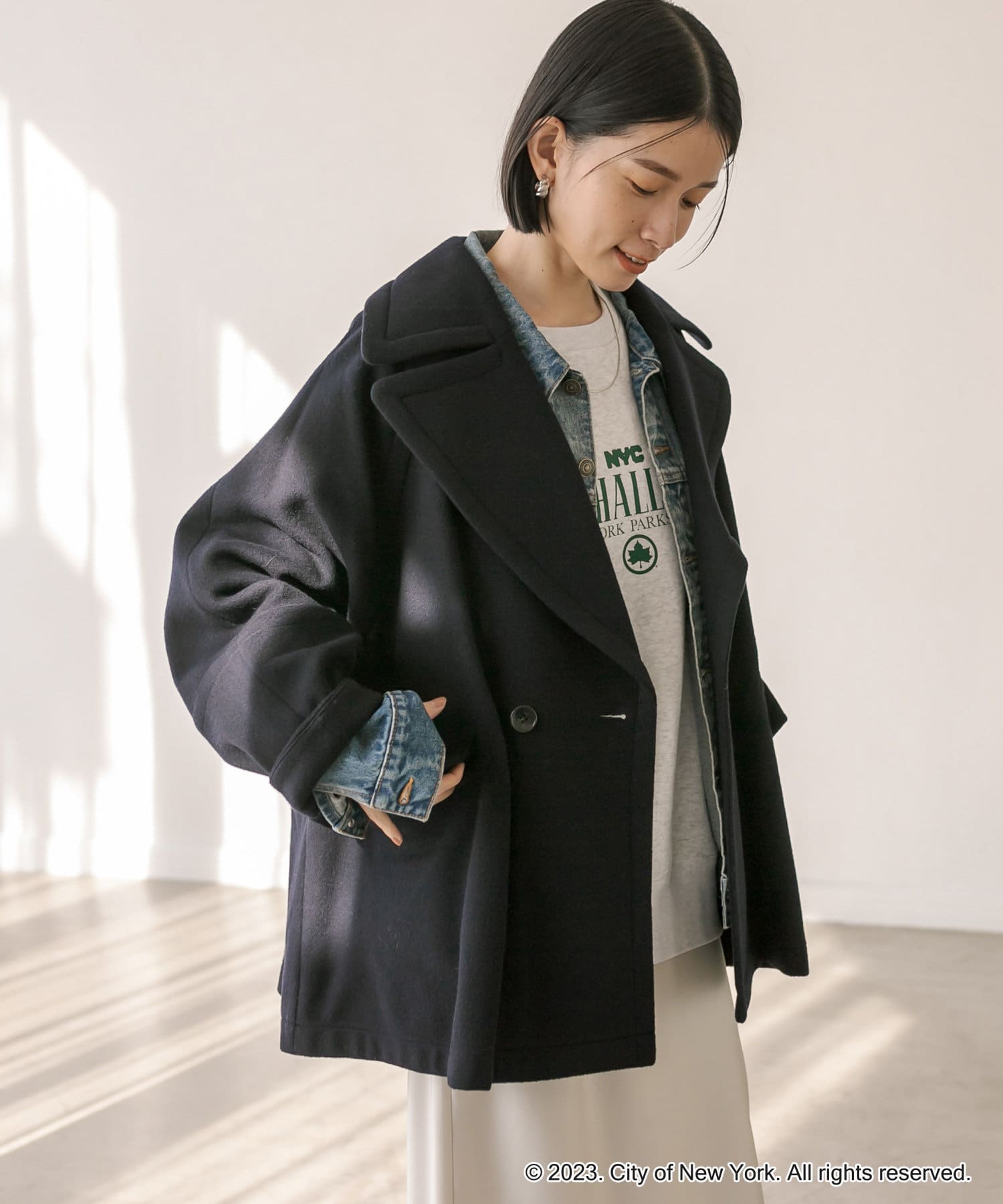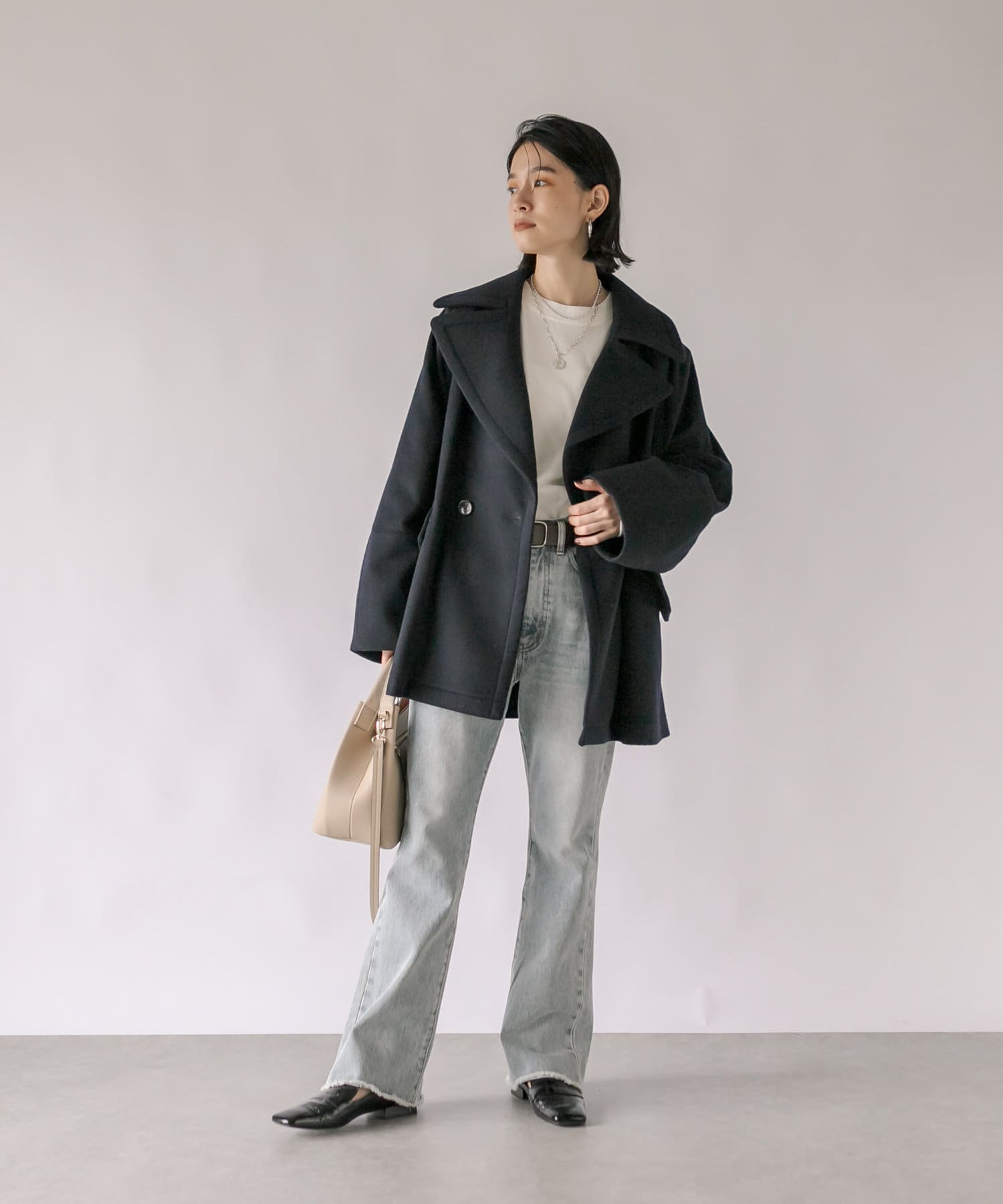 ゆったりとしたシルエットが魅力のハーフコート。