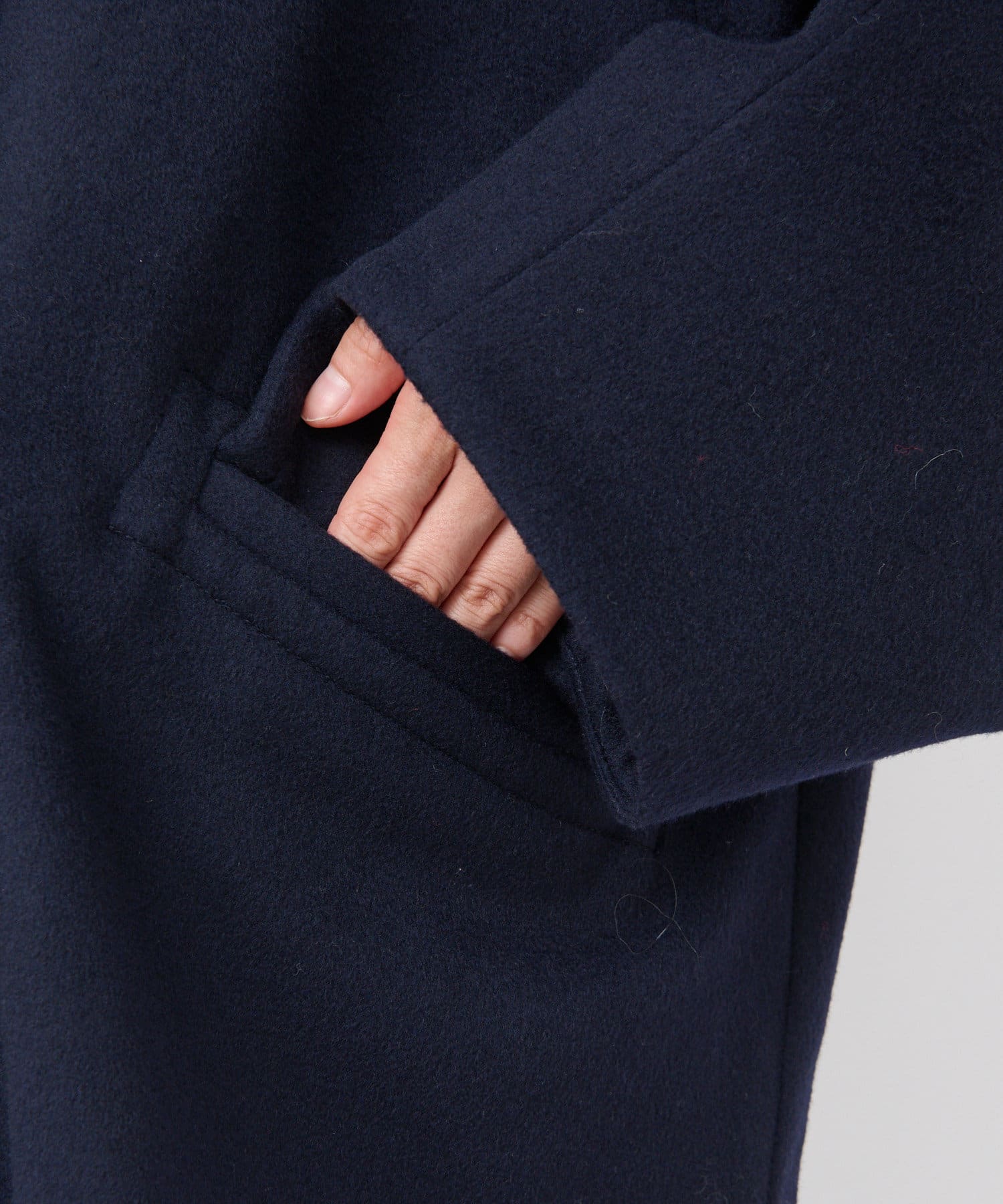 袖も広めの作りでサッと羽織りやすく、厚手のニットやインナーダウンも着やすい一枚。